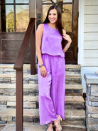 This sleeveless straightleg jumpsuit offers practicality and style with its convenient side pockets and secure zipper and button closure. The lightweight and semi-sheer woven fabric adds a touch of elegance, while the attached shorts provide added coverage and comfort. Perfect for any occasion, this jumpsuit is a versatile addition to any wardrobe.