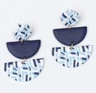 Triple tiered polymer clay earrings, 2.5", surgical steel posts, nickel and lead-free, lightweight