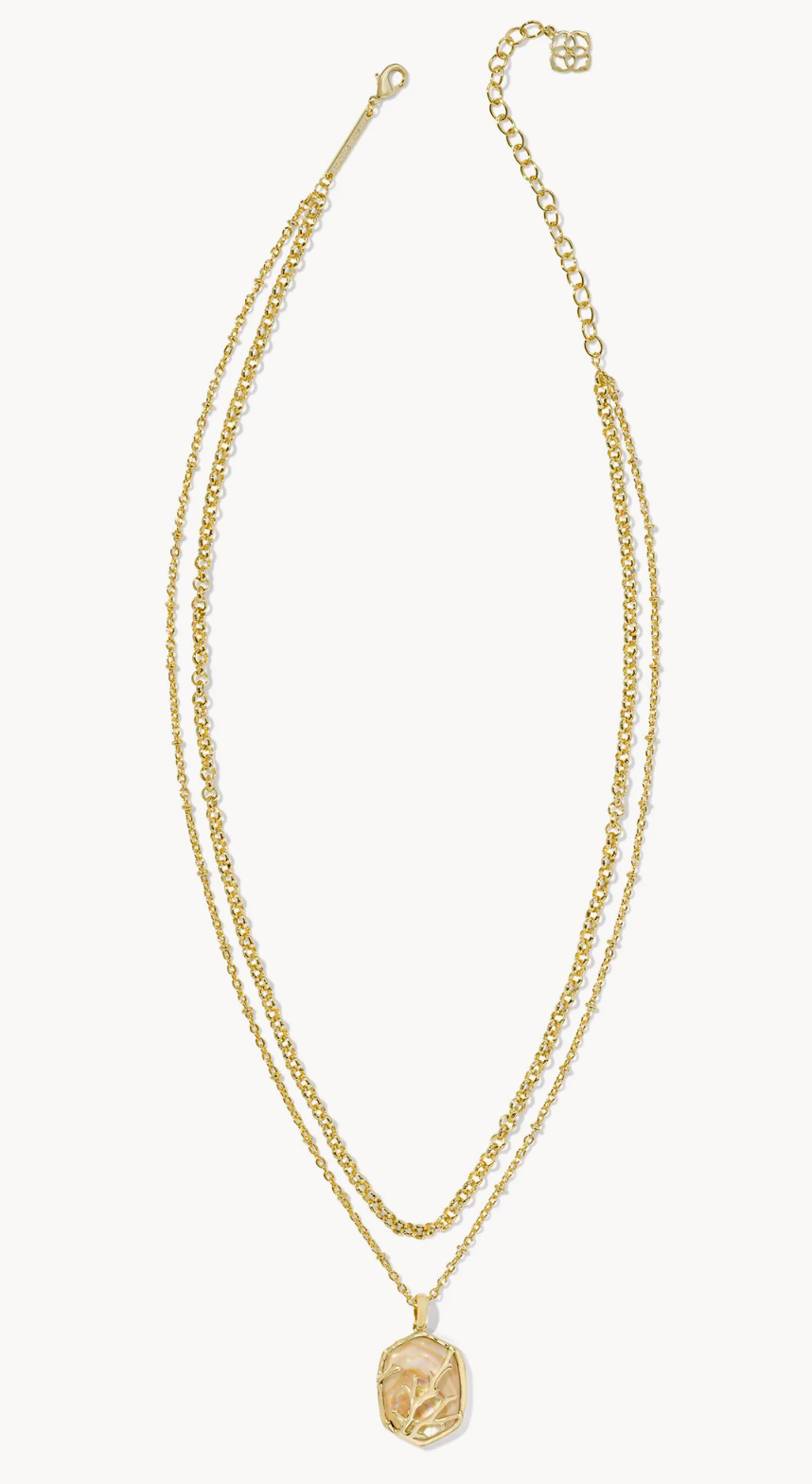 The delicate coral details featured in the Daphne Gold Coral Frame Multi Strand Necklace in Iridescent Abalone will make it an instant favorite. Full of texture (and style, too!), this coastal-inspired multi strand necklace is so ready for vacay styling.