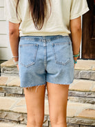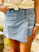Our Button Closure Distressed Detail Skort is designed to be the perfect summer wardrobe staple. Crafted from non-stretch denim for reliability and comfort, the skort features an unfinished hem and a zipper at the inside. The distressed detail gives it a unique style that'll add to any outfit.