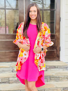 Our #1 selling linen dress is back in stock! These high-low dresses are perfect to wear for any special event. They flow perfectly alone or with a pop of color floral kimono!
