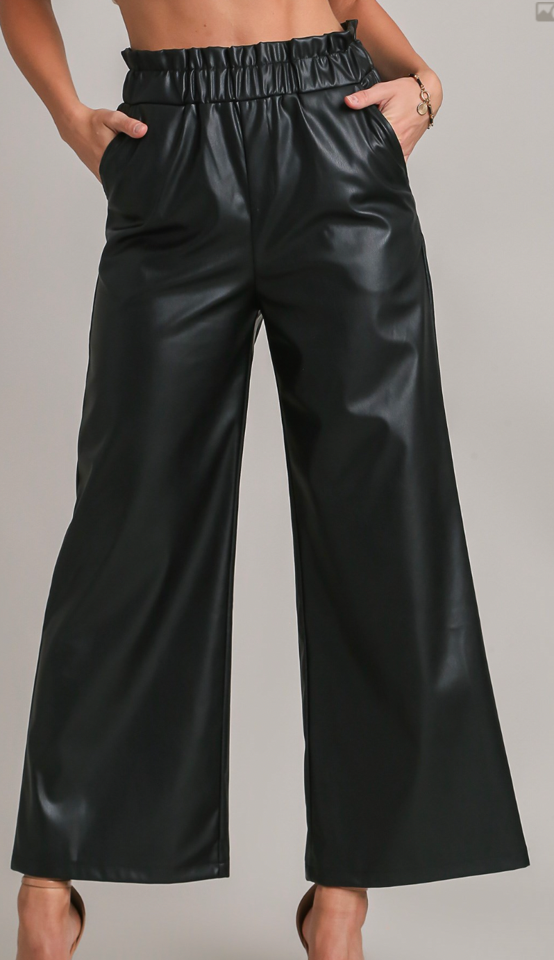 Elastic Faux Leather Pants