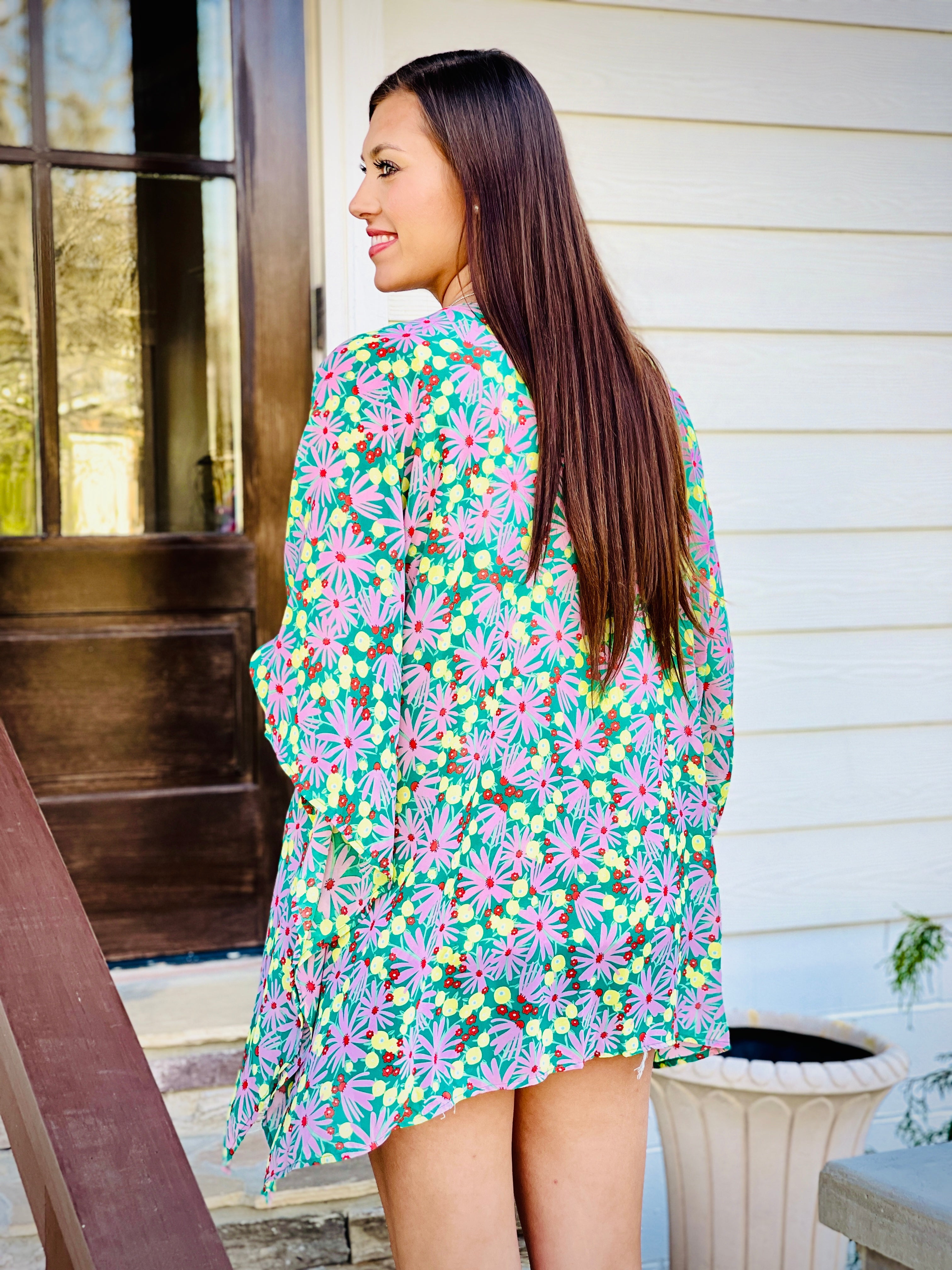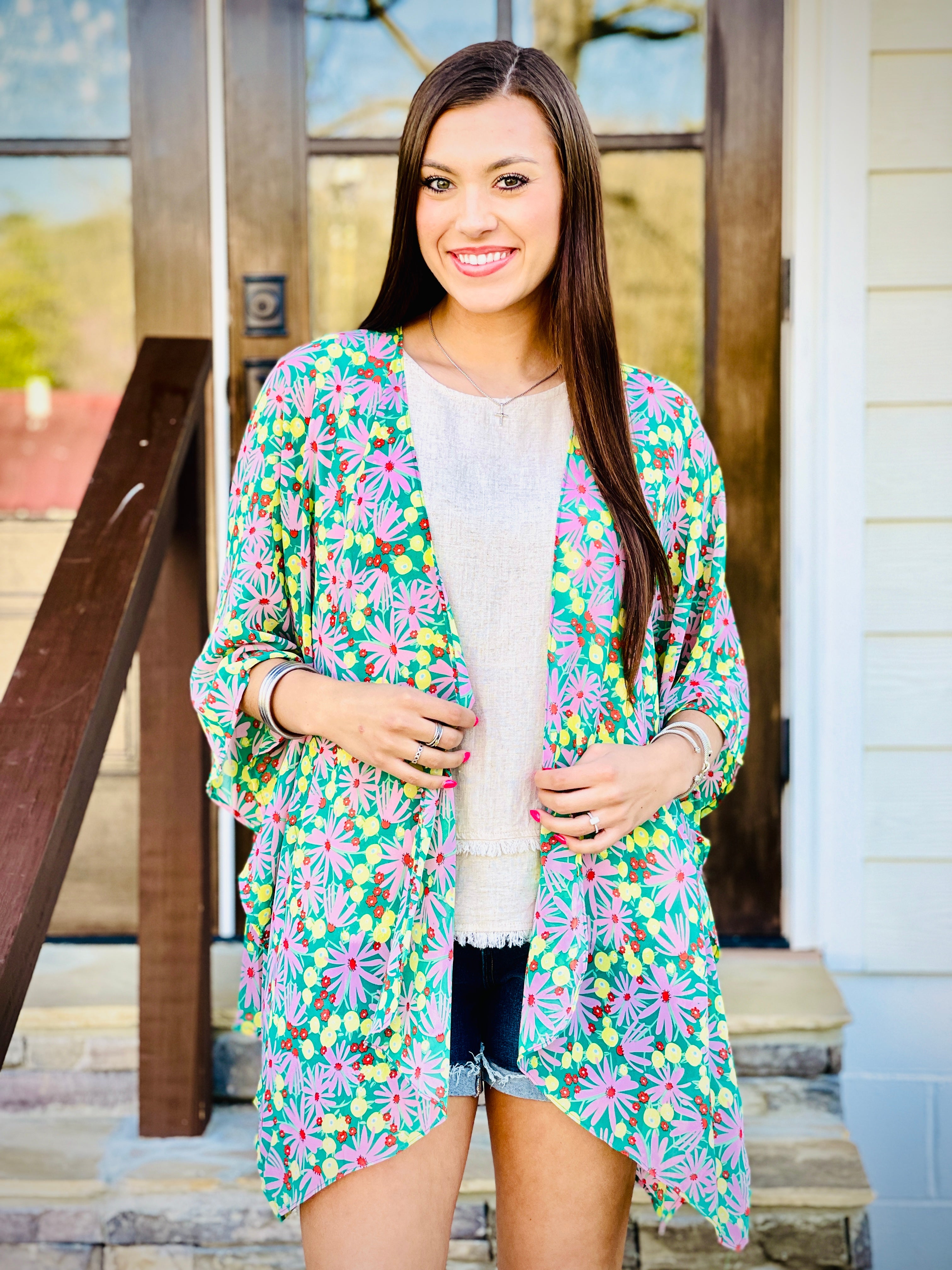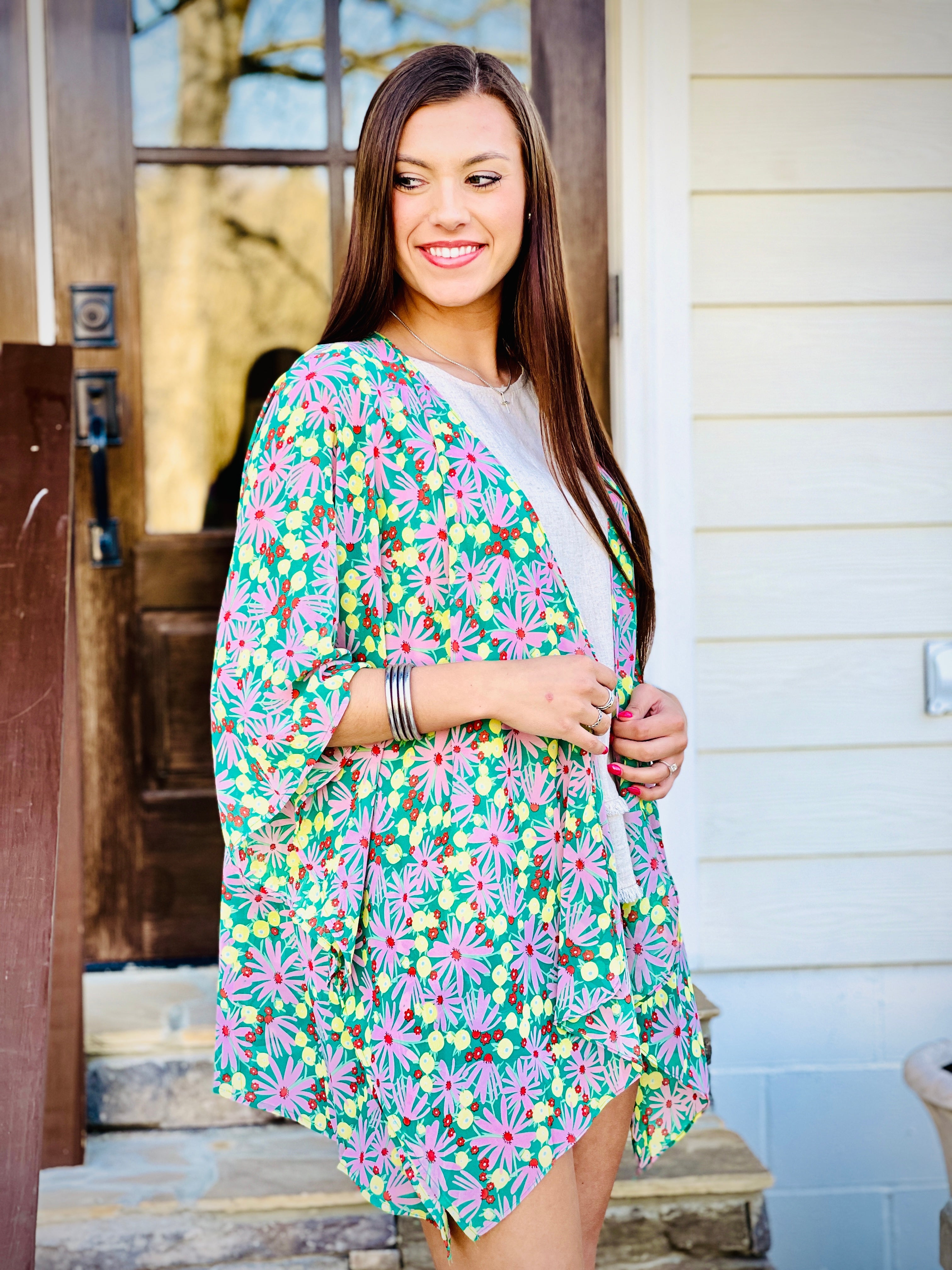 Explore this spring with our Sheer Floral Print Open Front Kimono. Made with lightweight fabric, this kimono drapes beautifully over any outfit, adding a touch of elegance and femininity. The sheer floral print showcases your style while keeping you comfortable and on-trend. Perfect for any occasion, this kimono is a must-have for the fashion-forward individual.