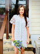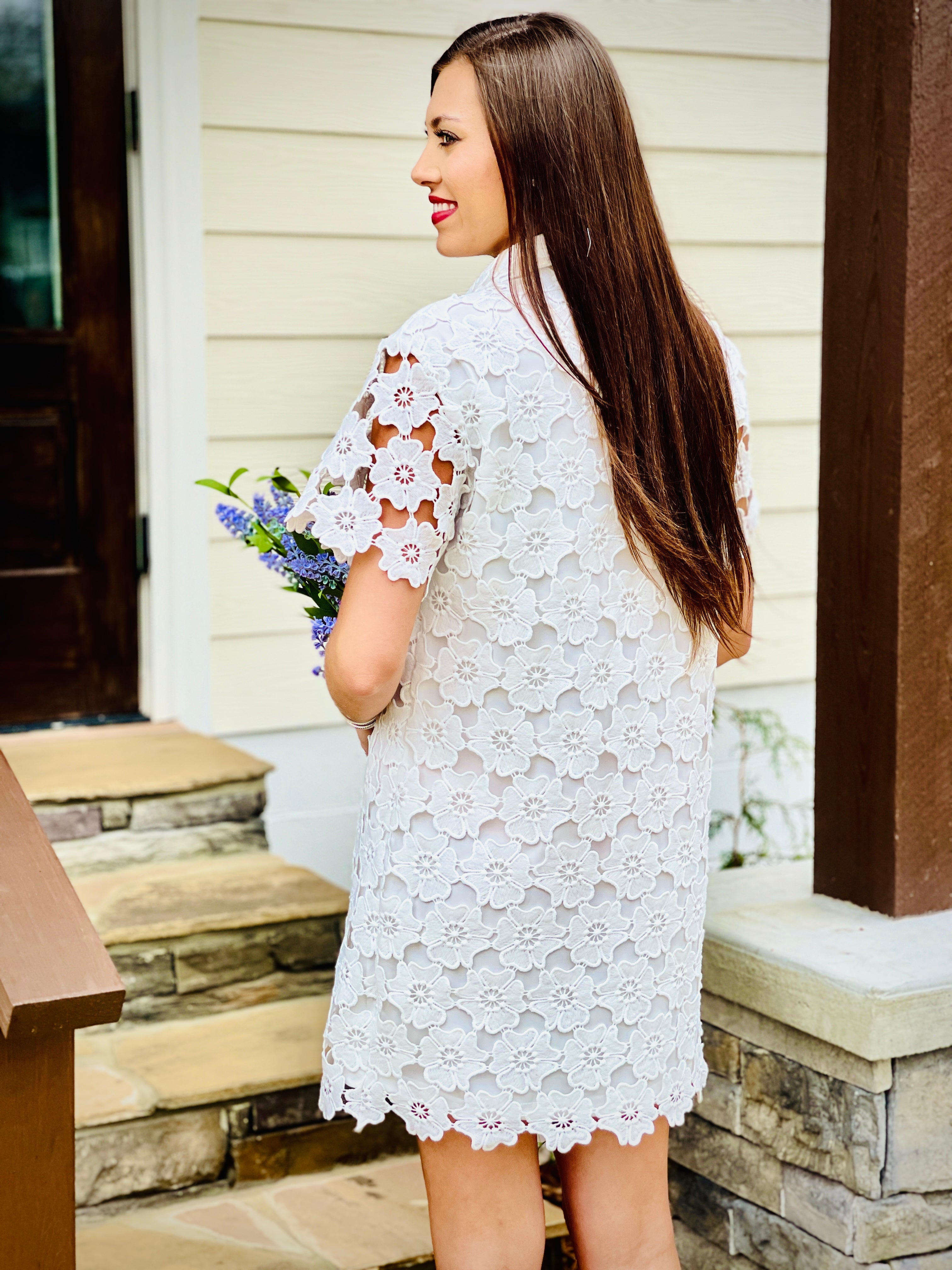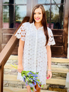This elegant Floral Lace Button Down Collared A-Line Dress is perfect for any occasion. The intricate lace detailing and feminine A-line silhouette will make you stand out in a crowd. The button-down design adds a touch of sophistication. Perfect for any fashion-forward individual looking to make a statement.