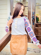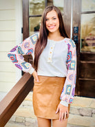 This Henley Pullover Sweatshirt offers a stylish and comfortable way to dress up any outfit. The raglan sleeves, Henley neckline with buttons, and pullover style make for a versatile and fashionable piece. Combine it with jeans and boots for a chic, casual look, or pair it with a skirt and heels for a more dressed up look.