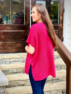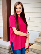 Introducing our new sweater - a comfortable and chic addition to your wardrobe. Made from breathable, lightweight, and stretchy knitted fabric, it's gentle on your skin. The side slit and oversized design add a trendy touch, perfect for pairing with skinny jeans or skirts for a stylish look. Versatile for any occasion.