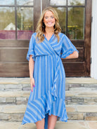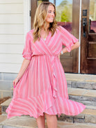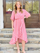 This gorgeous faux wrap ruffle dress is perfect for any of your Spring Special Occasions!