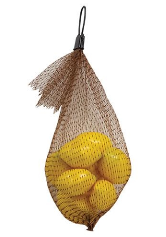 8/Pkg Mini Lemon Fillers, 8/Pkg is a set of eight plastic and foam lemons. Lemons are bright yellow and come in a brown net bag and they are perfect for display in bowls or on trays. Measures 1.75" high by 1.25" in diameter (small); 2" high by 1.5" in diameter (large).