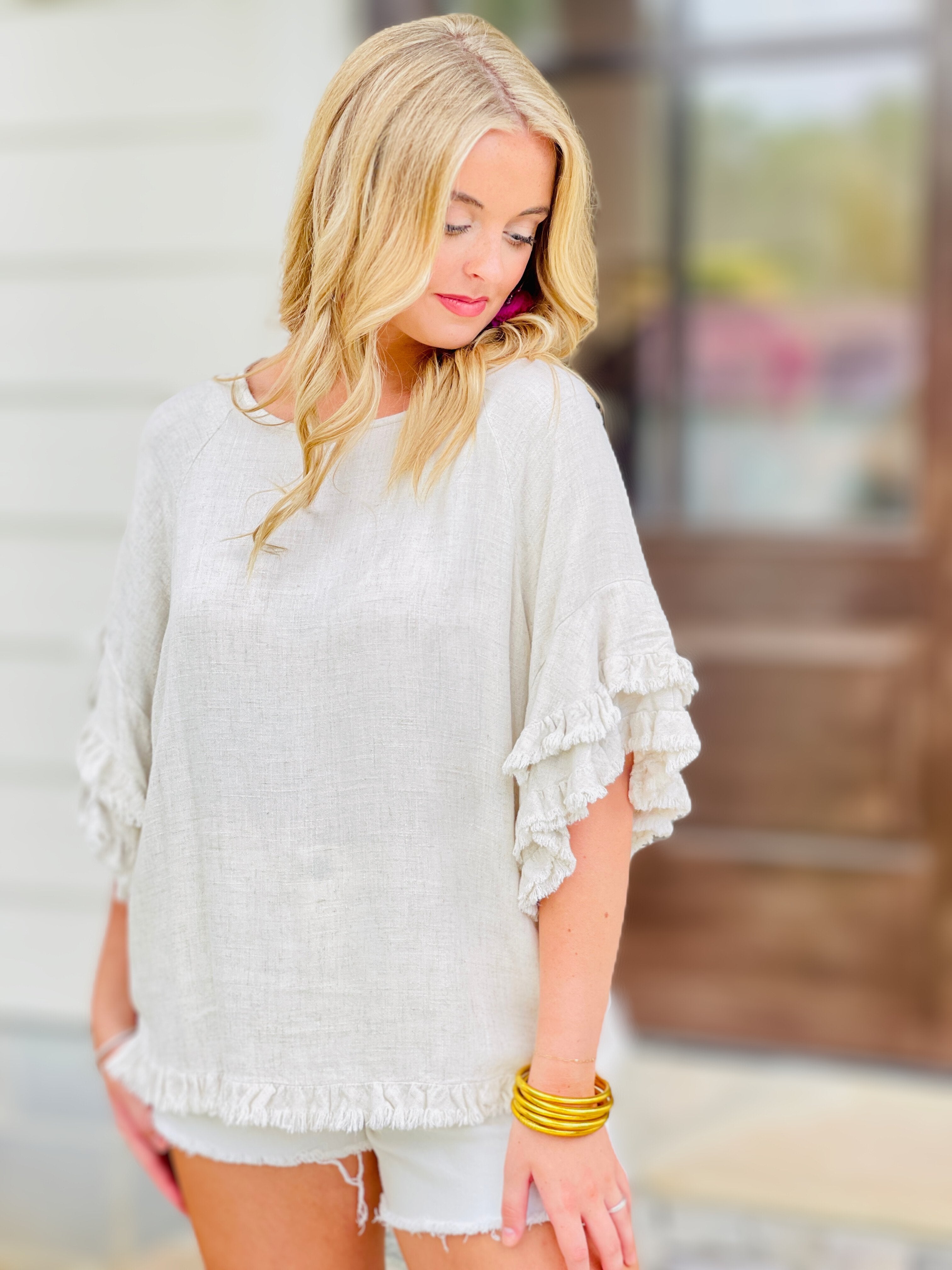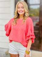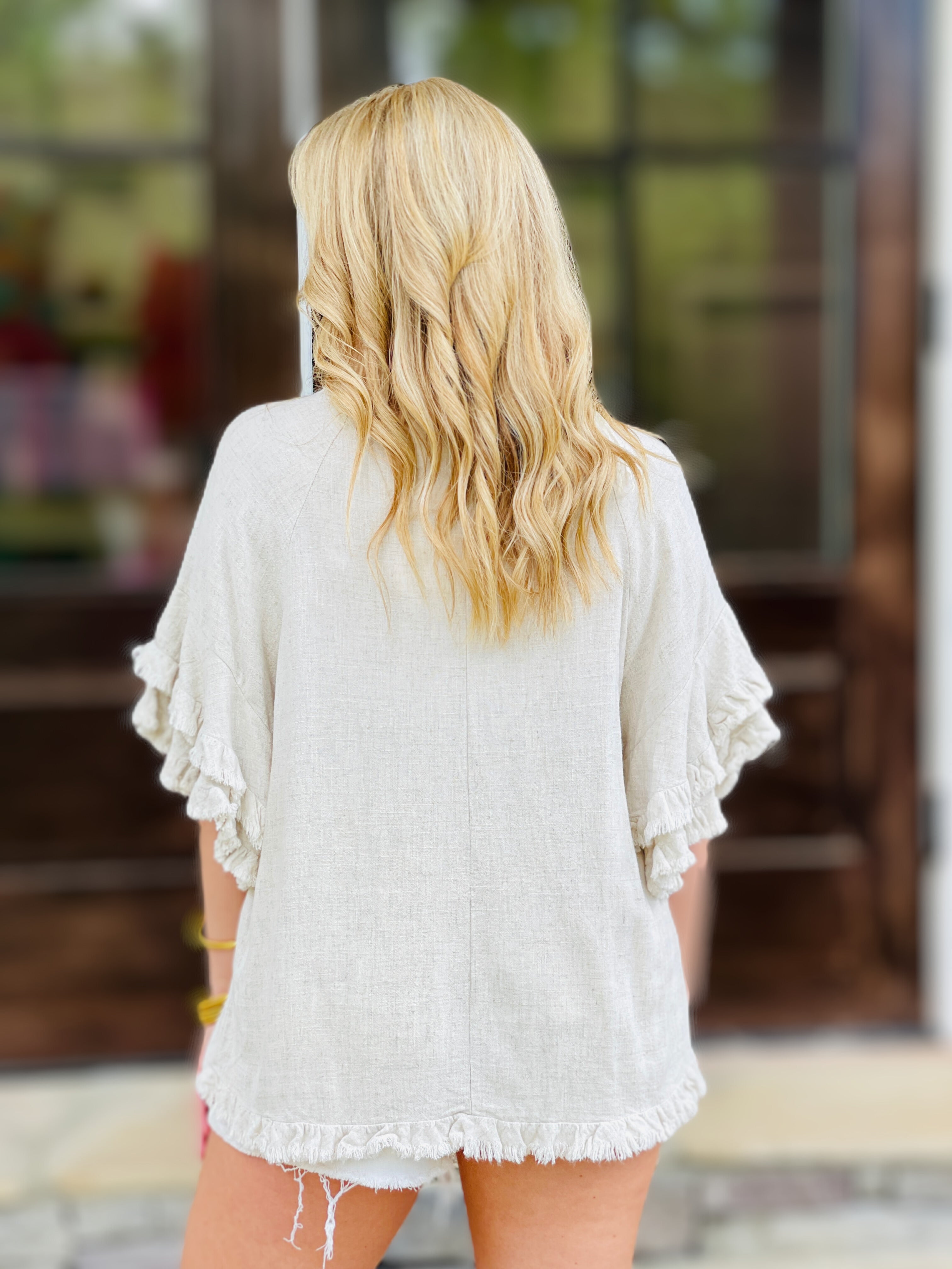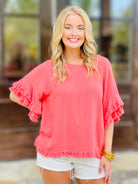 This lightweight blouse is crafted from lightweight linen, making it an ideal choice for the spring and summer seasons. Its vibrant hue pairs well with denim and shorts for a classic, versatile look.