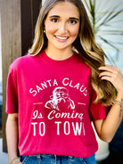 Experience the magic of the holiday season with our Santa Claus is coming to Town tshirt. Show off your Christmas spirit with this festive and stylish shirt. Made with premium materials, this shirt is perfect for spreading joy and cheer all season long. Makes a great gift for family and friends. Shop now and get ready to welcome Santa with open arms.