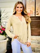 Crafted from soft and durable rayon jersey, this washed henley features a stylish ribbed band neck and sleeves. The back slit is lined with contrast fabric for a unique edge finish. Comfortable and versatile, perfect for any occasion.