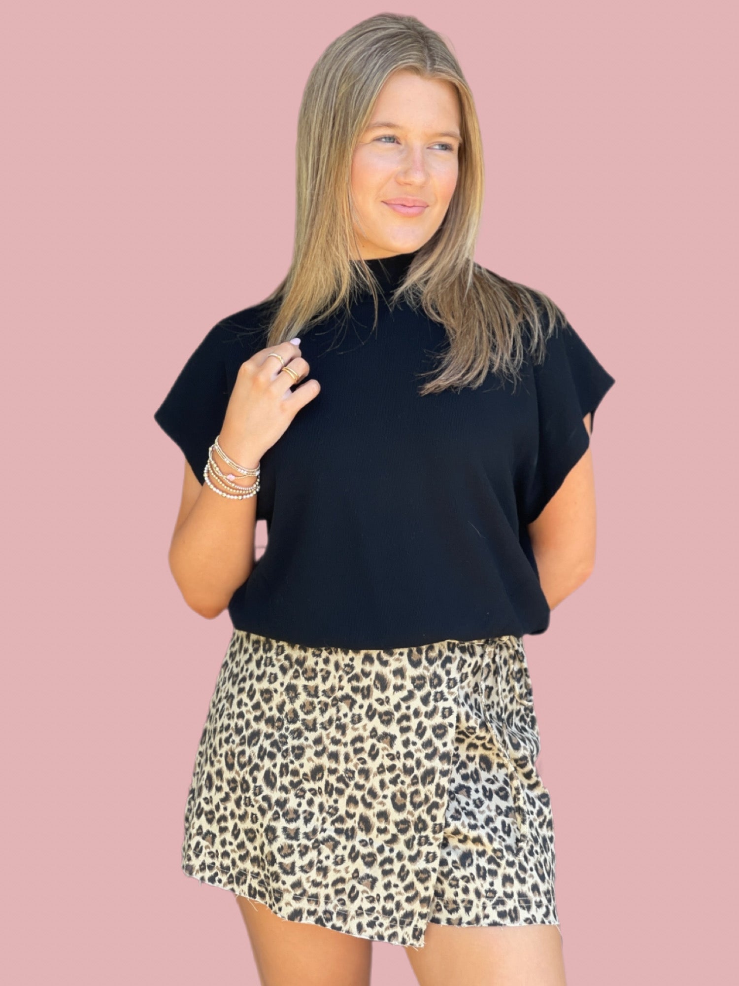 These waist tie washed leopard twill skorts are a versatile and stylish addition to any wardrobe. The frayed edges add a trendy touch while the waist tie provides a flattering fit. Made from high-quality twill, these skorts are comfortable and durable, perfect for any occasion. 50% off while supplies last.