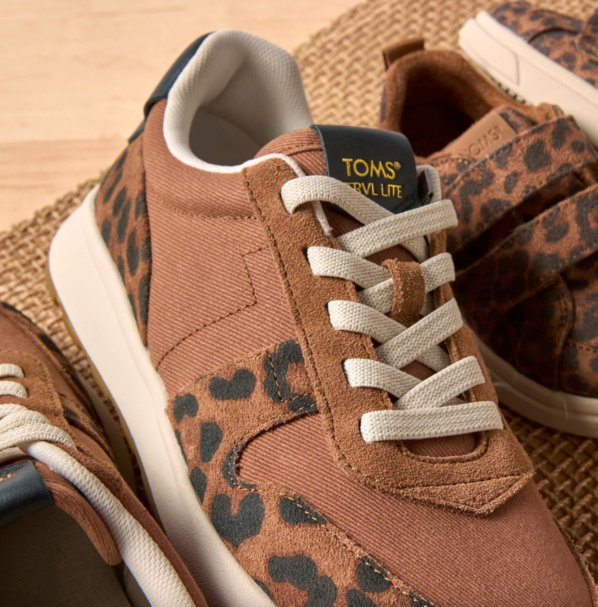 - Twill textile and leather upper. TOMS leather products support responsible manufacturing via the Leather Working Group.