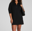 The SPANX Ae Half Zip Dress in Black from the Airessentials collection combines comfort and style with its lounge-inspired design. Crafted to provide a sleek silhouette, this dress features a convenient half-zip detail, enhancing versatility and ease of wear. Its breathable fabric ensures all-day comfort, making it an ideal choice for both relaxed and polished looks. Perfect for those seeking functional elegance in their wardrobe.