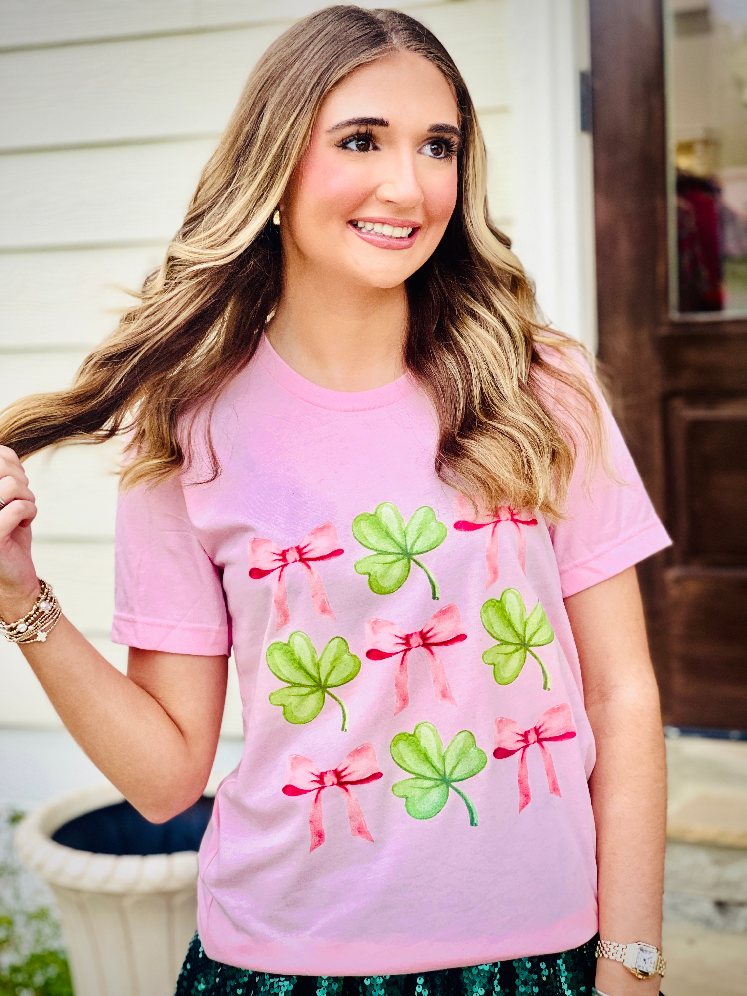 Introducing the Coquette Clover Graphic Tee, a stylish and modern addition to your wardrobe. Made with high-quality materials and featuring a unique clover graphic design, this tee is perfect for adding a pop of color to any outfit. Crafted by industry experts, this tee is a must-have for any fashion-forward individual.