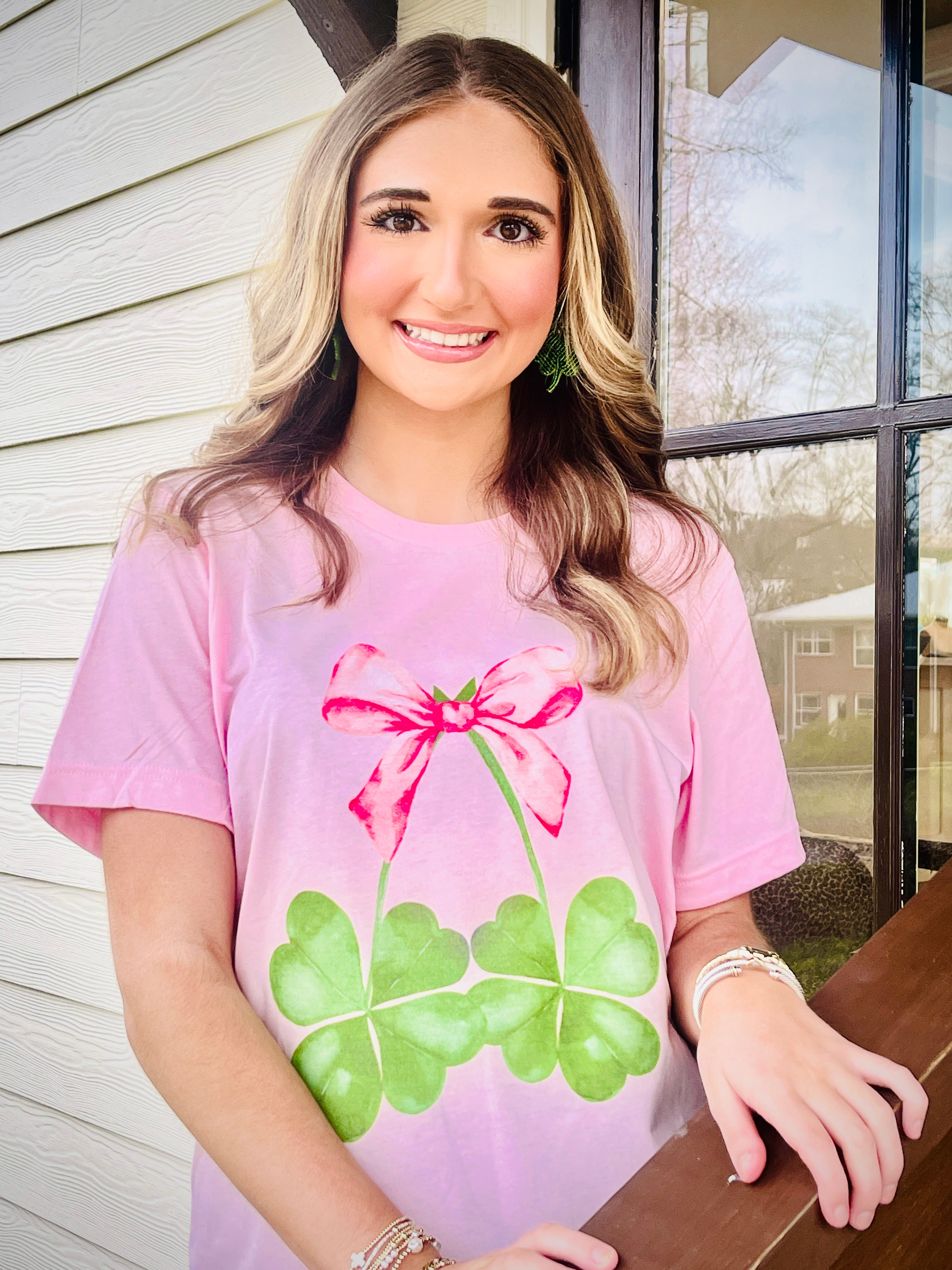 Introducing the Coquette Double Clover Tee, a must-have for any fashion-forward individual. Crafted with precision and style, this tee features a unique double clover design, adding a touch of elegance and sophistication. With its comfortable fit and eye-catching design, you'll feel confident and stylish whenever you wear it. Upgrade your wardrobe today.