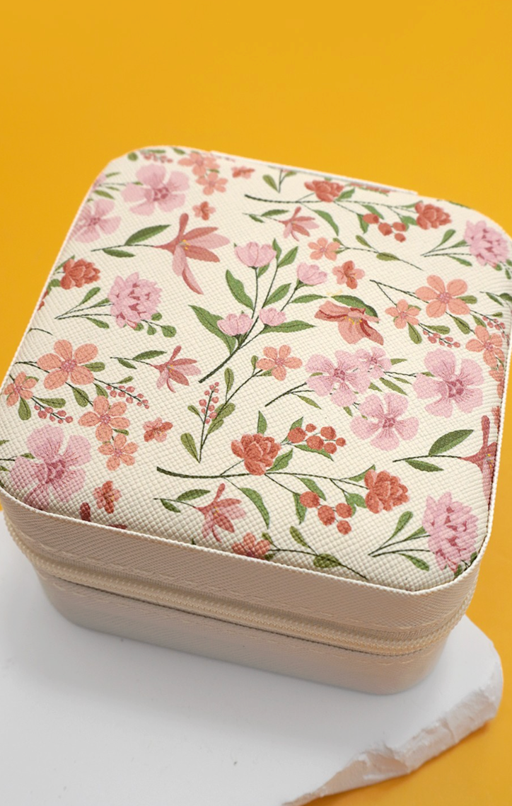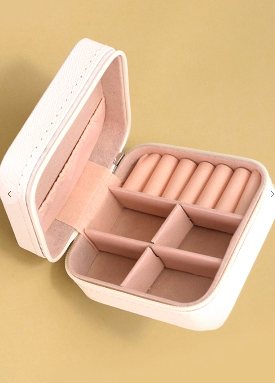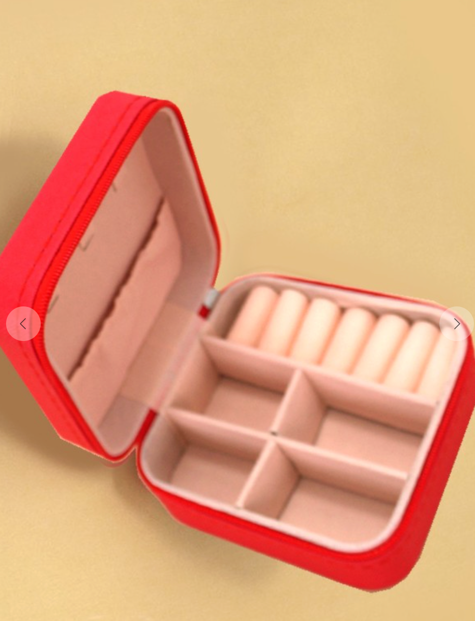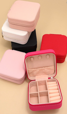 Jewelry Organizer Travel Box Case, the ultimate solution for keeping your jewelry safe, organized, and tangle-free while on the go. It features three necklace hooks, ring slots, and adjustable slots for added organization. Perfect gift for the holidays, including Christmas, Mother's Day, Valentine's Day, Easter. Compact and Portable: Lightweight and easy to carry. Multiple Compartments: Featuring various compartments, including ring rolls, earring holders, and adjustable dividers, this case provides ample space to neatly store rings, earrings, necklaces, bracelets, and other small accessories.