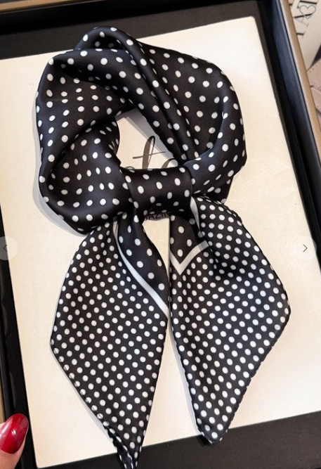 This bandana scarf features a beautiful large polka dot print design. Whether you wear it as a headband, neck scarf, wrist wrap, or tie it to your bag for a stylish accent, this scarf is sure to make a statement.
