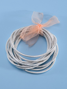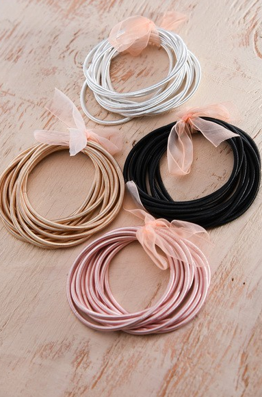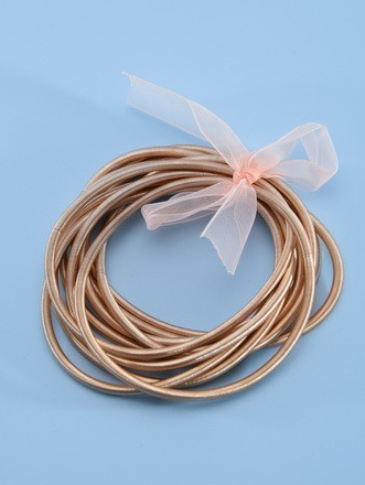 Stainless steel stretchy guitar string bracelets. Each set features 10 stainless steel bracelets.