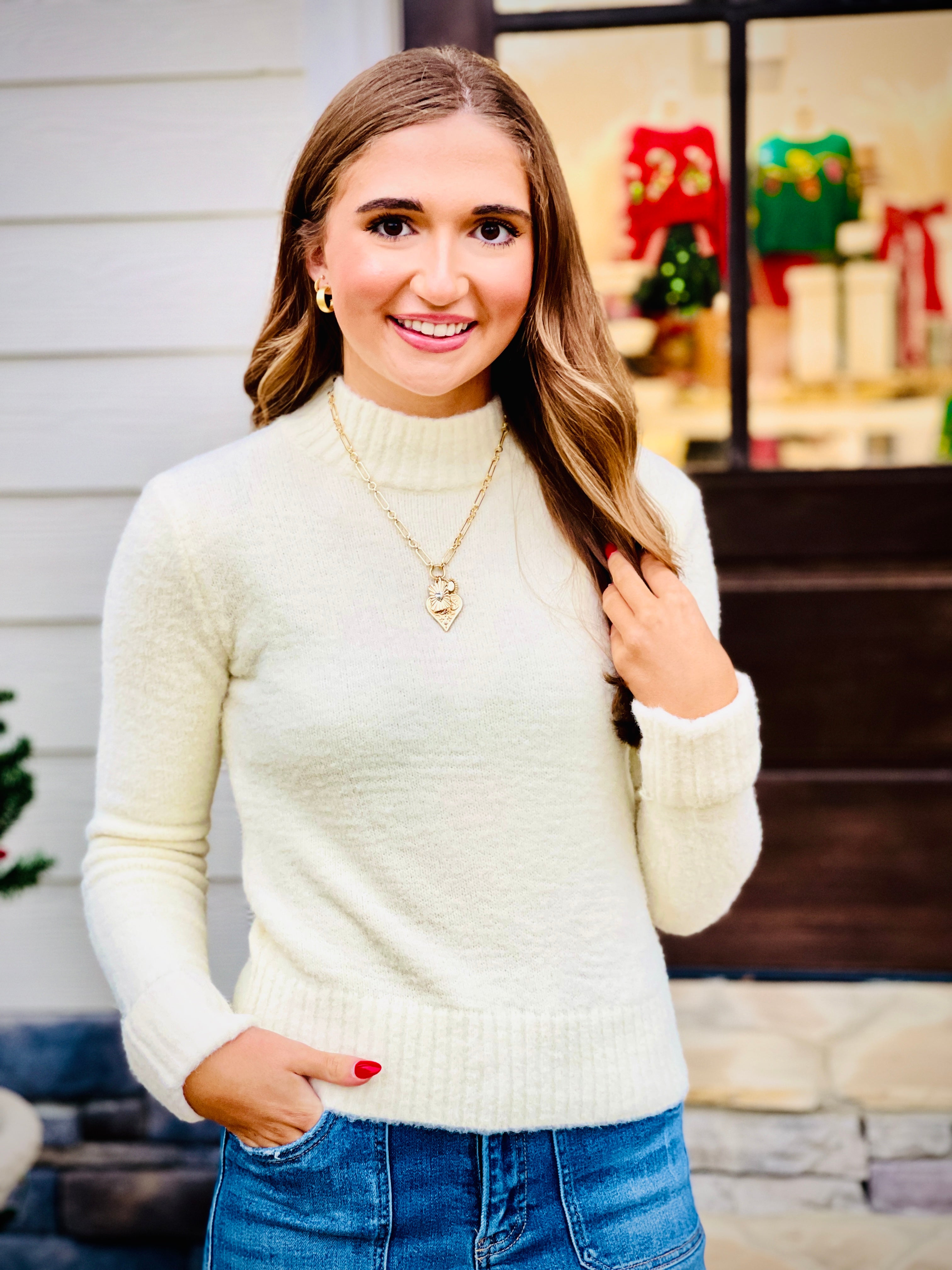 Experience both style and comfort with our Solid Long Sleeve Sweater. Made with a soft sweater knit material, this sweater is perfect for keeping you warm during those cold days. Its mock neck design adds a touch of elegance, making it a versatile piece for both casual and basic wear.
