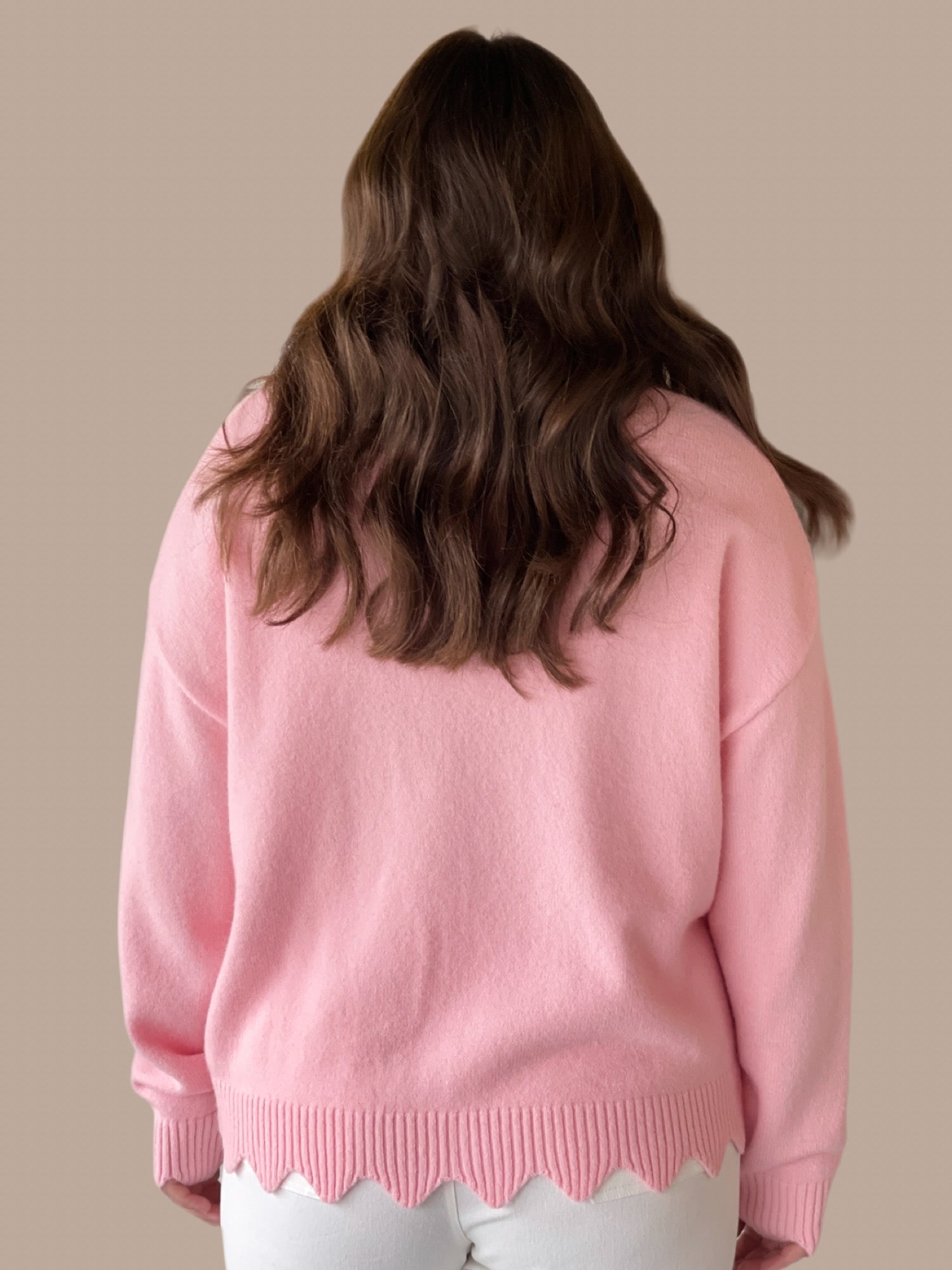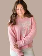 Blushing Bows Scallop Trim Sweater