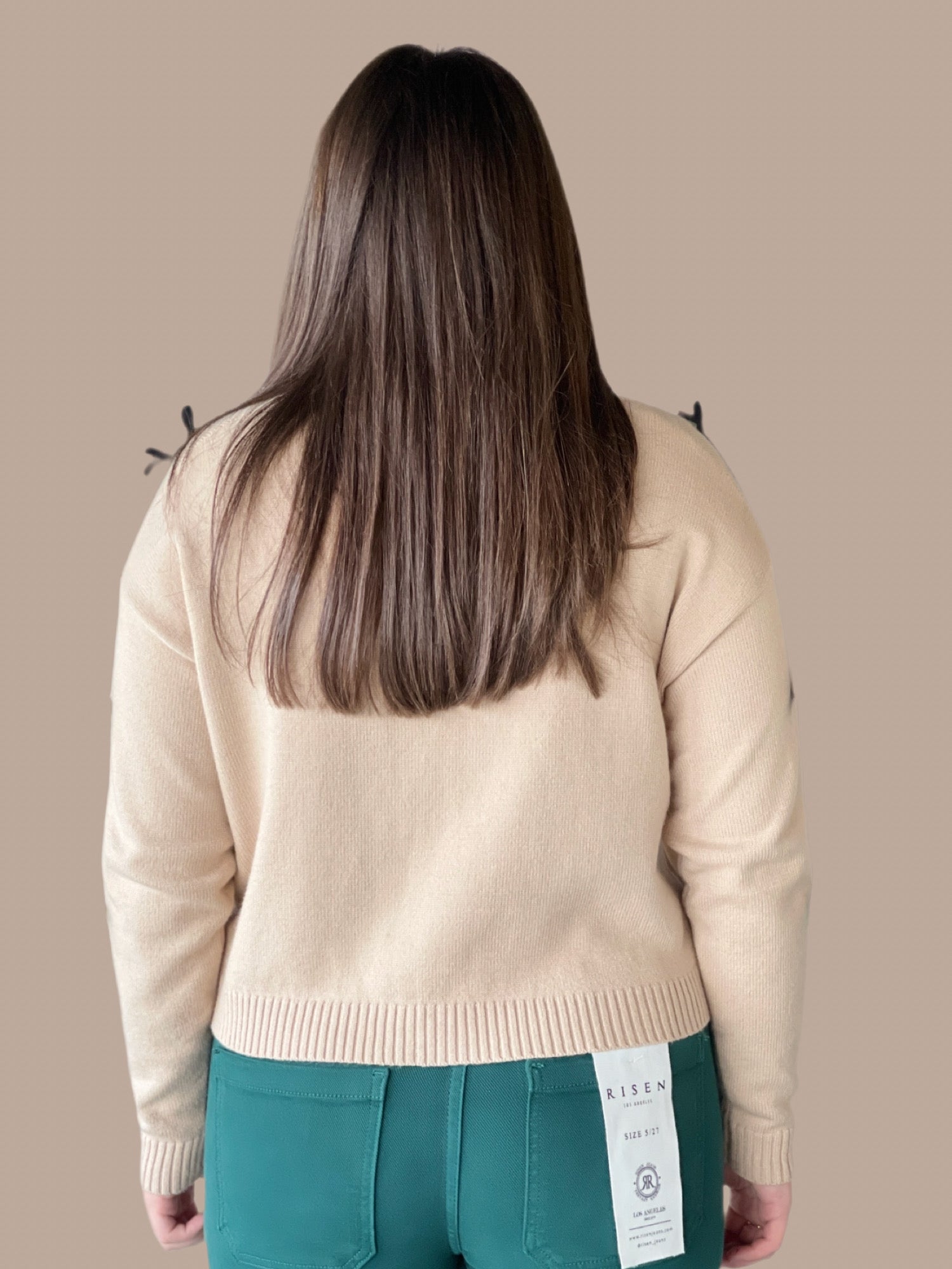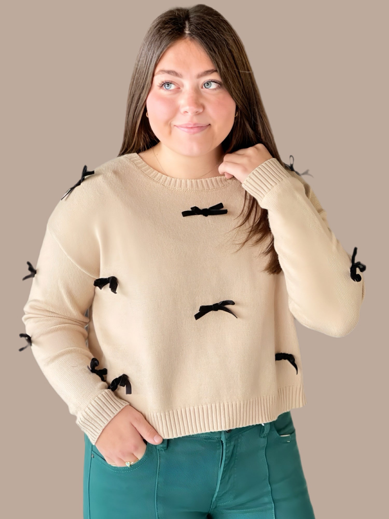 Elevate your wardrobe with this sophisticated ribbon bow applique sweater top. Crafted with meticulous attention to detail, the signature bow accent adds a refined touch that transitions seamlessly from casual to polished occasions. The quality construction ensures durability and lasting wear, while the thoughtful design flatters various body types. Perfect for layering or wearing solo, this piece becomes an essential foundation for versatile styling. An investment in timeless elegance that delivers both comfort and contemporary appeal.