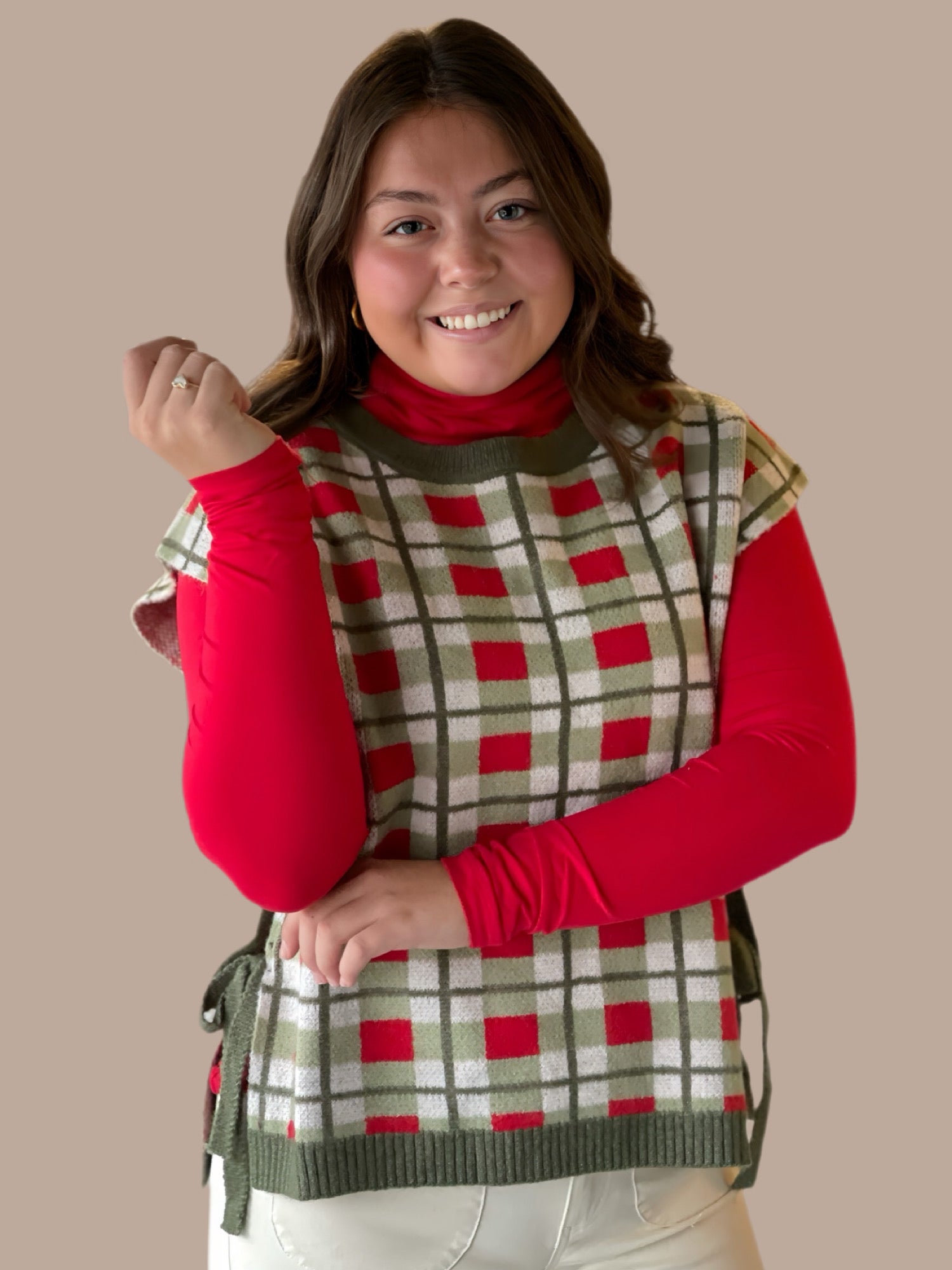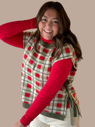 Introducing our Christmas Plaid Sweater Vest, the perfect addition to any holiday outfit. Made with a classic plaid design, this vest adds a touch of festive cheer to any look. Expertly crafted with quality materials, it offers both style and comfort. Elevate your holiday wardrobe with our Christmas Plaid Sweater Vest.