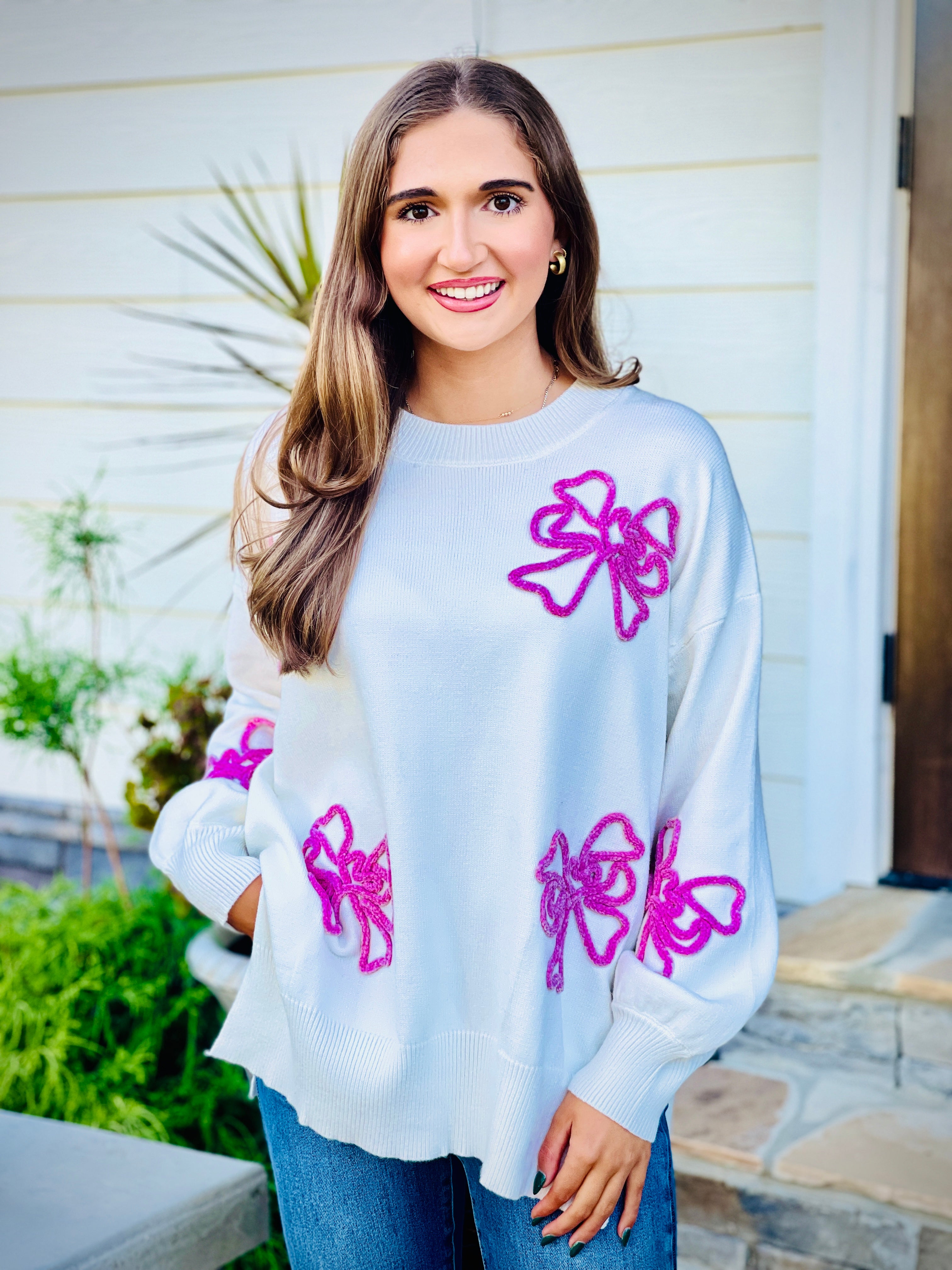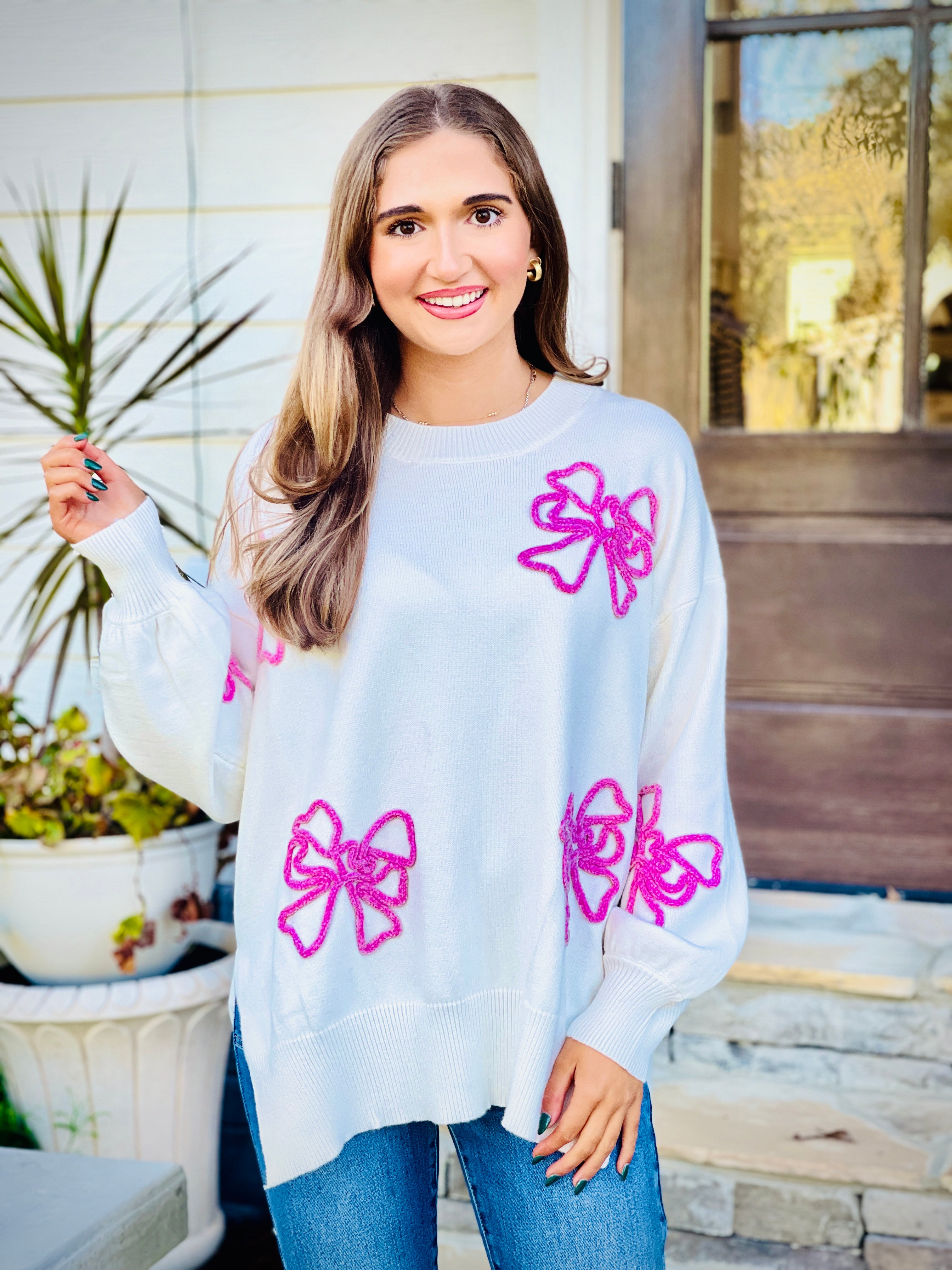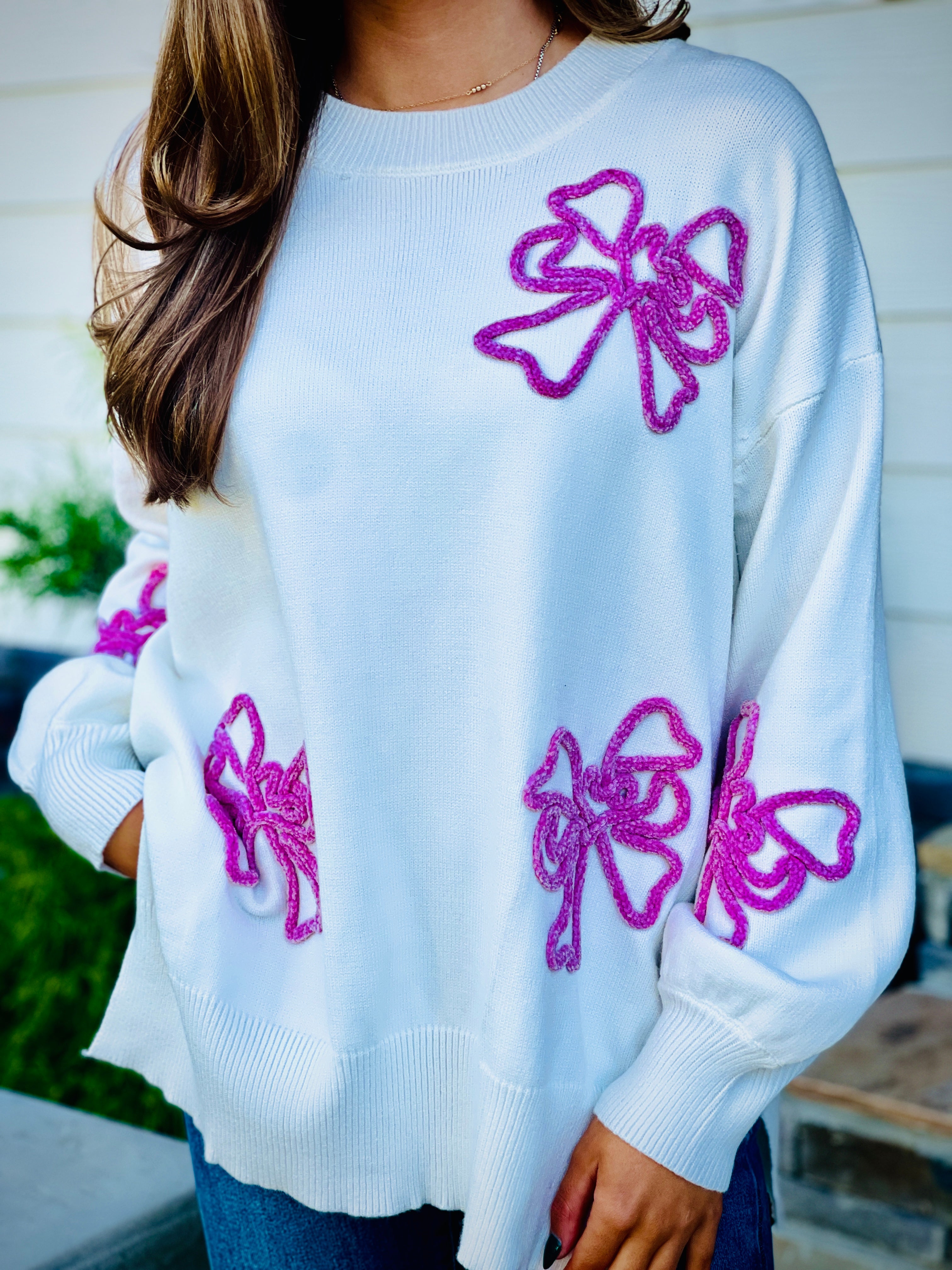 Expertly crafted with delicate embroidery, our Bow Embroidered Long Sleeve Sweater Top exudes elegance and sophistication. Made from high-quality materials, this top offers both style and comfort. Perfect for any occasion, it will elevate your wardrobe and make you stand out with its unique design.