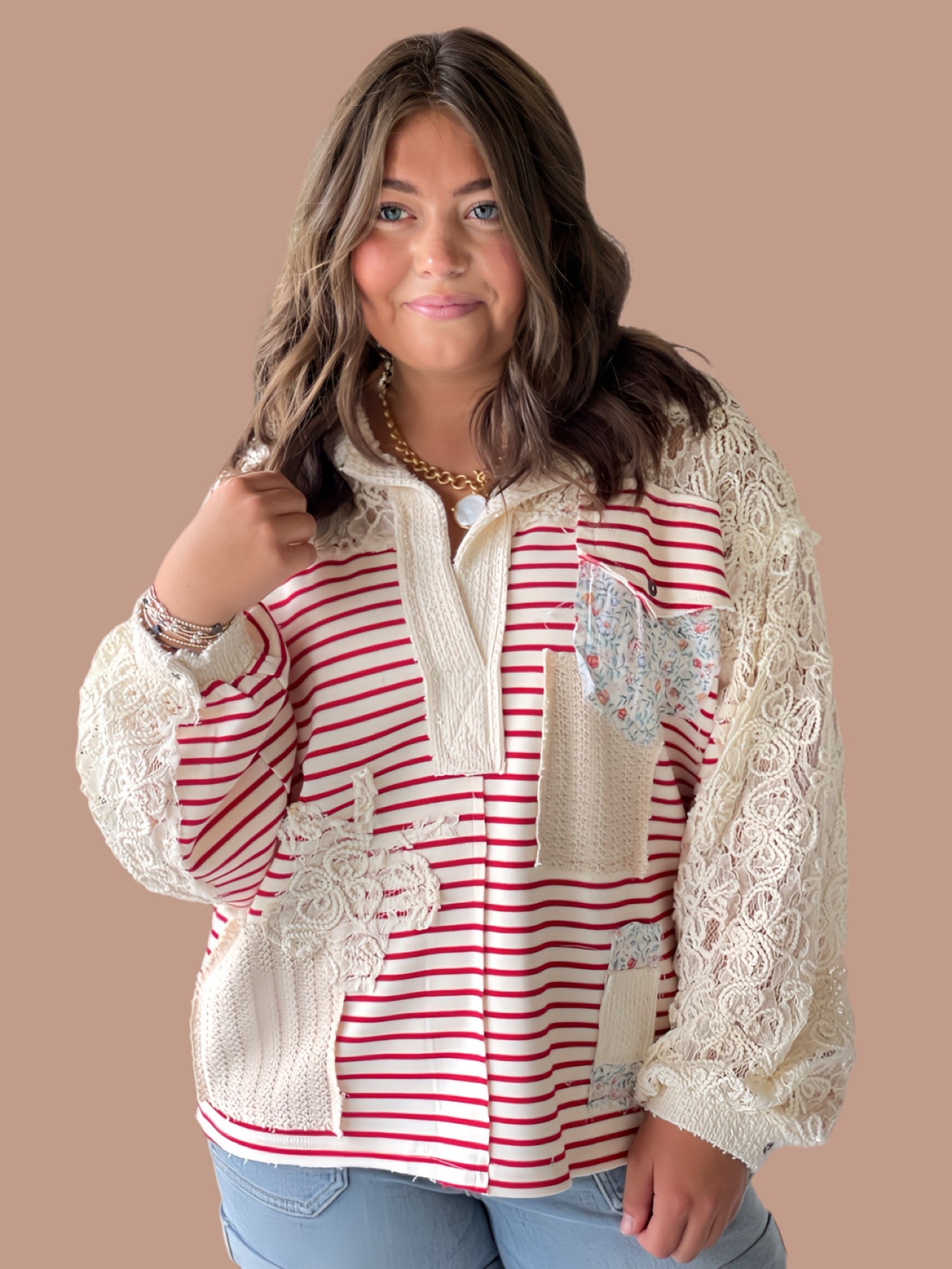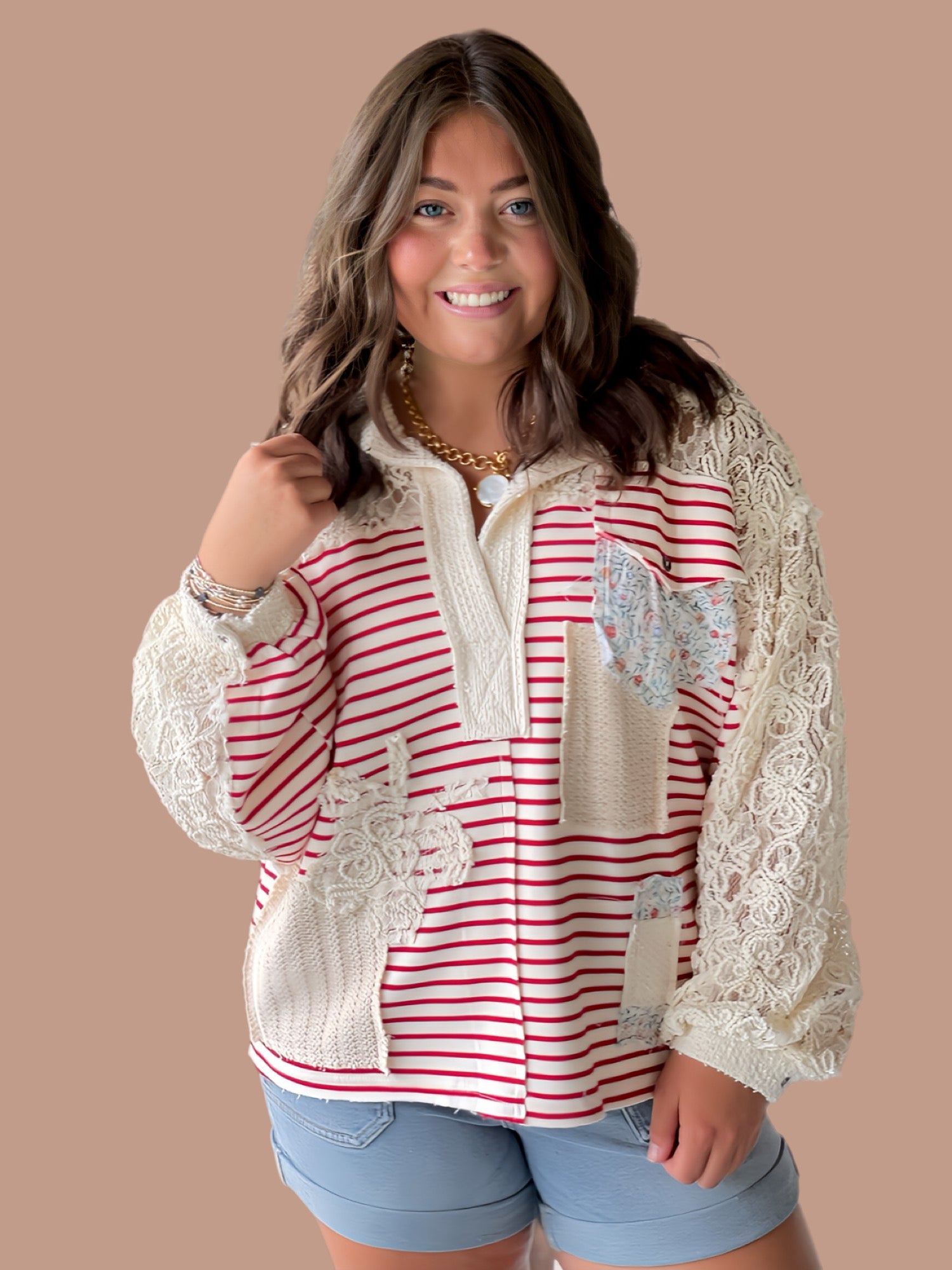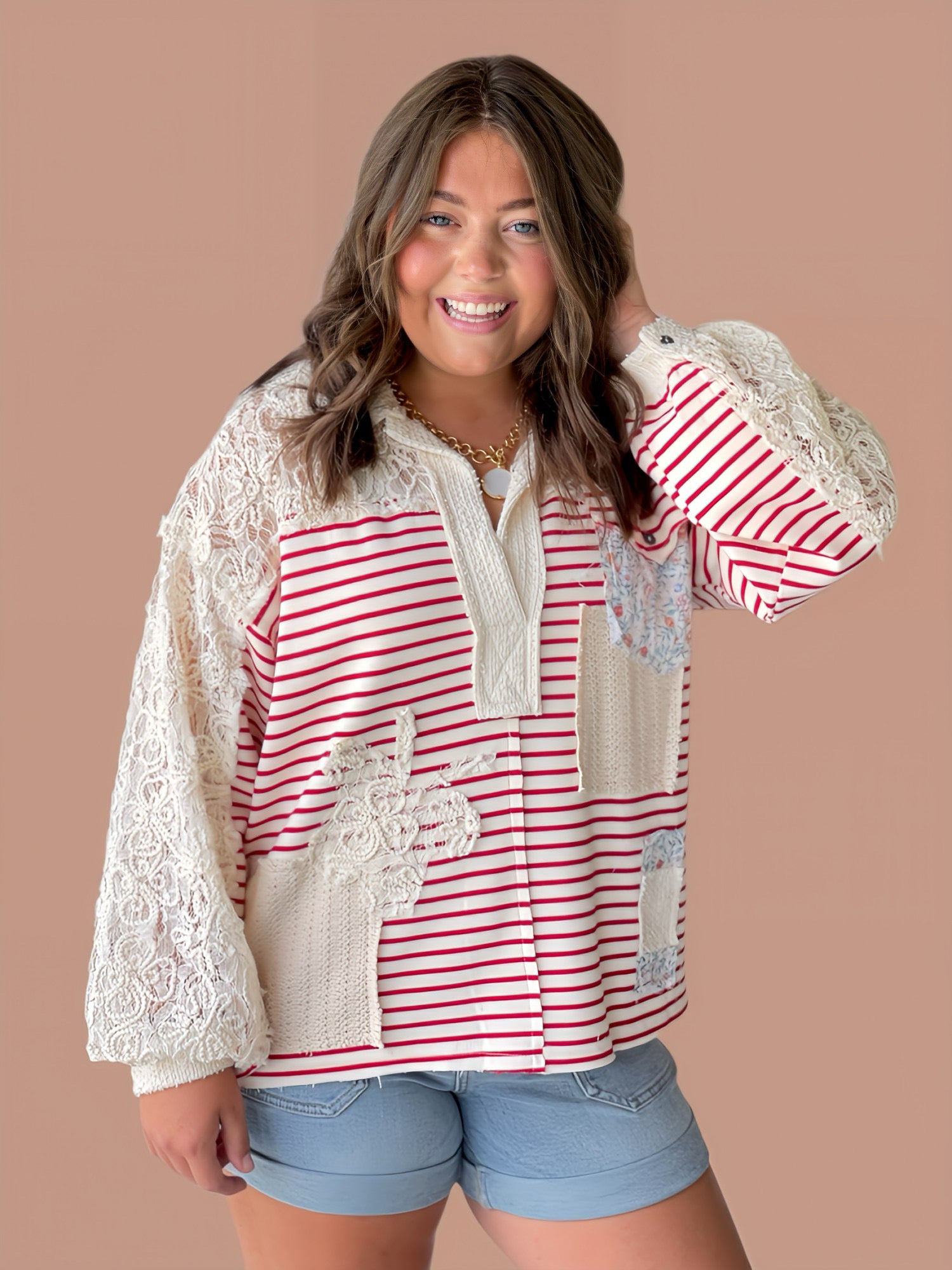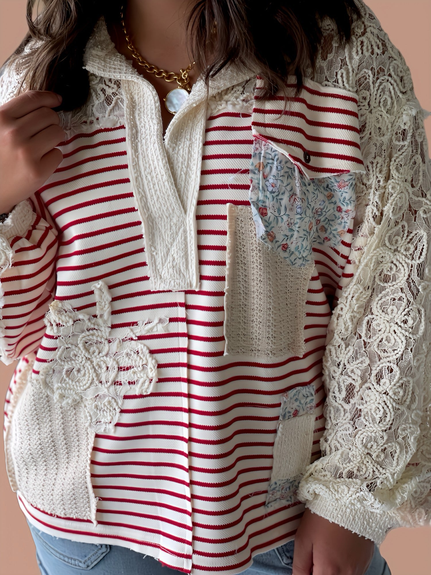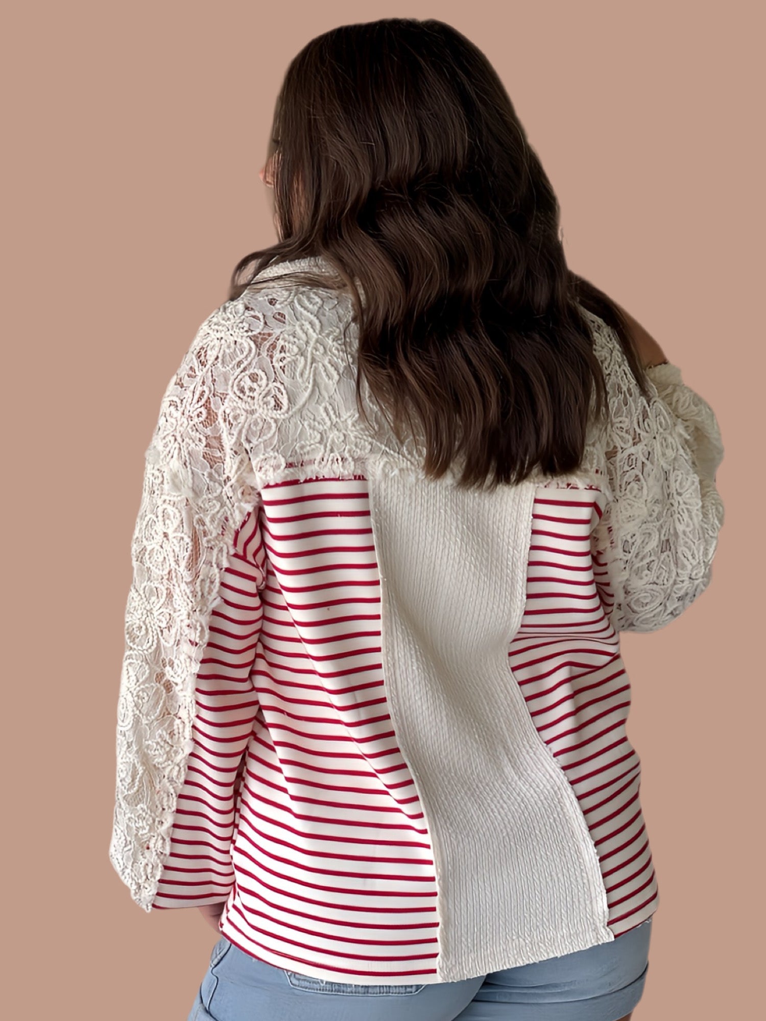 This thermal top features a relaxed fit with a distinctive collar neck and balloon sleeves, combining comfort with style. The pointed striped patch detail adds a refined touch, making it a versatile piece for layering or wearing on its own. Crafted for both warmth and elegance, it suits those seeking a sophisticated yet cozy wardrobe staple.