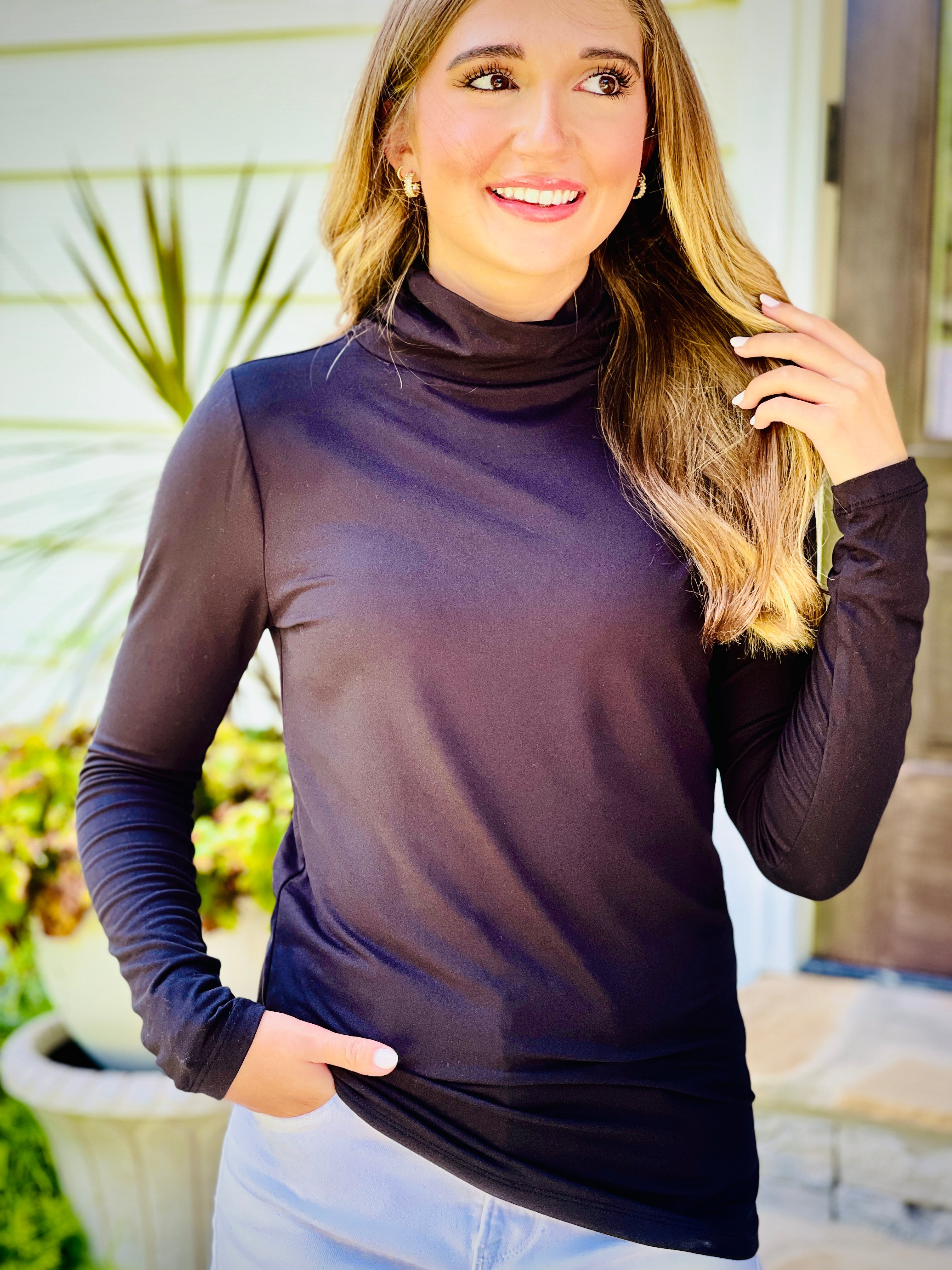 Indulge in ultra-comfy warmth with our Black Brushed Microfiber Mock Neck Top. Made from buttery soft microfiber, it provides perfect stretch and recovery for a flawless fit. Stay cozy and stylish with this versatile top, perfect for any occasion.