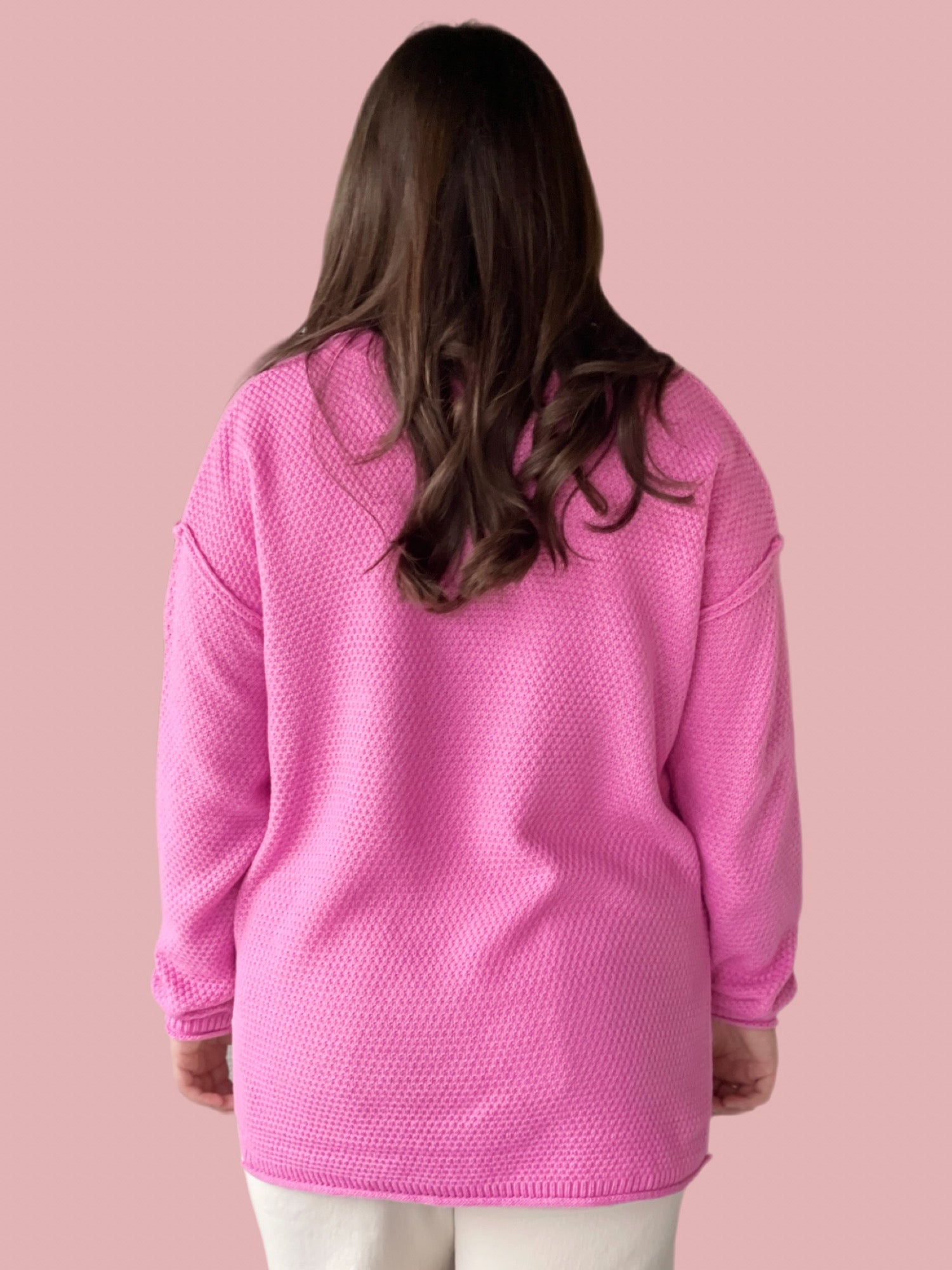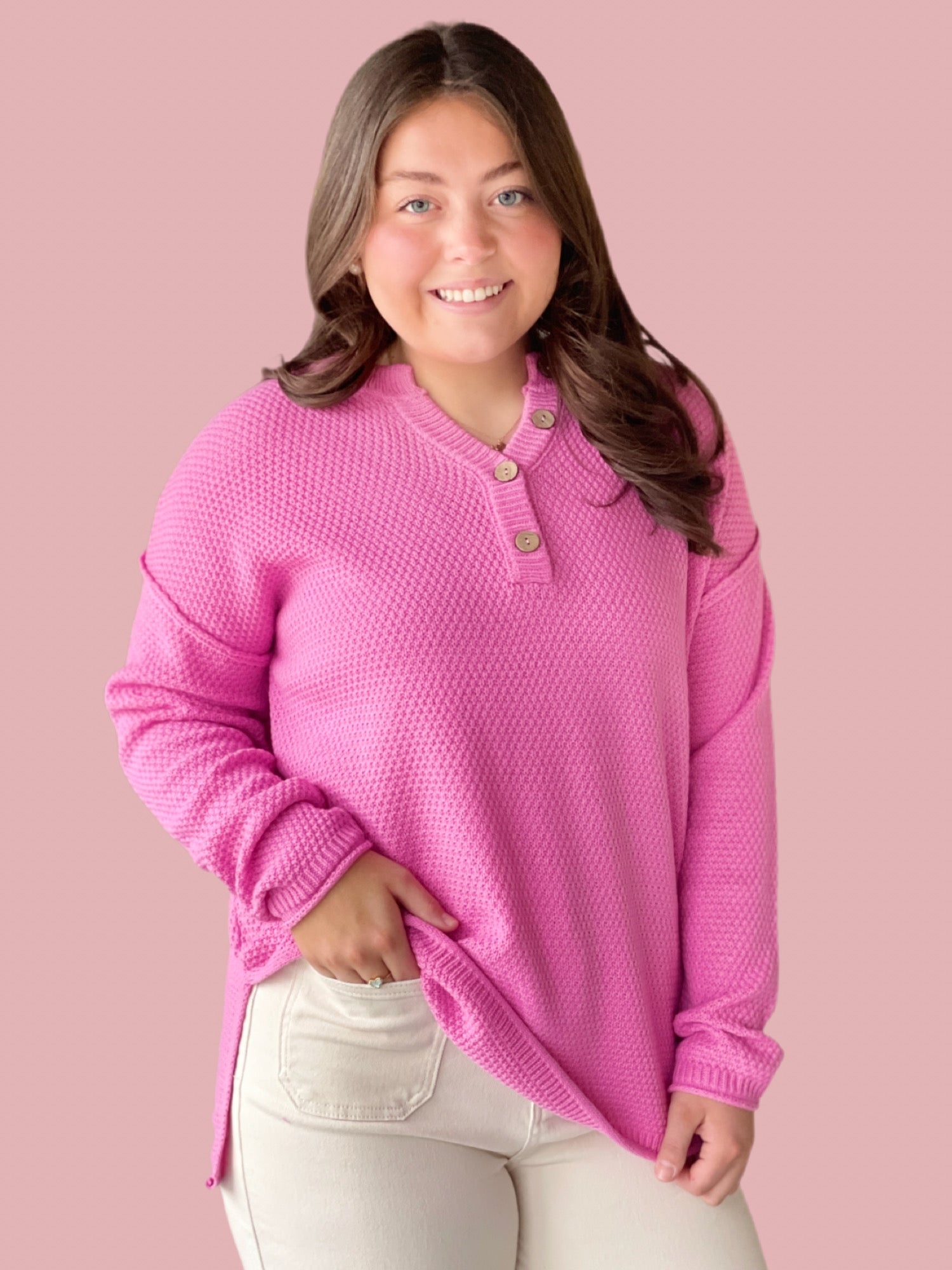 Pretty in Pink SweaterThe Pretty in Pink Sweater is a Henley-style garment made from 100% acrylic, offering both comfort and durability. It fits true to size, ensuring a reliable fit across various body types. This sweater is suitable for both casual and layered wear, providing versatility for seasonal wardrobes.