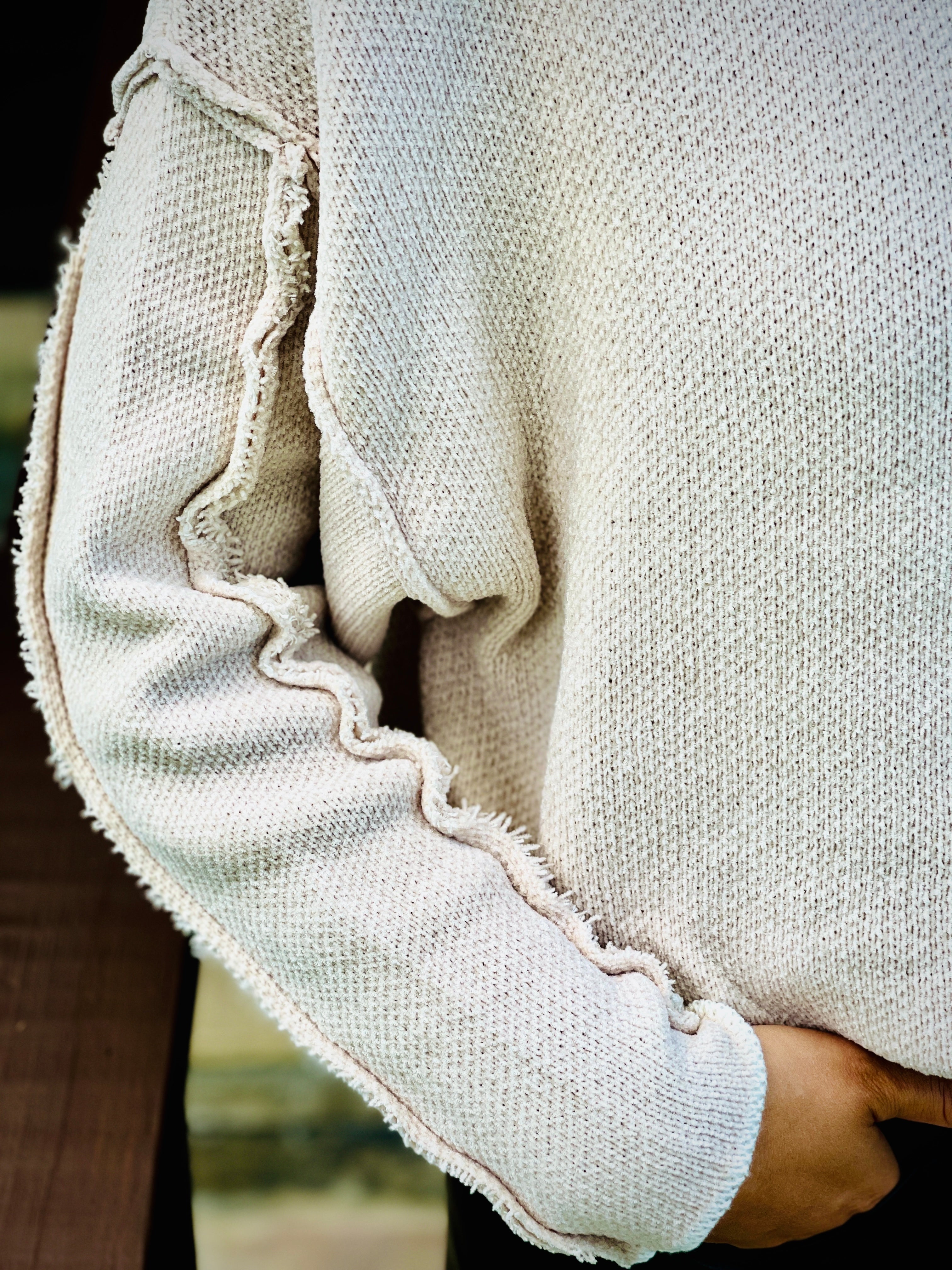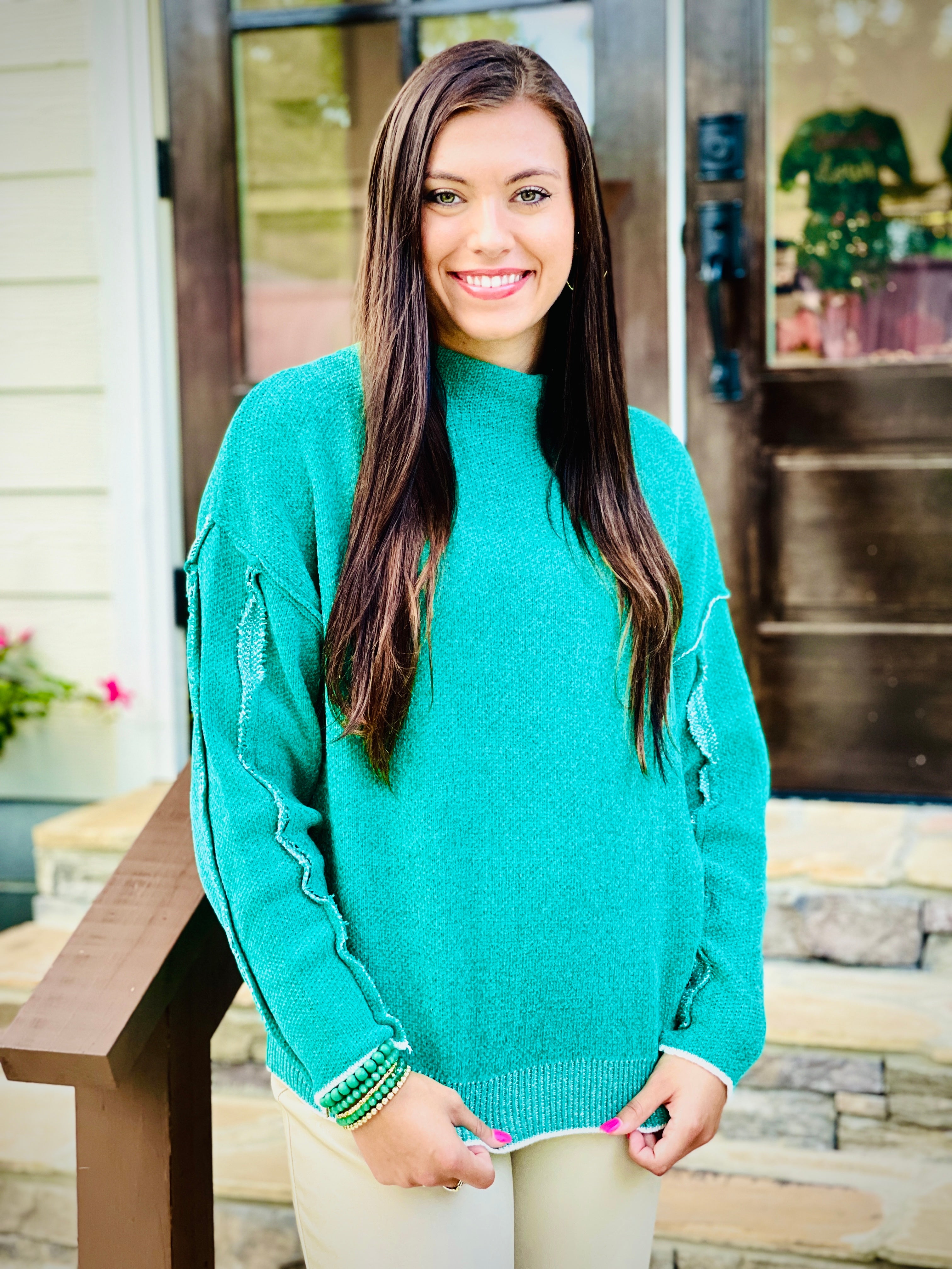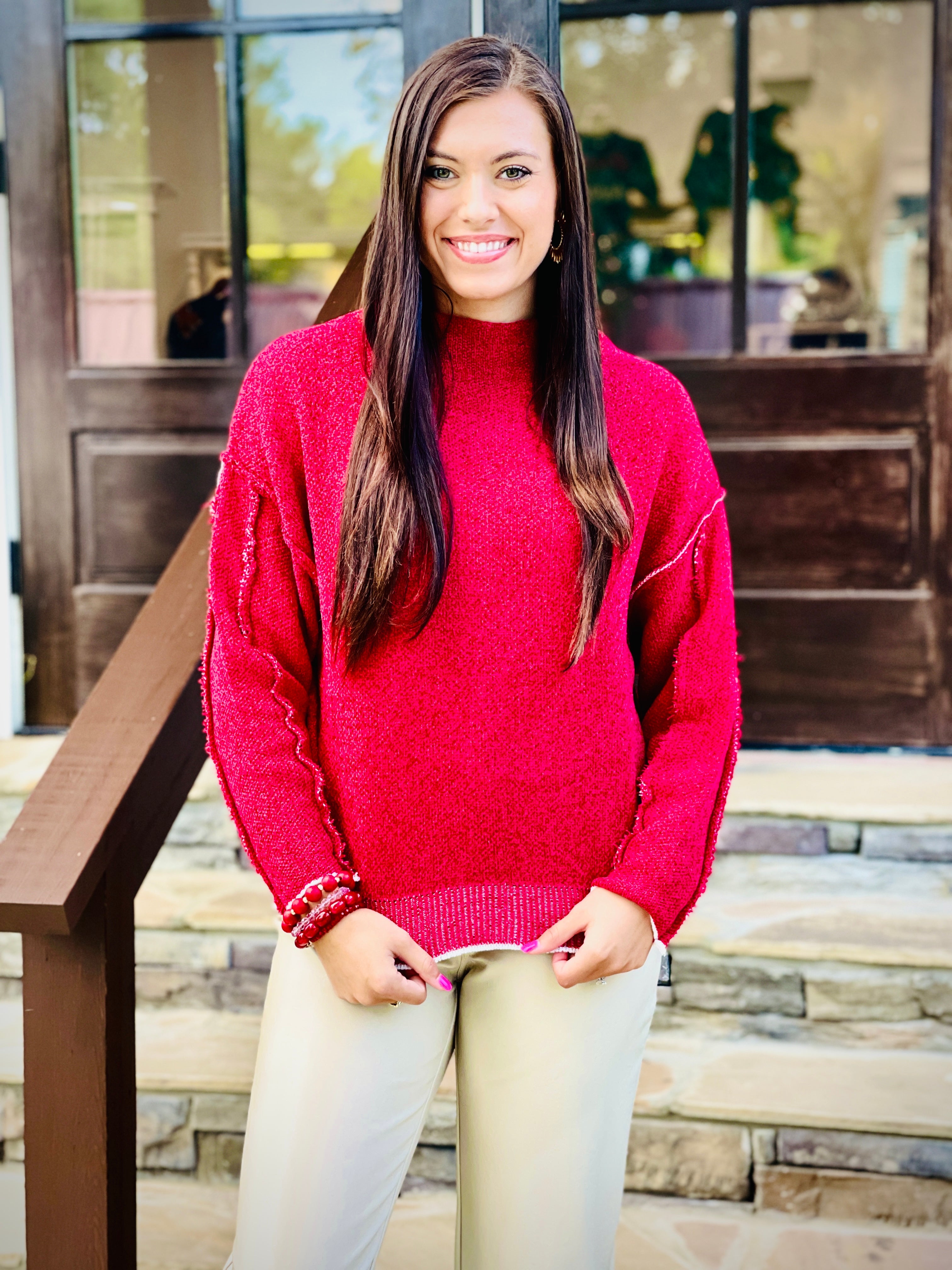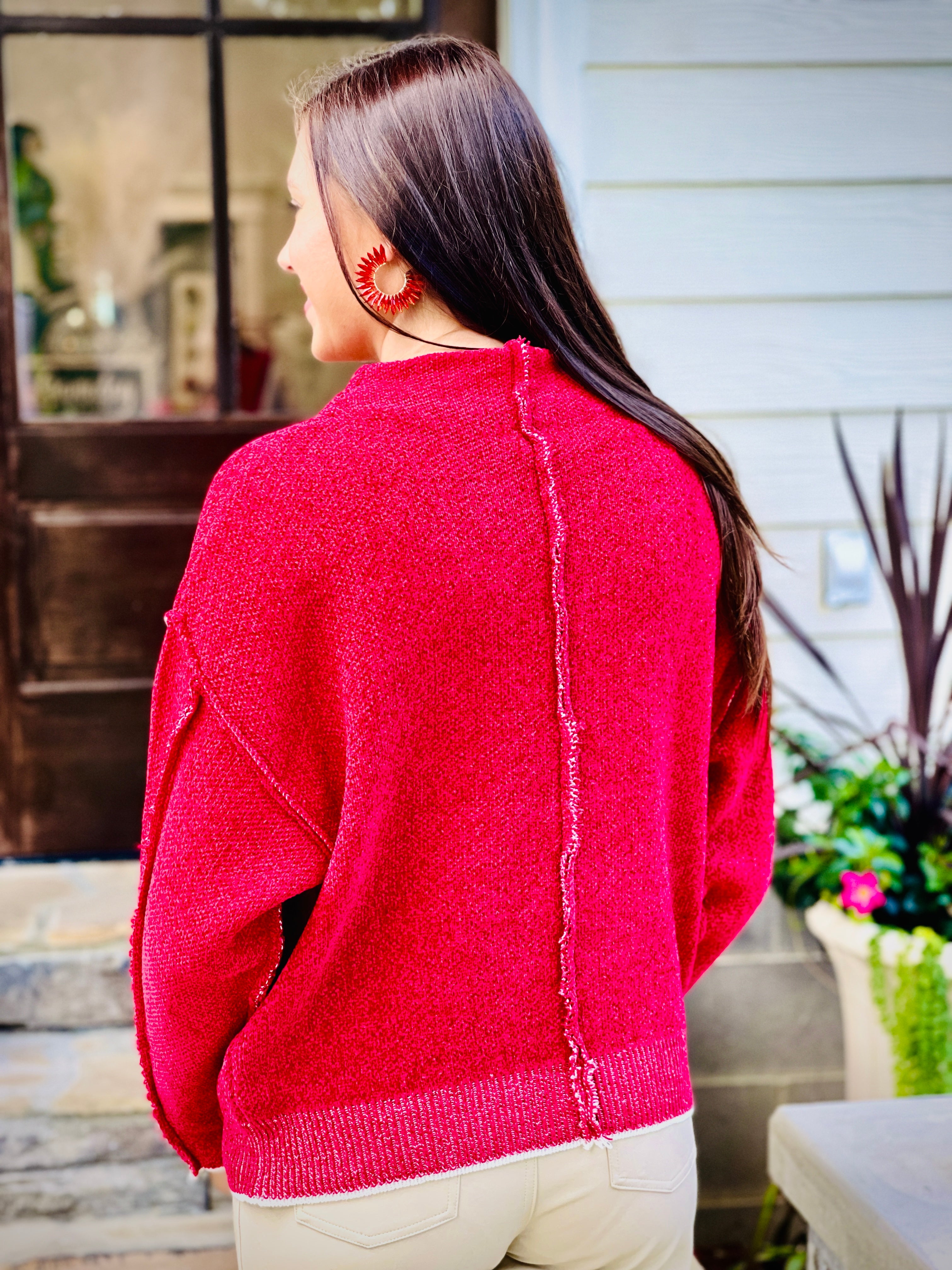 This OVERSIZED MOCK NECK RAW SEAM CHENILLE SWEATER is perfect for chilly days. Crafted from heavy-weight chenille and featuring raw seam detailing on the sleeves and center back, this sweater will keep you warm and comfortable. It's made with good quality materials and will be a staple of your wardrobe for years to come.