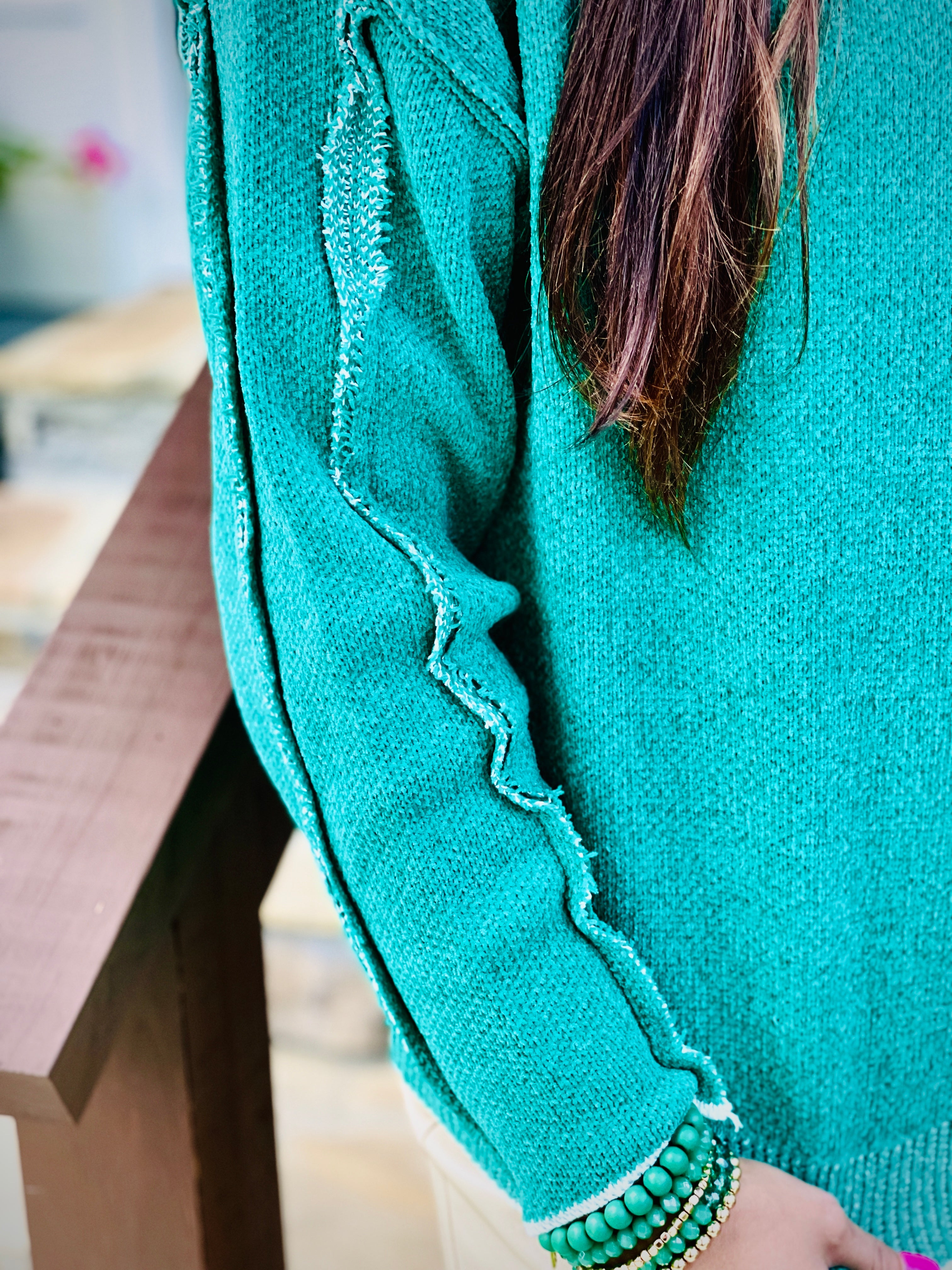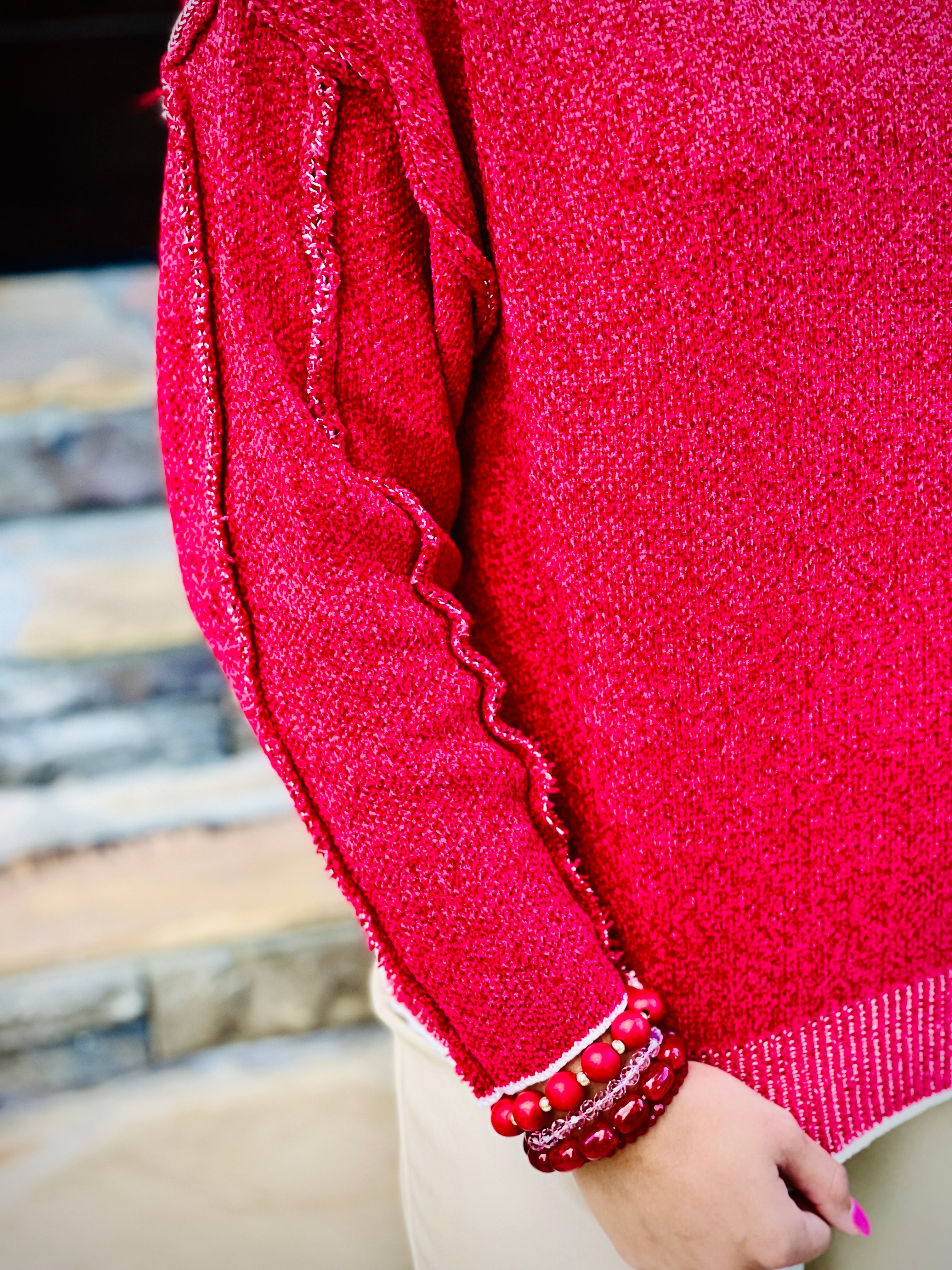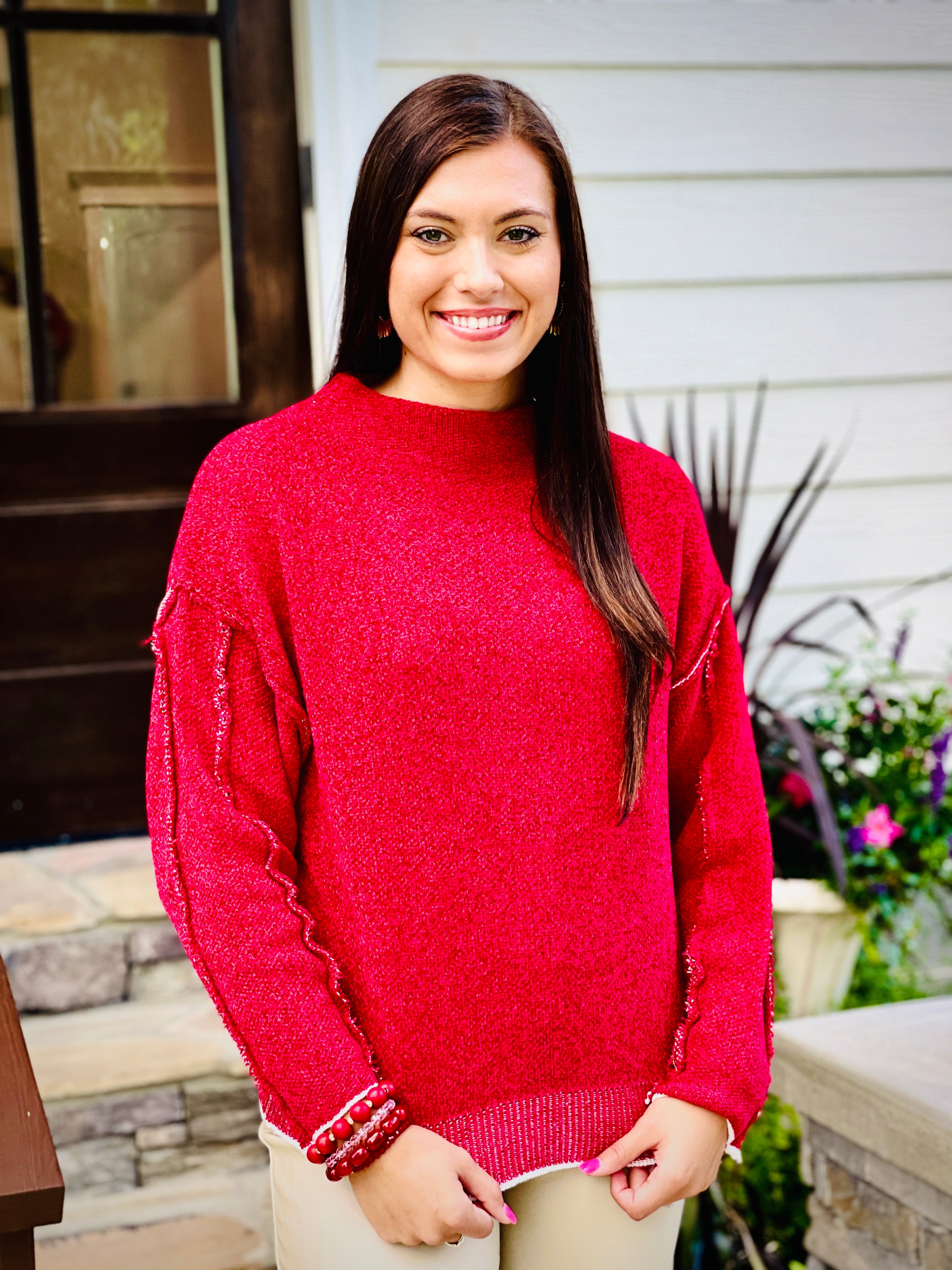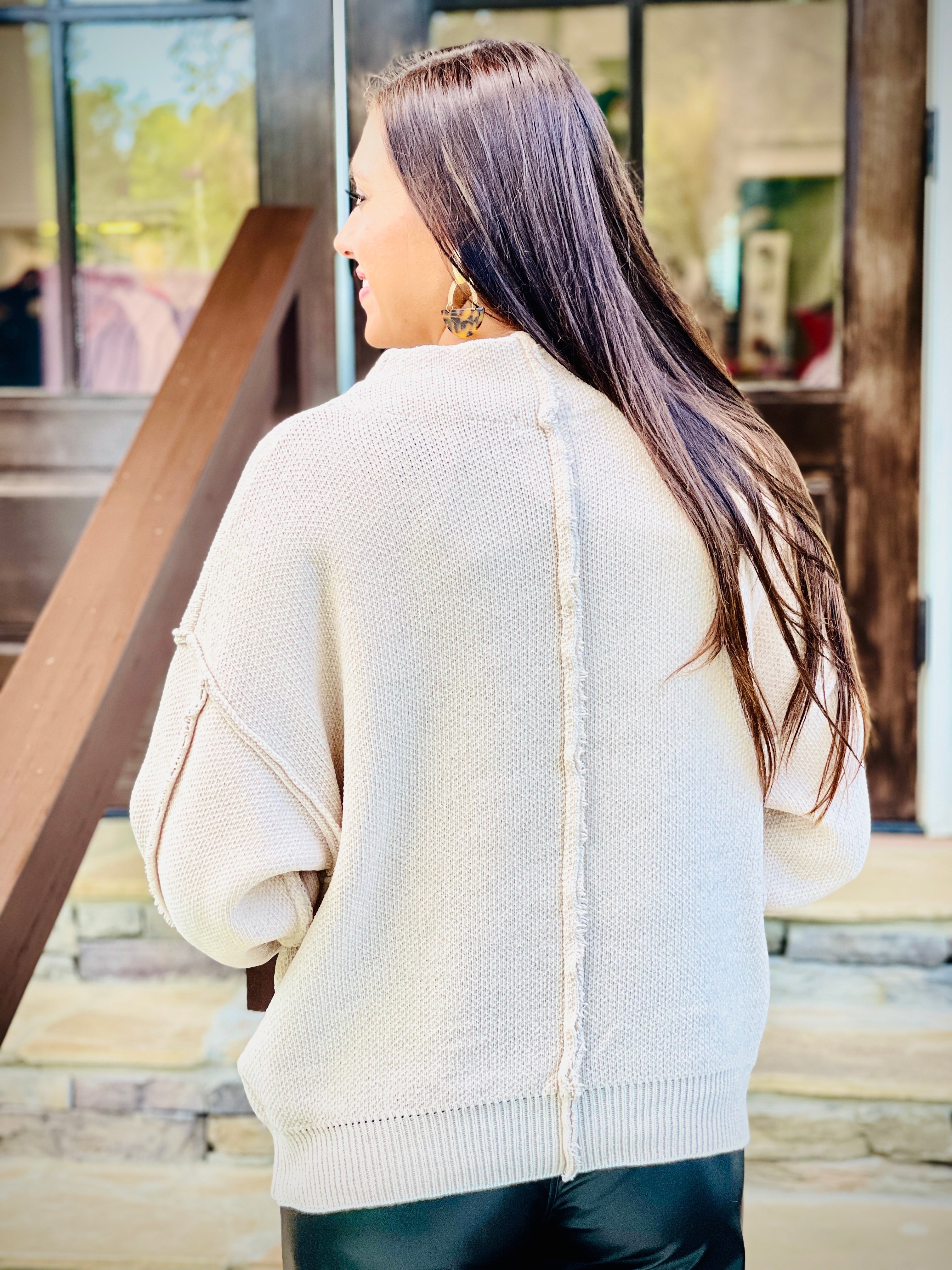 This OVERSIZED MOCK NECK RAW SEAM CHENILLE SWEATER is perfect for chilly days. Crafted from heavy-weight chenille and featuring raw seam detailing on the sleeves and center back, this sweater will keep you warm and comfortable. It's made with good quality materials and will be a staple of your wardrobe for years to come.