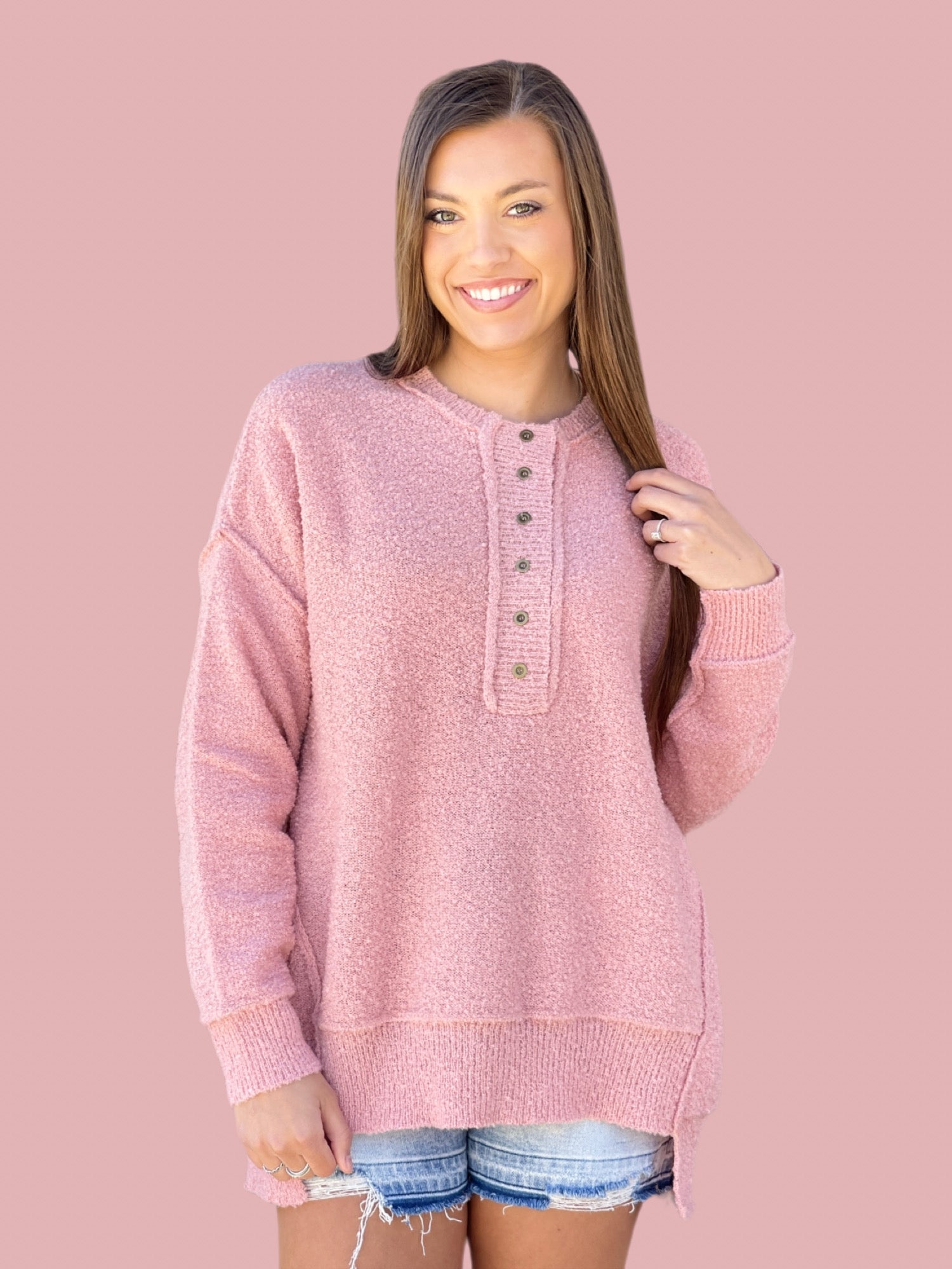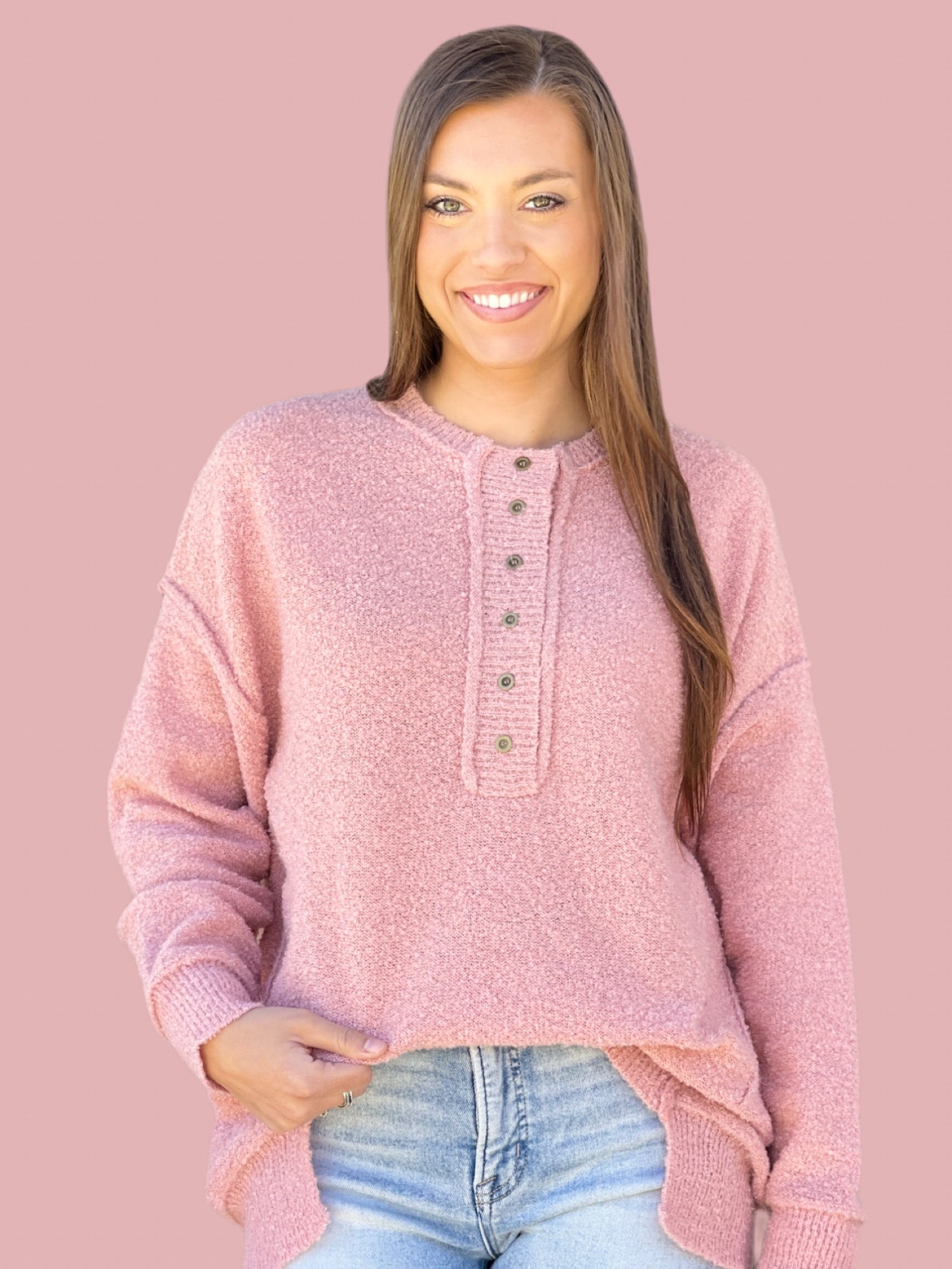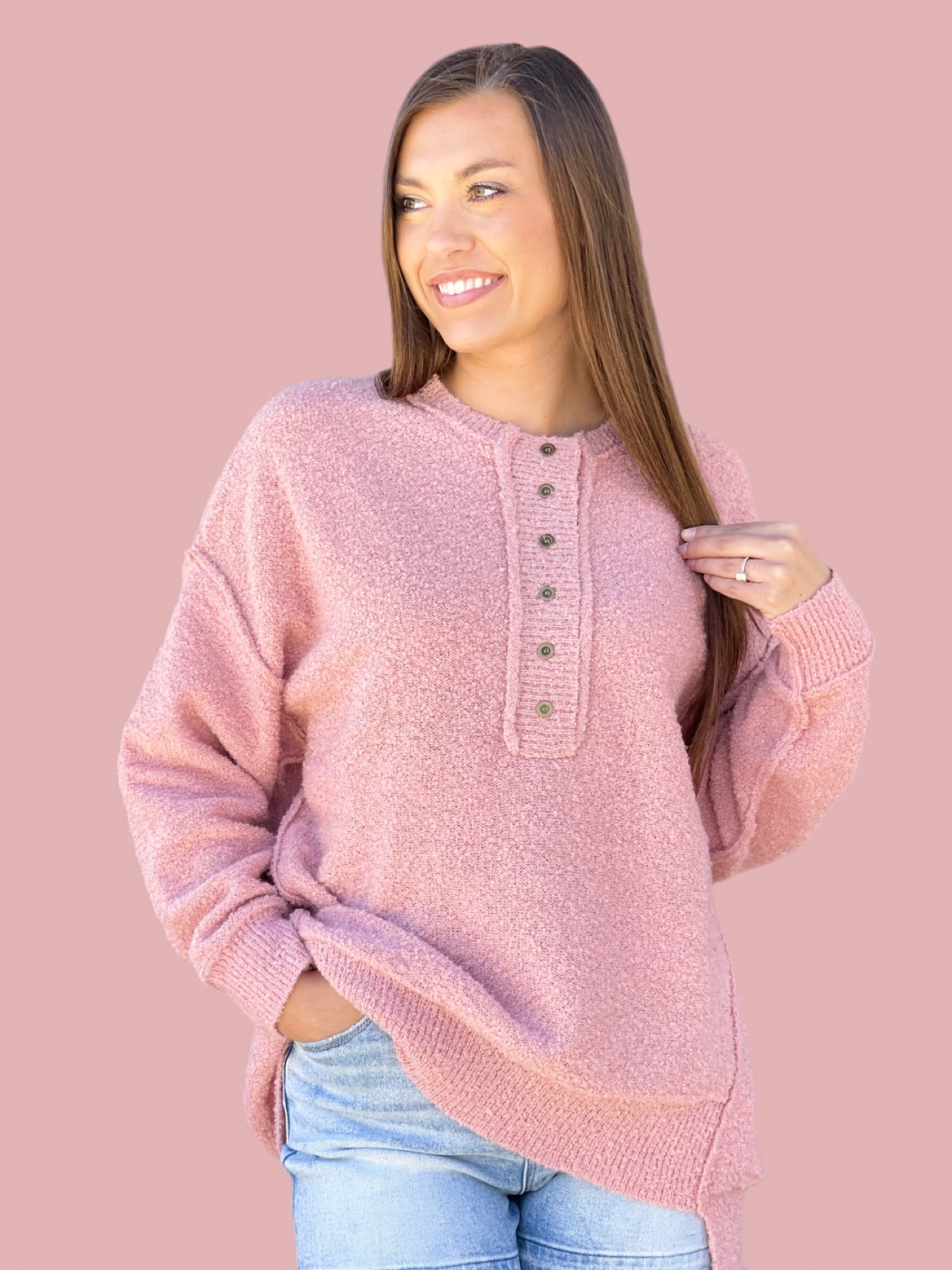 Introducing the Henry Neck Sweater. Embrace comfort and style with long sleeves and an oversized placket on a 1/2 button down design. The Henry neck adds a touch of elegance, perfect for any occasion. Stay warm and fashionable all season long.