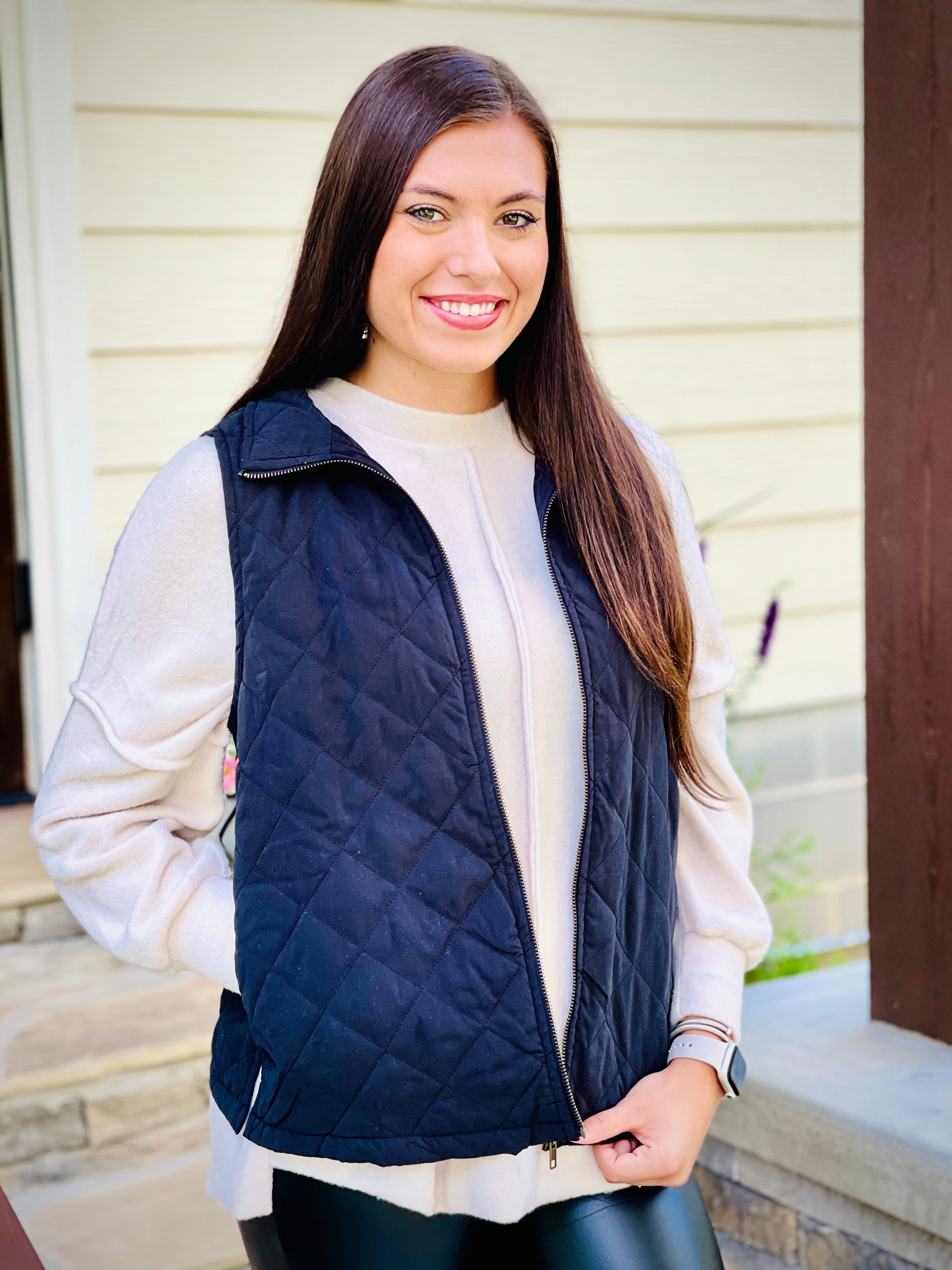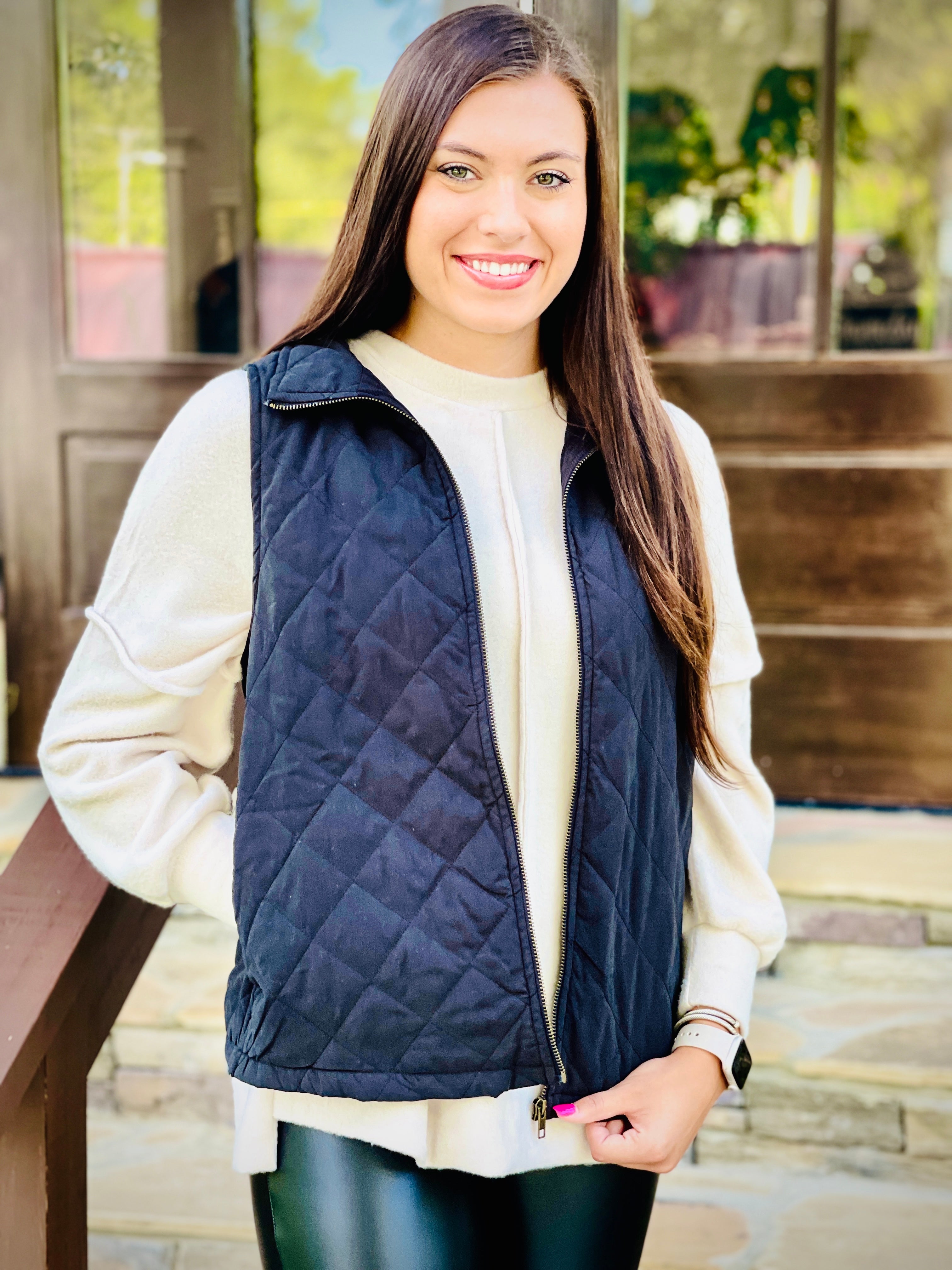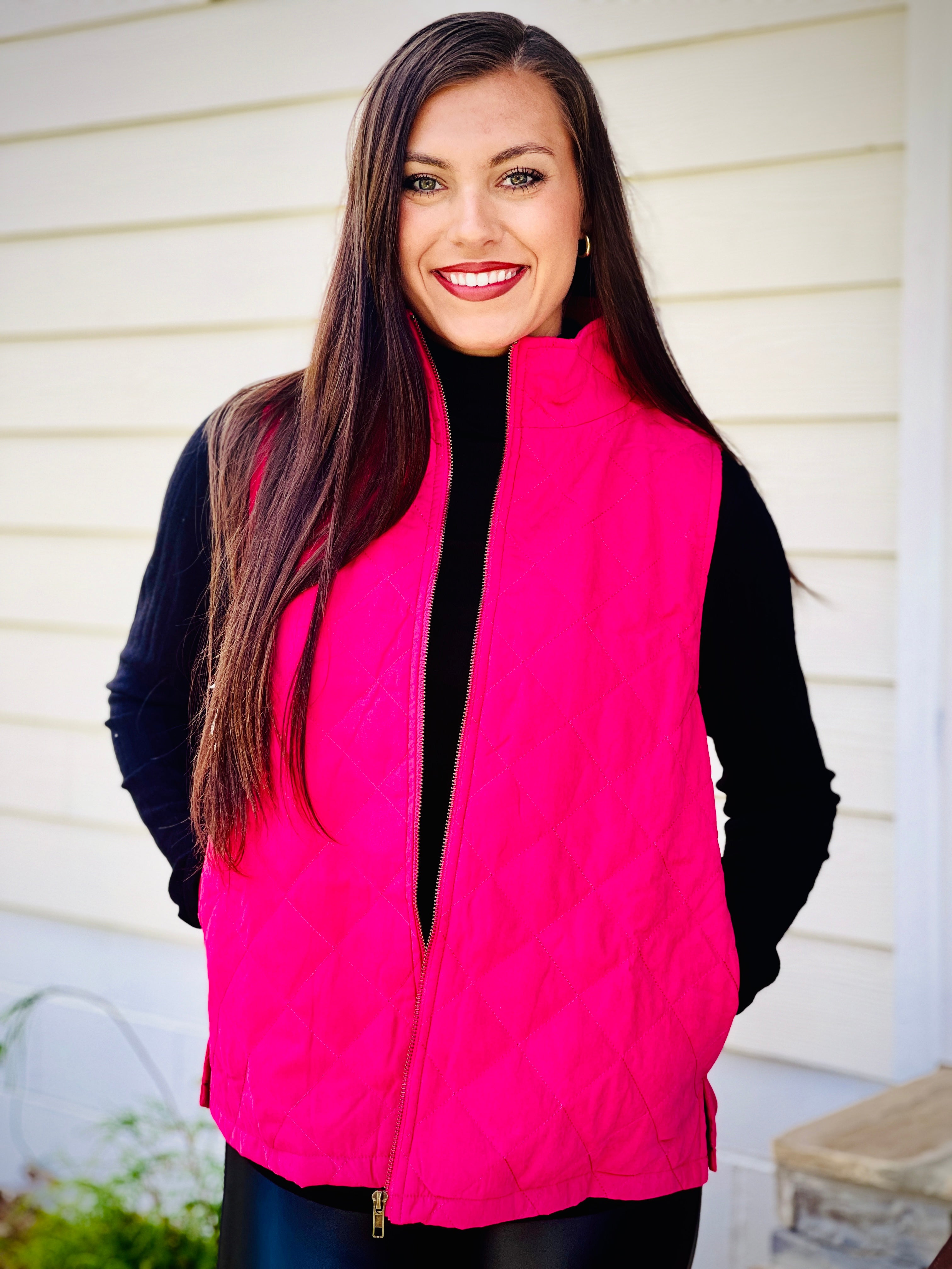 Stay warm and look good in this Sleeveless Quilted Zip Front Vest. Featuring side slits and convenient pockets, it's the perfect layering piece for any day. The quilted design ensures superior insulation, providing protection from icy temperatures and unpredictable weather. Plus, its lightweight design makes it comfortable and easy to wear.