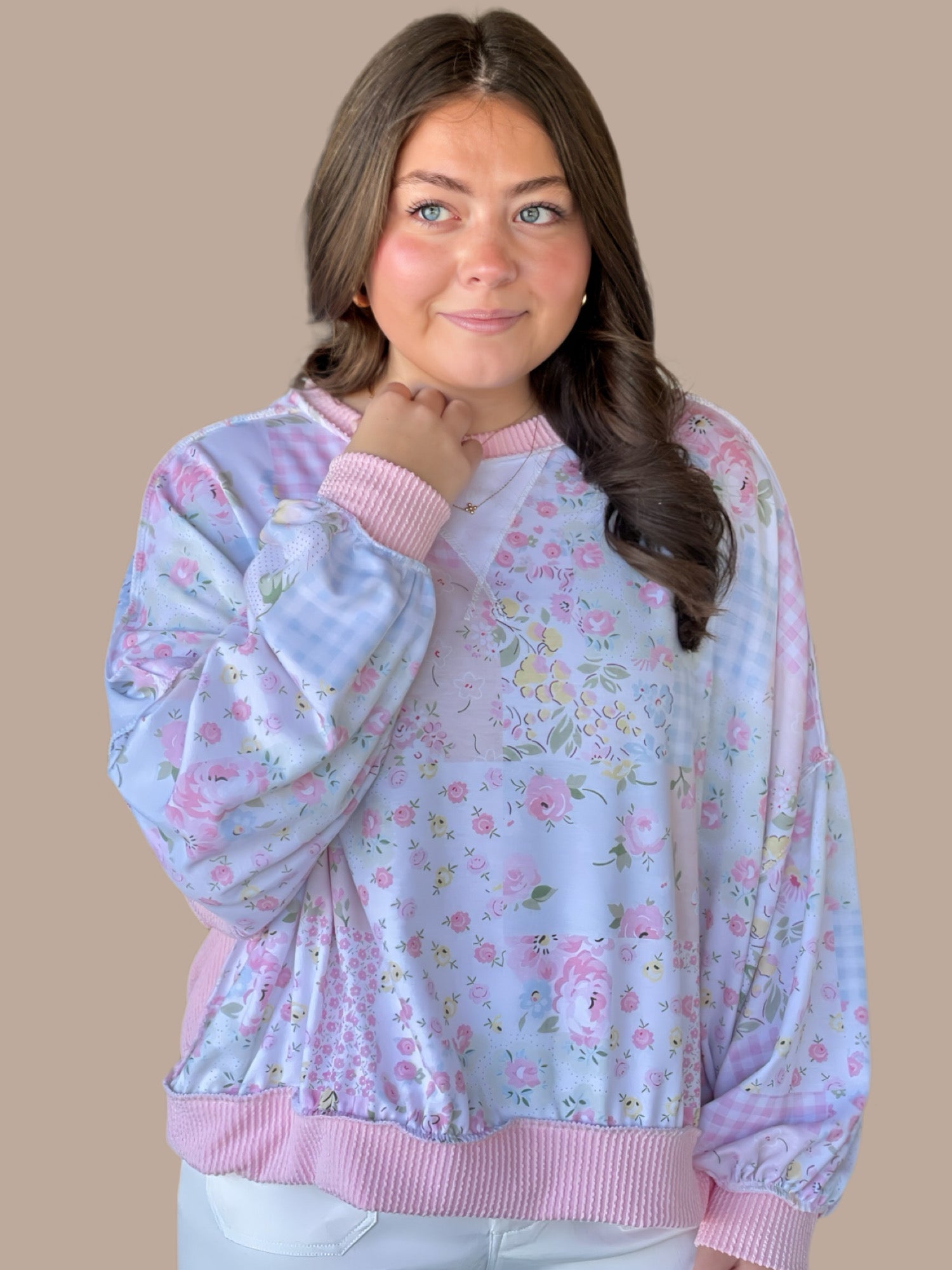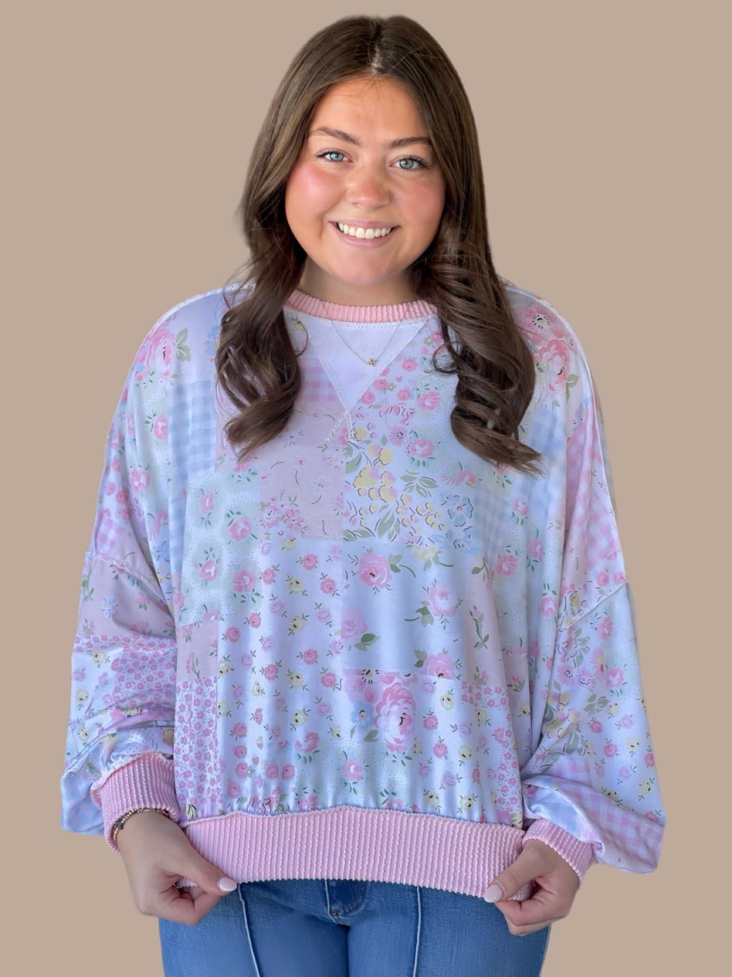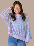 Elevate your casual wardrobe with this artfully designed oversized pullover. Featuring a striking color-block floral patchwork print with geometric triangle detailing, this piece combines contemporary style with thoughtful construction. The drop shoulder silhouette and loose fit create an effortlessly relaxed aesthetic, while the French terry fabric blend—62% polyester, 34% rayon, 4% spandex—delivers comfort and subtle stretch. Finished with precision overlock seaming and reverse stitches for durability, the crew neck long sleeves make this versatile top perfect for layering or wearing solo across seasons.