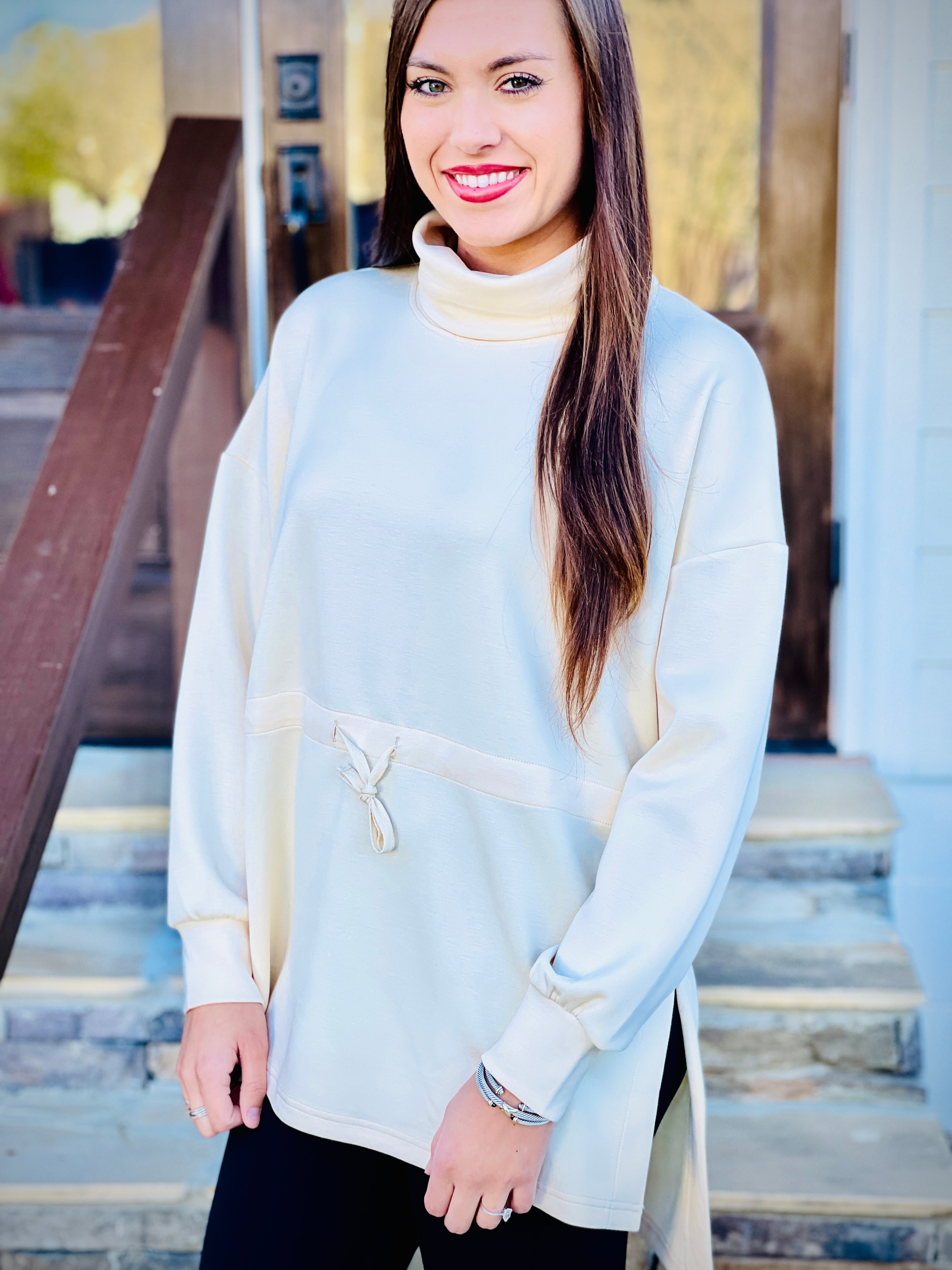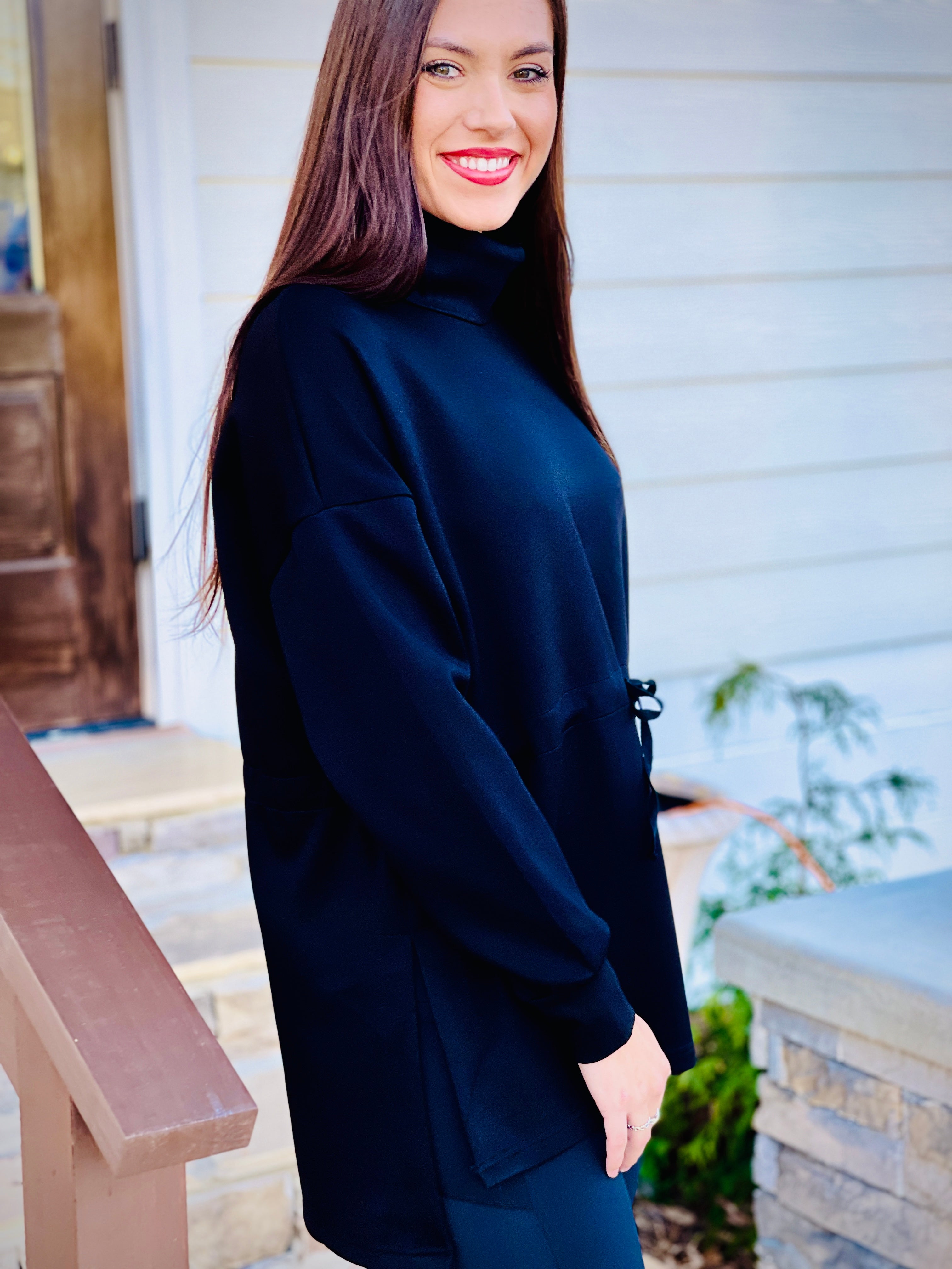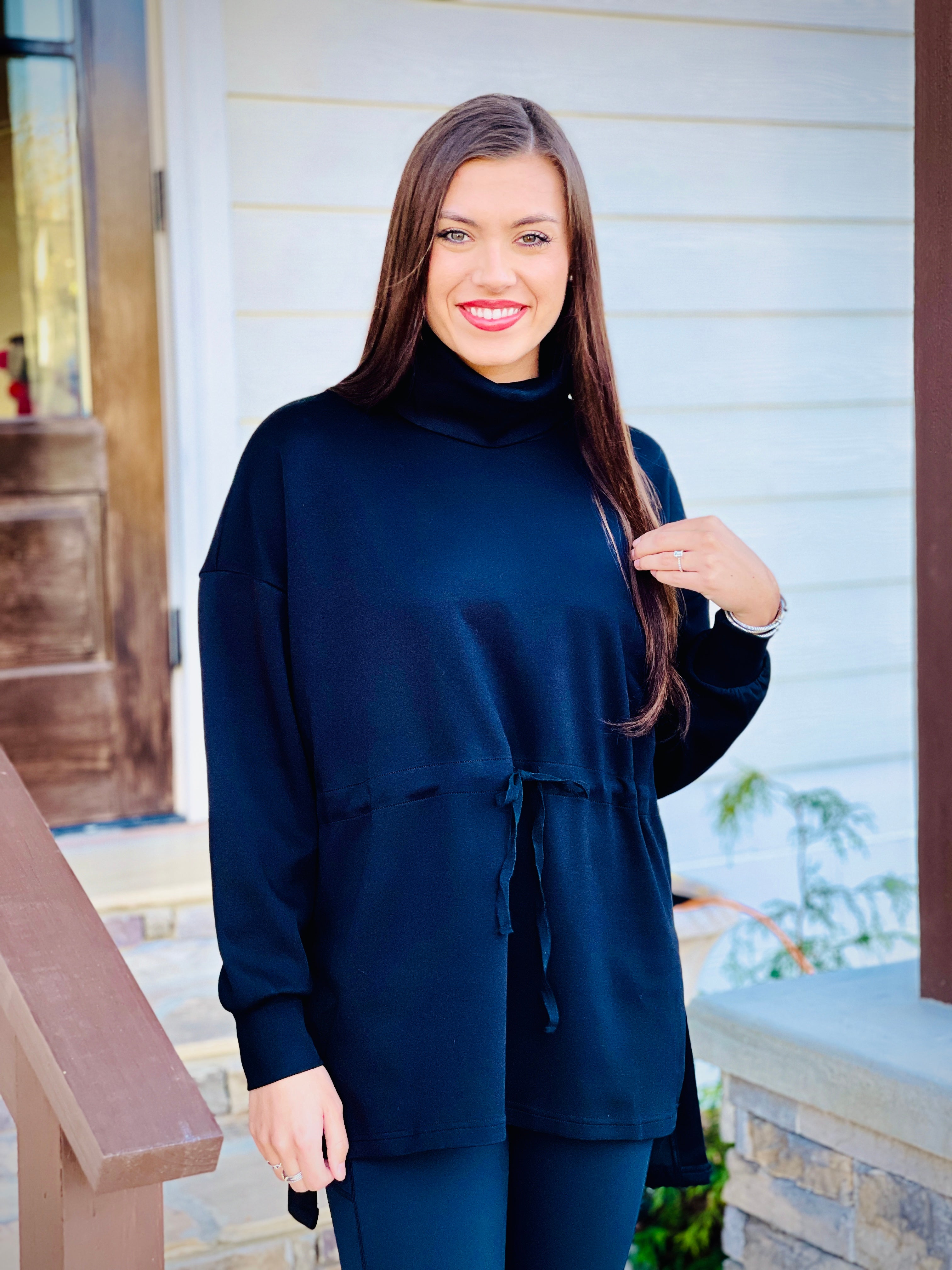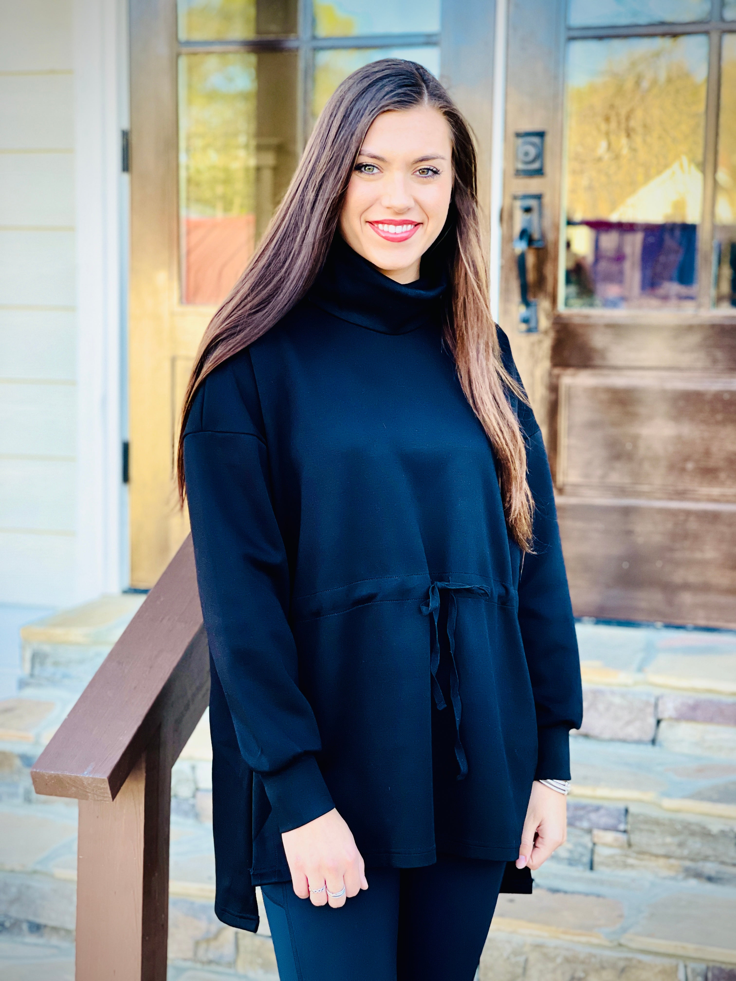 Expertly crafted from buttery soft modal fabric, this long sleeve top features a sleek mock neck design and a flattering waist tie. Versatile yet dressy, it's perfect for both casual and formal occasions. Stay comfortable and stylish with this must-have addition to your wardrobe.