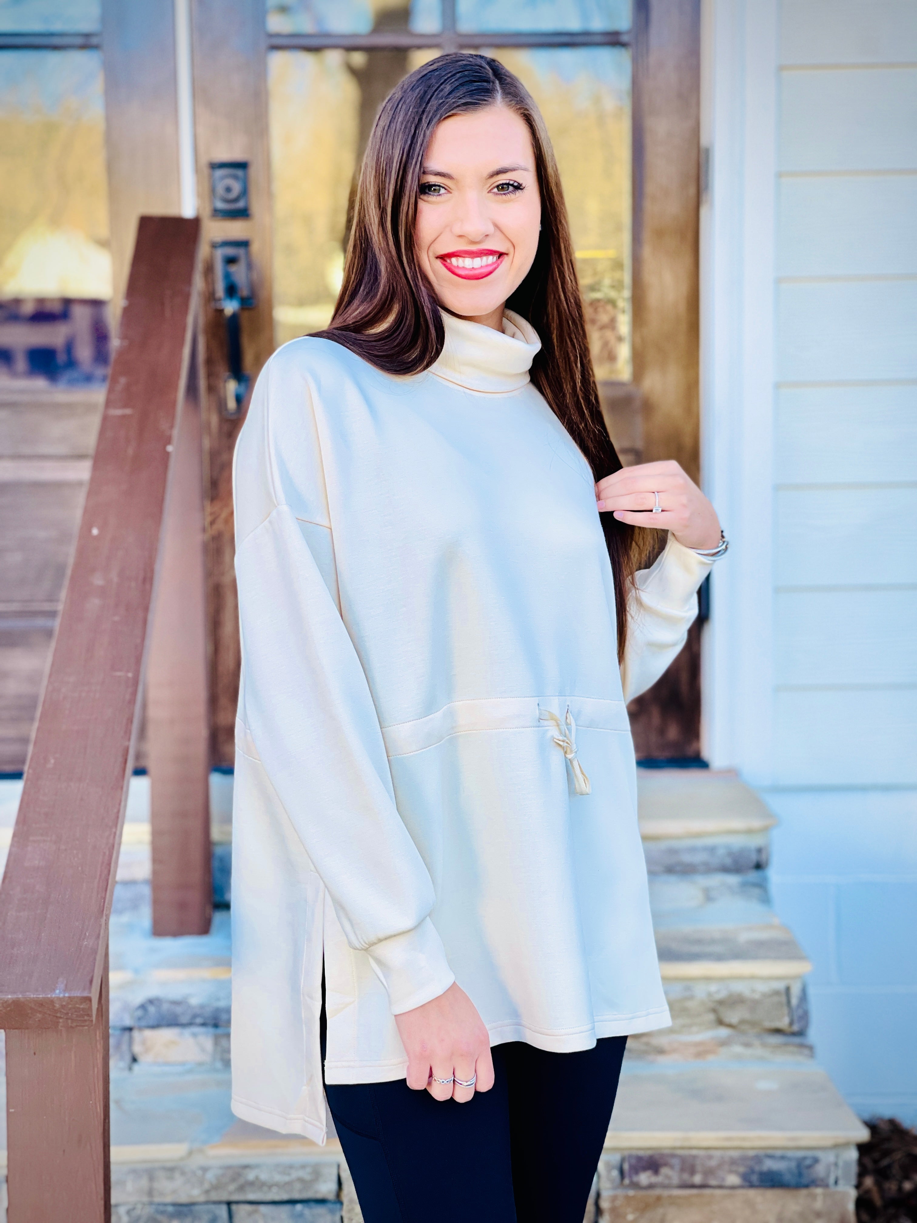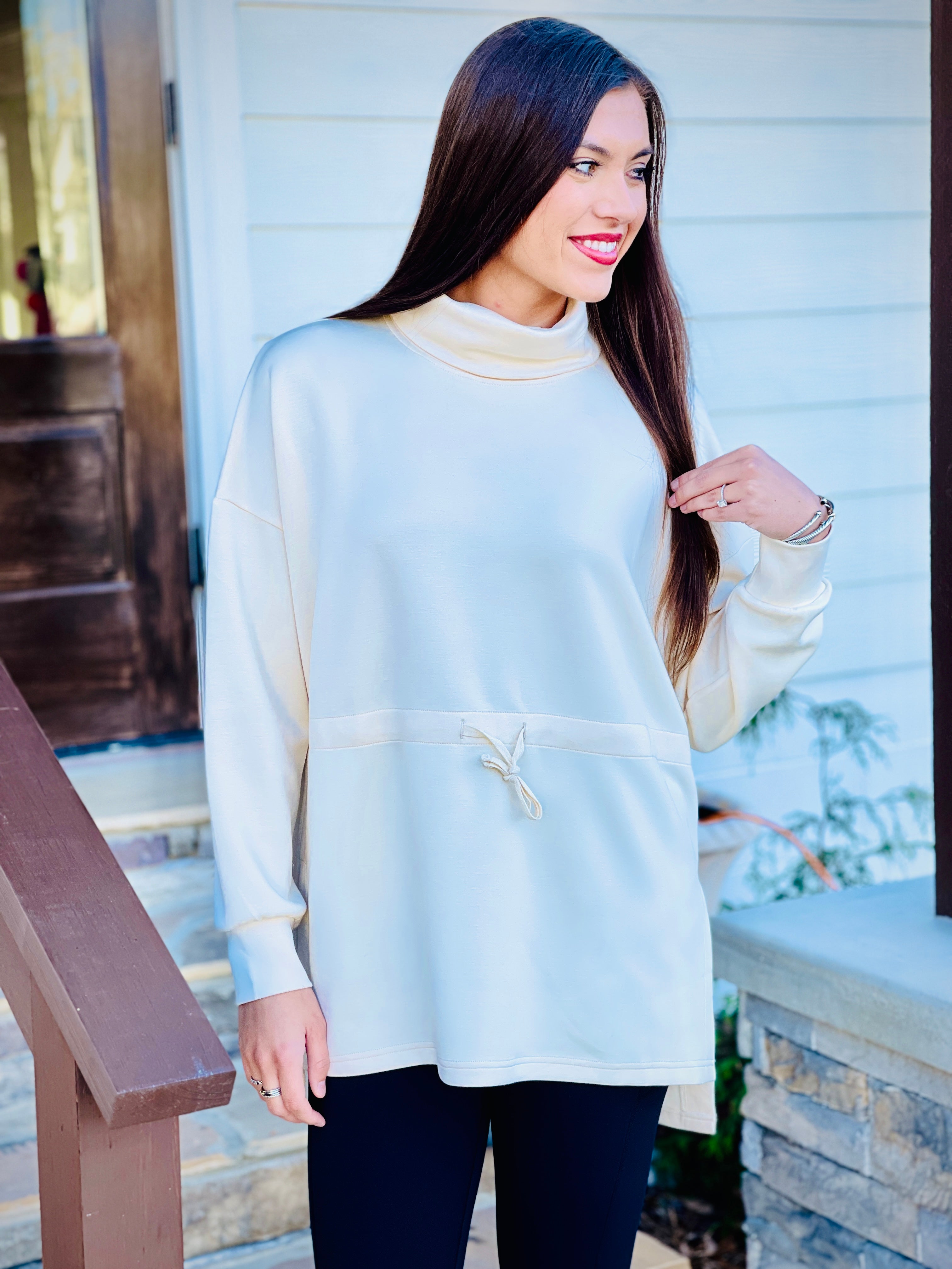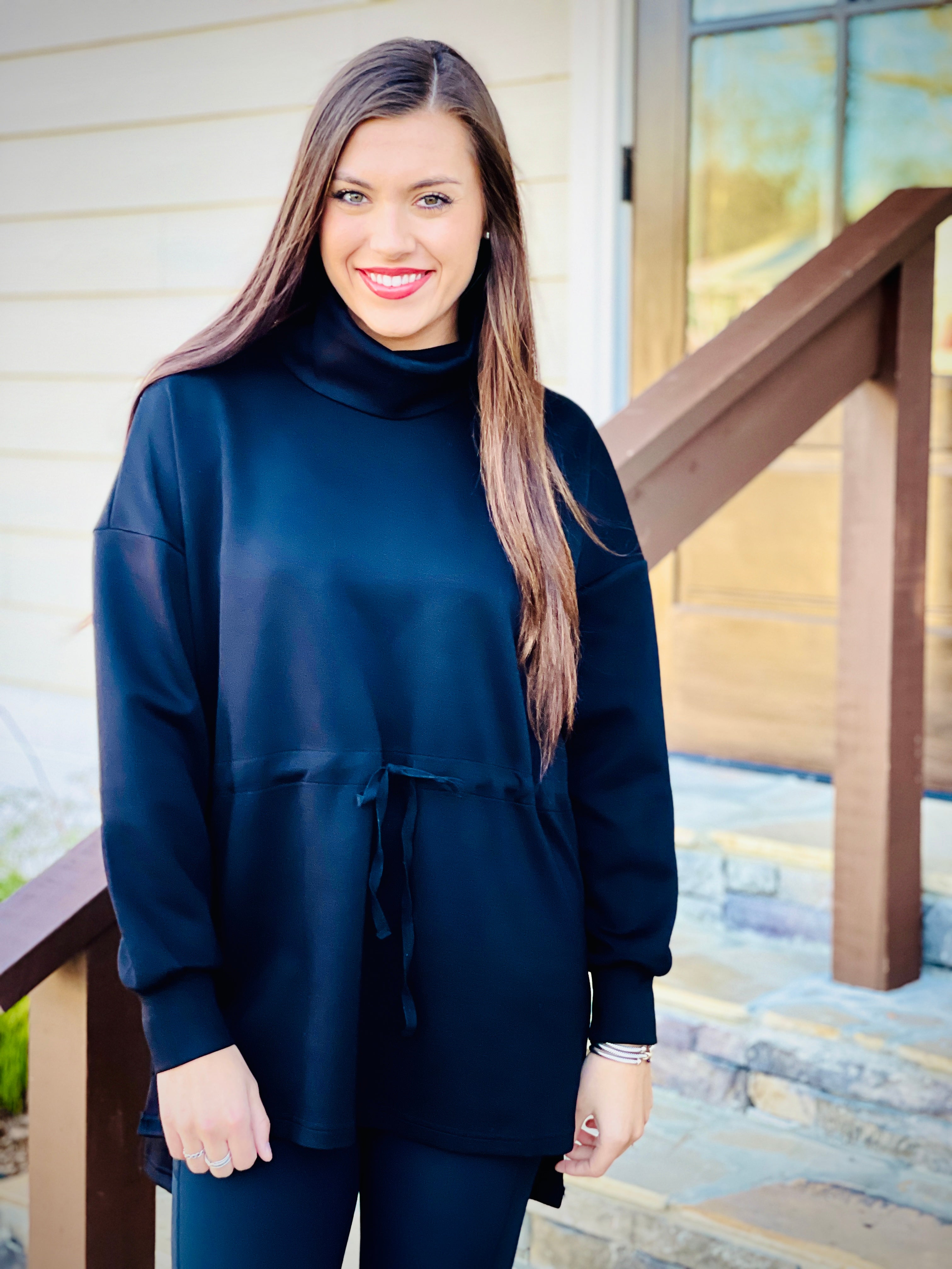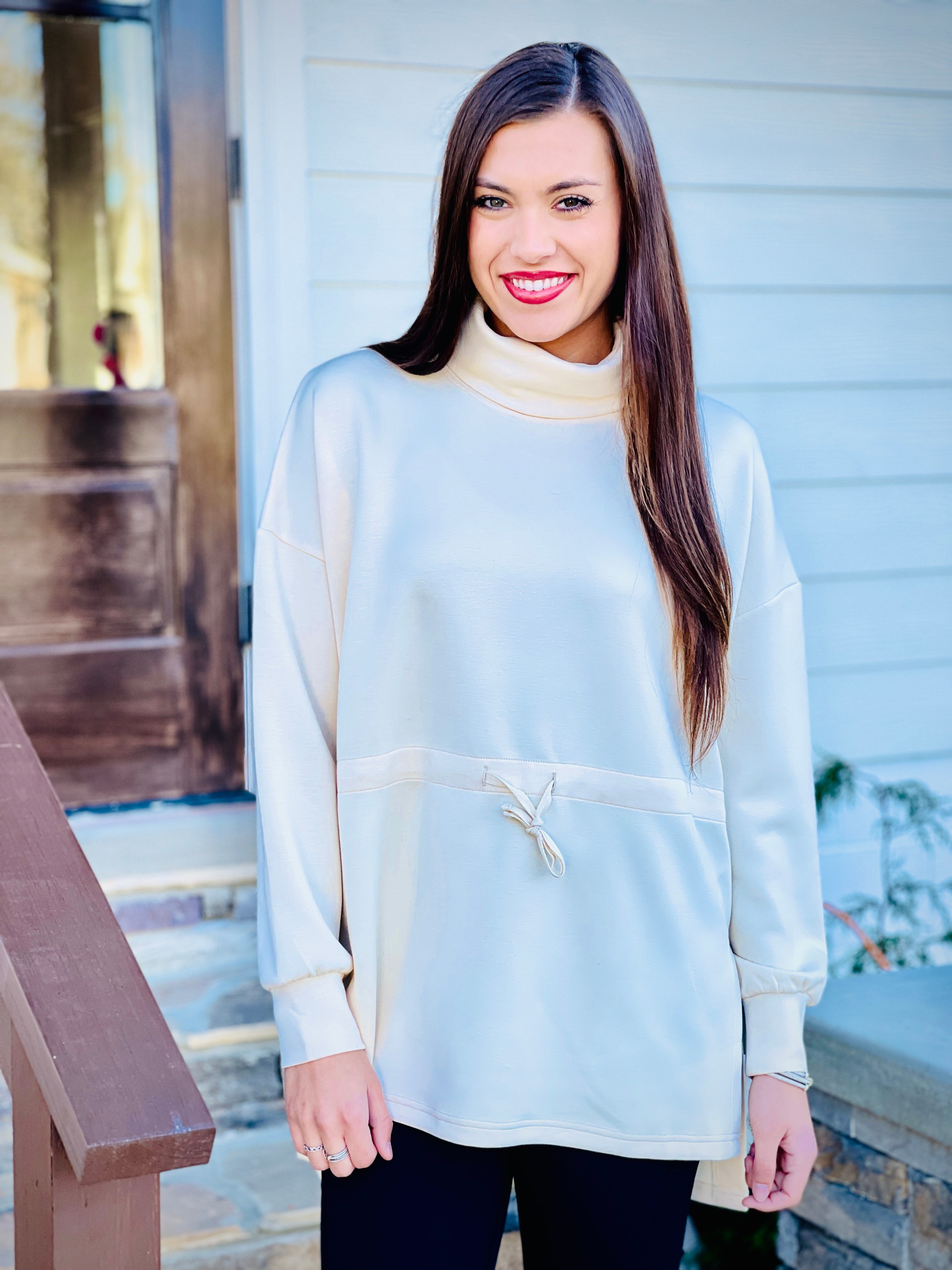 Expertly crafted from buttery soft modal fabric, this long sleeve top features a sleek mock neck design and a flattering waist tie. Versatile yet dressy, it's perfect for both casual and formal occasions. Stay comfortable and stylish with this must-have addition to your wardrobe.
