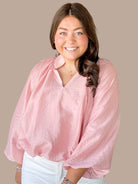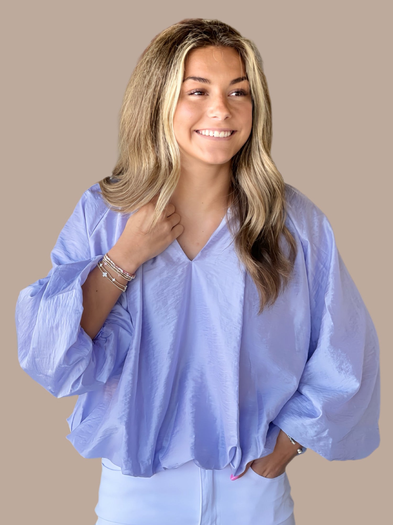 Elevate your everyday wardrobe with this sophisticated long sleeve top, designed for effortless style and comfort. The V-neck silhouette is enhanced by a distinctive ruffled accent collar that adds visual interest, while voluminous balloon sleeves create a flattering, contemporary shape. Crafted from lightweight woven fabric with a smooth lining, this piece offers breathability without transparency. Perfect for layering or wearing solo, it transitions seamlessly from office to weekend occasions.