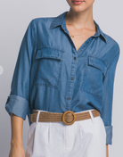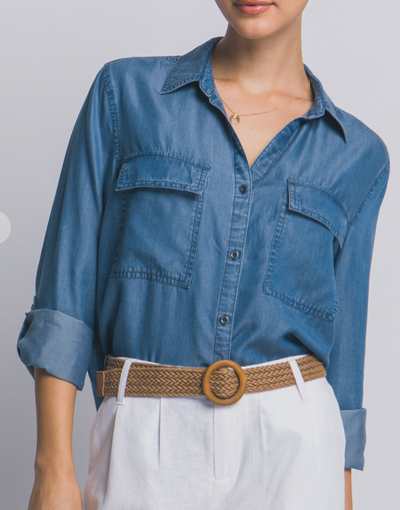 Elevate your everyday wardrobe with this versatile long sleeve Tencel shirt. Crafted from breathable, sustainable fabric, it features a classic collared neckline and regular fit for effortless comfort. Functional fold-over chest pockets keep essentials within reach, while the curved hemline flatters your silhouette. Roll up the sleeves for a casual, laid-back vibe or wear them down for polished sophistication. Perfect for layering or wearing solo, this shirt transitions seamlessly from office to weekend.
