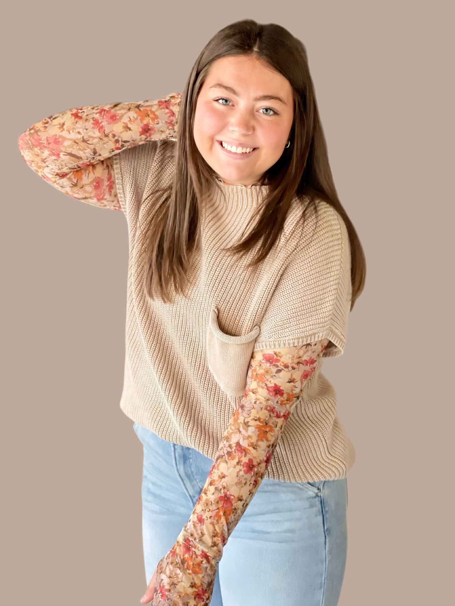 Elevate your layering game with this sophisticated sheer floral mesh mock neck top. The delicate floral pattern and breathable mesh fabric create an elegant, modern silhouette perfect for styling over basics or as a standalone piece during warmer months. The mock neck adds structure and polish, making it versatile enough for casual outings or dressed-up occasions. A timeless addition to any wardrobe that effortlessly transitions between seasons.