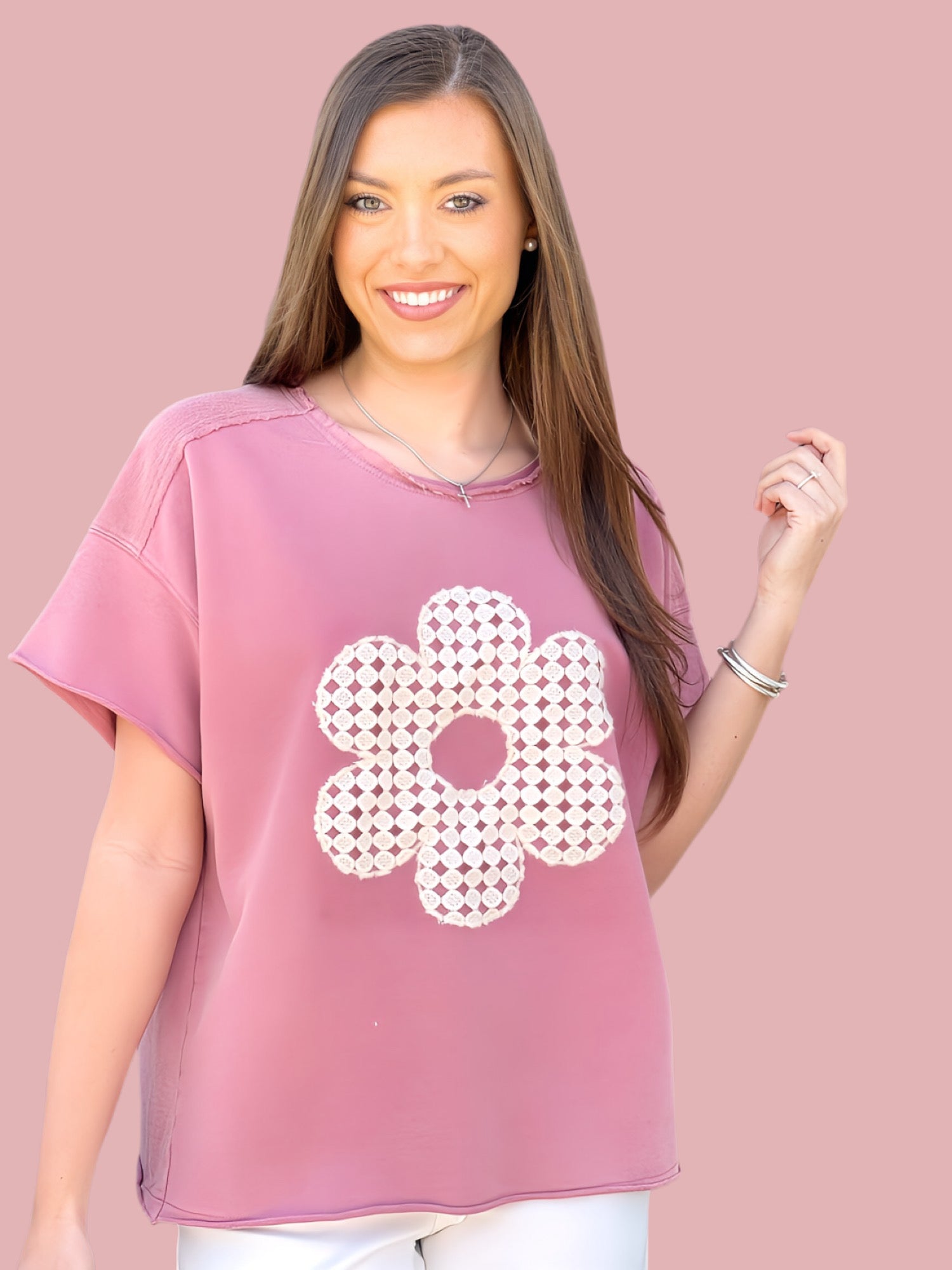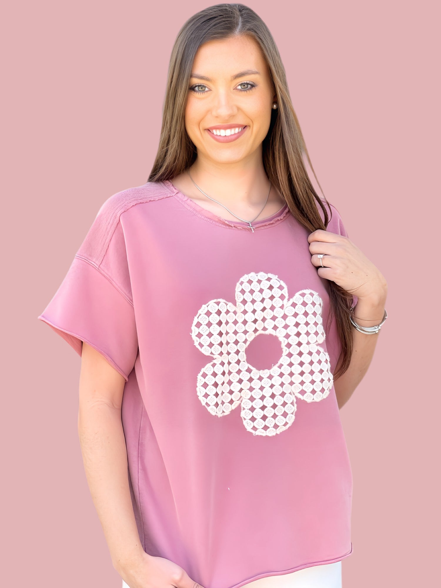 Experience ultimate comfort and style with our Mineral Wash Round Neck Top. Made with French Terry material and featuring a unique Mineral Wash design, this top also includes delicate Flower Lace Applique and a Boxy Cut for added appeal. Perfect for any occasion, this top is not lined for a lightweight and breathable fit. Upgrade your wardrobe today.
