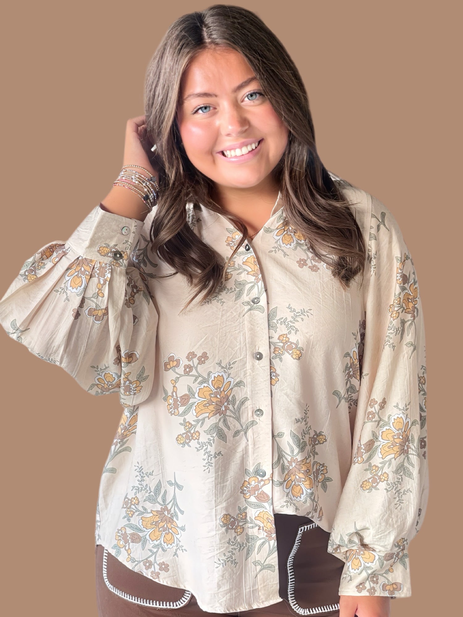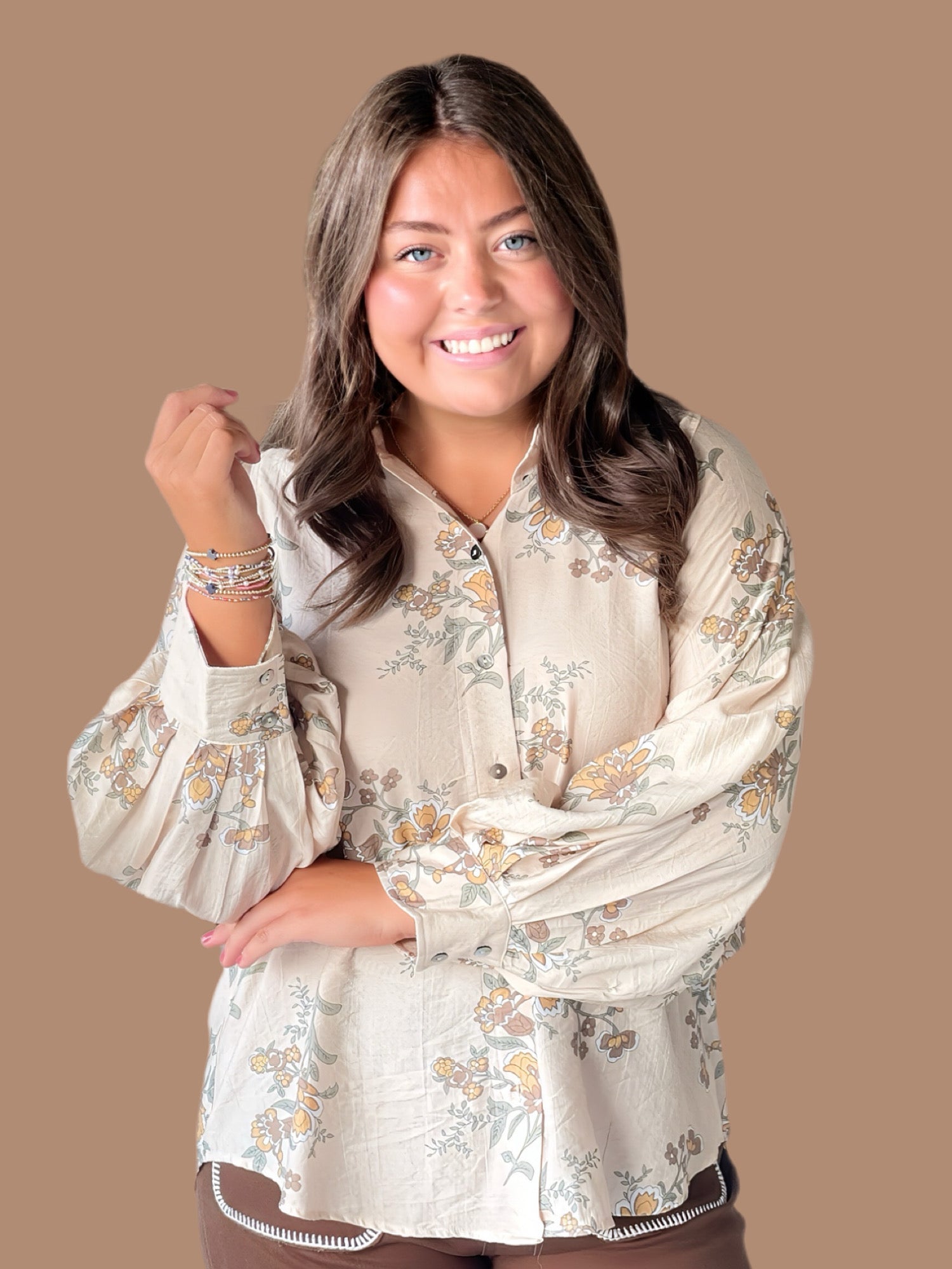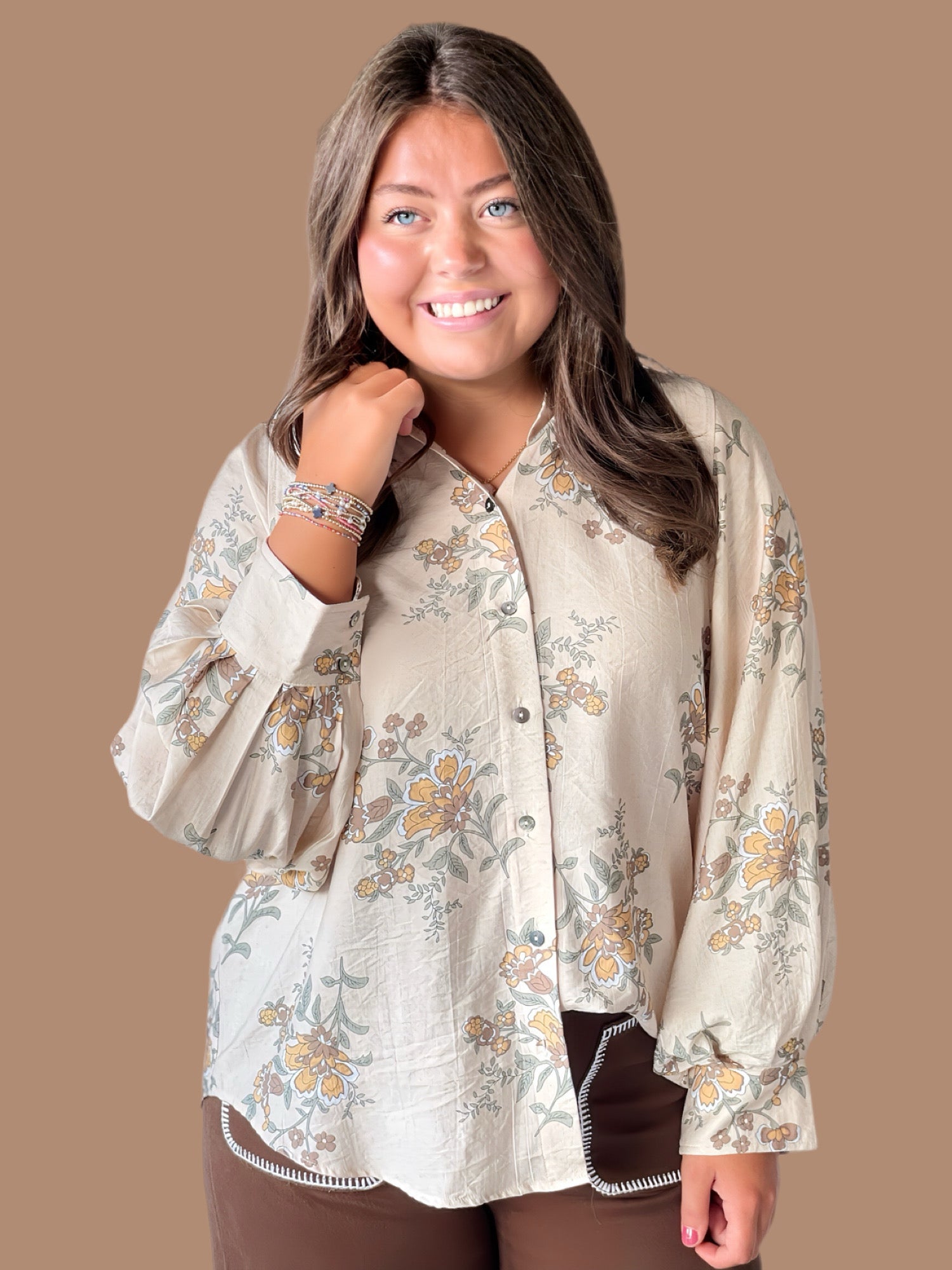 The Petal Press Blouse combines delicate floral prints with expert tailoring, featuring a button-front closure and soft pleating at the shoulders and back yoke to create subtle volume. Crafted from lightweight woven fabric, this blouse offers a classic shirt collar and buttoned cuffs for a polished finish. Its unlined, non-sheer design ensures comfort and versatility, making it an elegant staple for both professional and casual wardrobes.