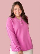 Pretty in Pink SweaterThe Pretty in Pink Sweater is a Henley-style garment made from 100% acrylic, offering both comfort and durability. It fits true to size, ensuring a reliable fit across various body types. This sweater is suitable for both casual and layered wear, providing versatility for seasonal wardrobes.