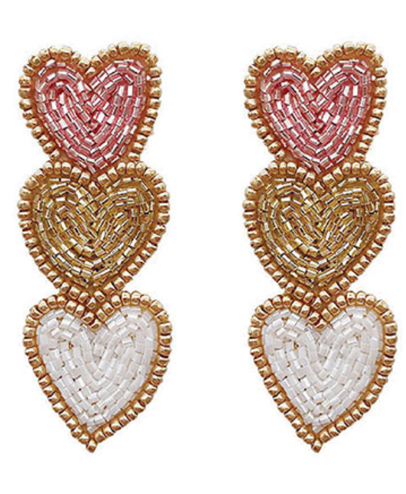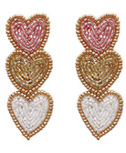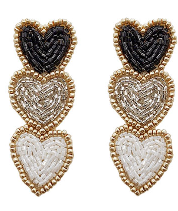 These 3 beaded heart earrings are a stunning addition to any wardrobe. Made of durable acrylic, they feature a post design for easy wearing. Measuring 2 1/2" in length, these earrings make a bold statement without weighing you down. Elevate your style with these chic and versatile earrings.