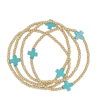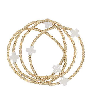 Expertly crafted with 4 rows this bracelet is the perfect blend of durability and design. Made with high-quality metal and acrylic, it is water-resistant and stretchable for a comfortable fit. Elevate your accessory game with this elegant piece.
