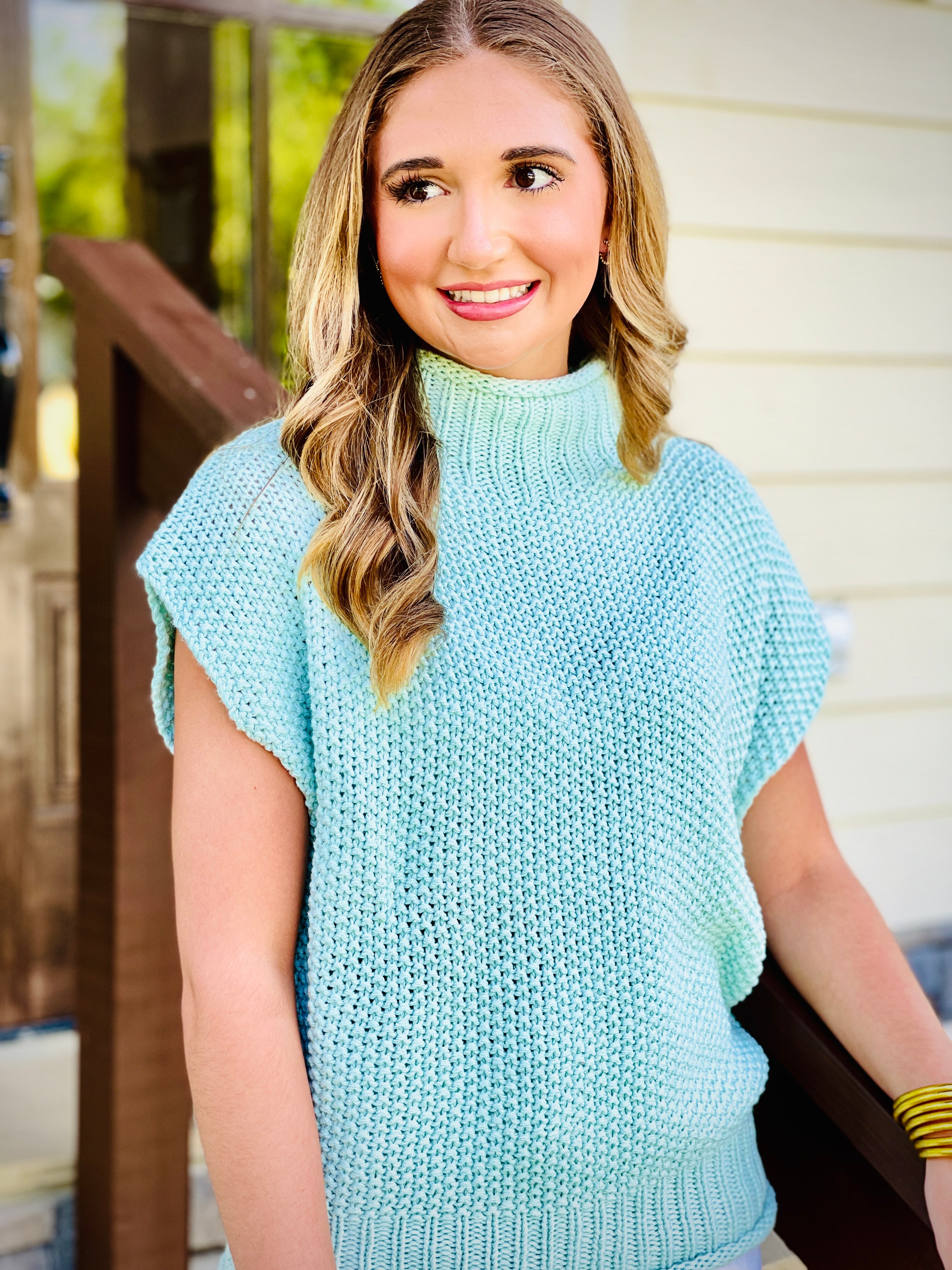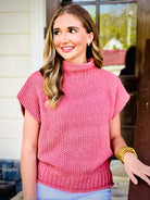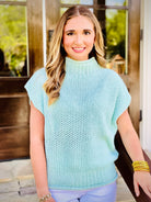 This DROP SHOULDER SLEEVELESS MOCK NECK KNIT SWEATER TOP offers a comfortable and stylish look. Its sleeveless design and mock neck add a contemporary touch, while the drop shoulder cut provides a relaxed fit. Made with high-quality knit material, this top is perfect for any occasion.