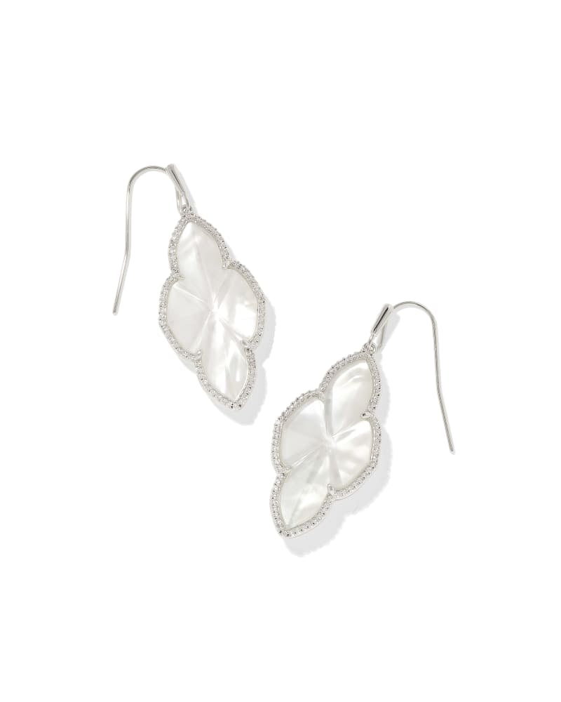 The Abbie Silver Pave Frame Drop Earrings in Ivory Mother of Pearl prove that there’s no such thing as too much sparkle. We embellished our iconic Abbie shape with a pave crystal-encrusted frame, giving you perfectly face-framing drop earrings dripping with glamour.