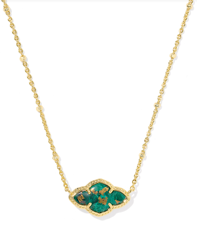 ABBIE PENDANT NECKLACE GOLD BRONZE VEINED GREEN MALACHITE
