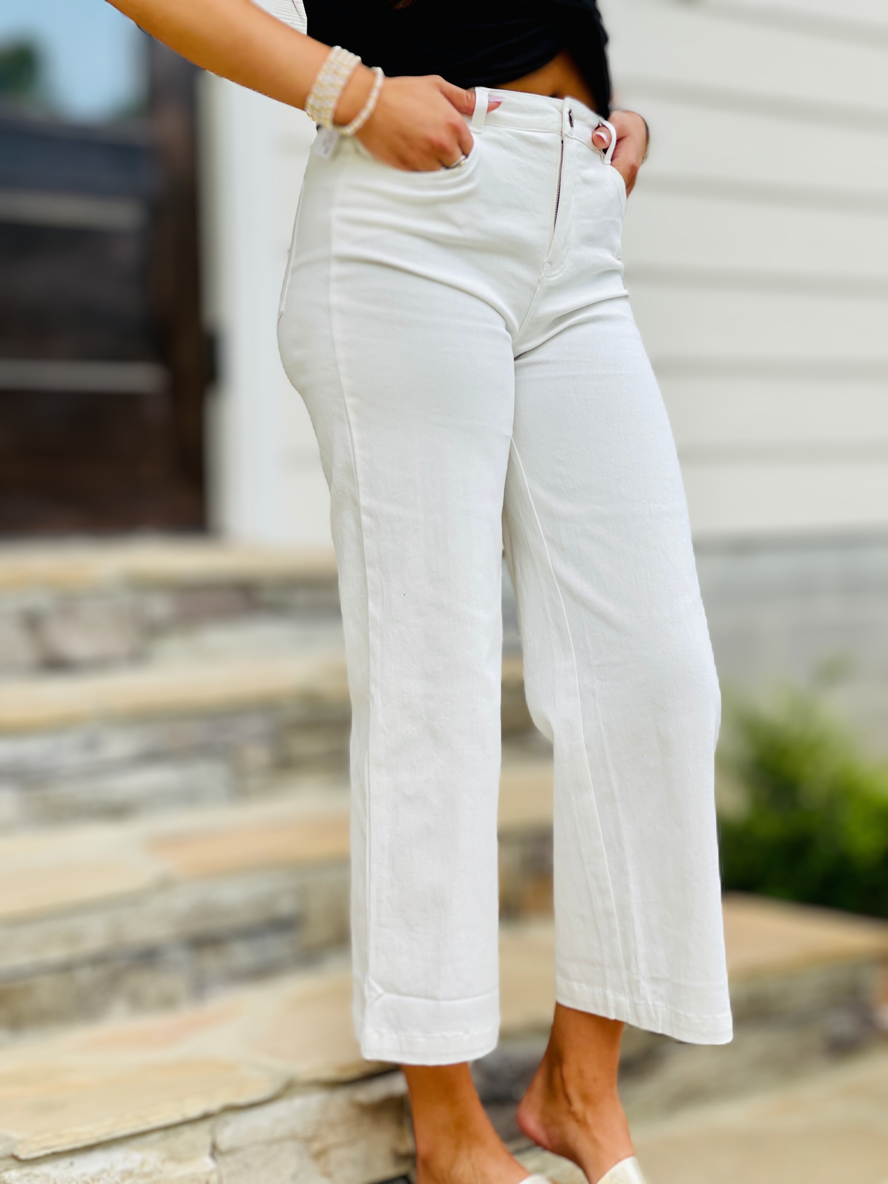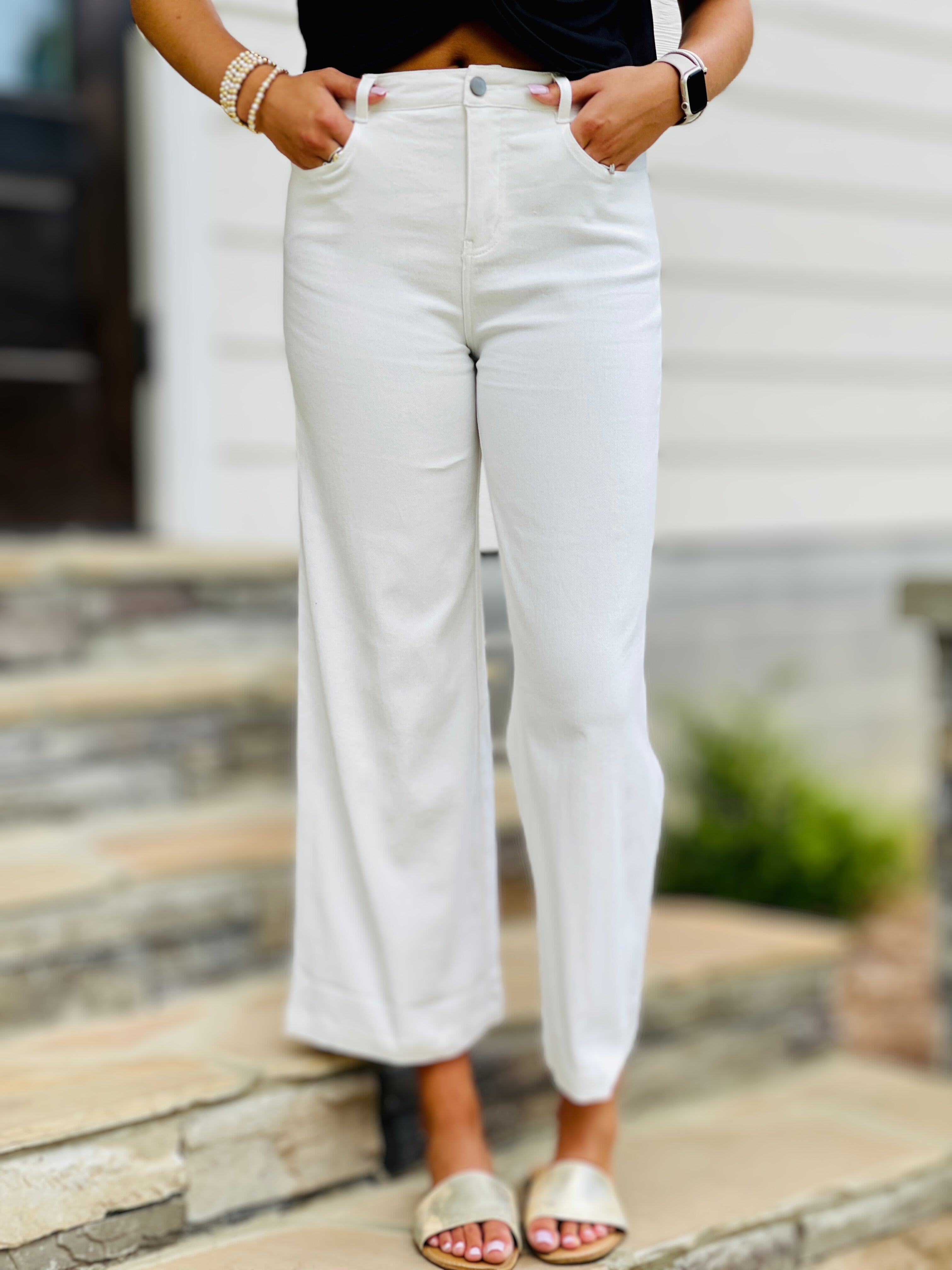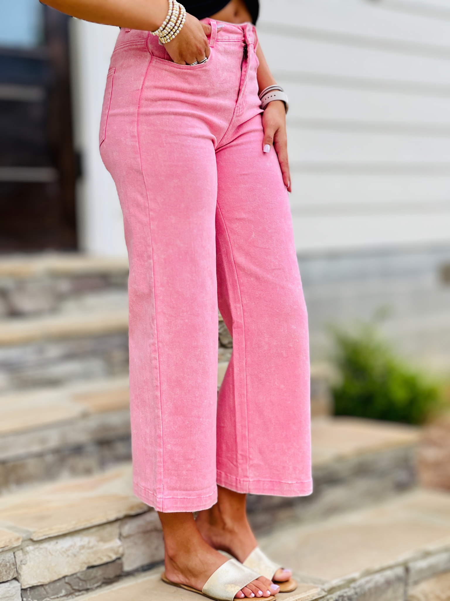 These stylish and light Acid Wash High Waisted Wide Leg Pants are designed for comfort and convenience. Features include a zipper front closure, pockets at side and back, and an unlined woven non-sheer design. Perfect for any occasion.